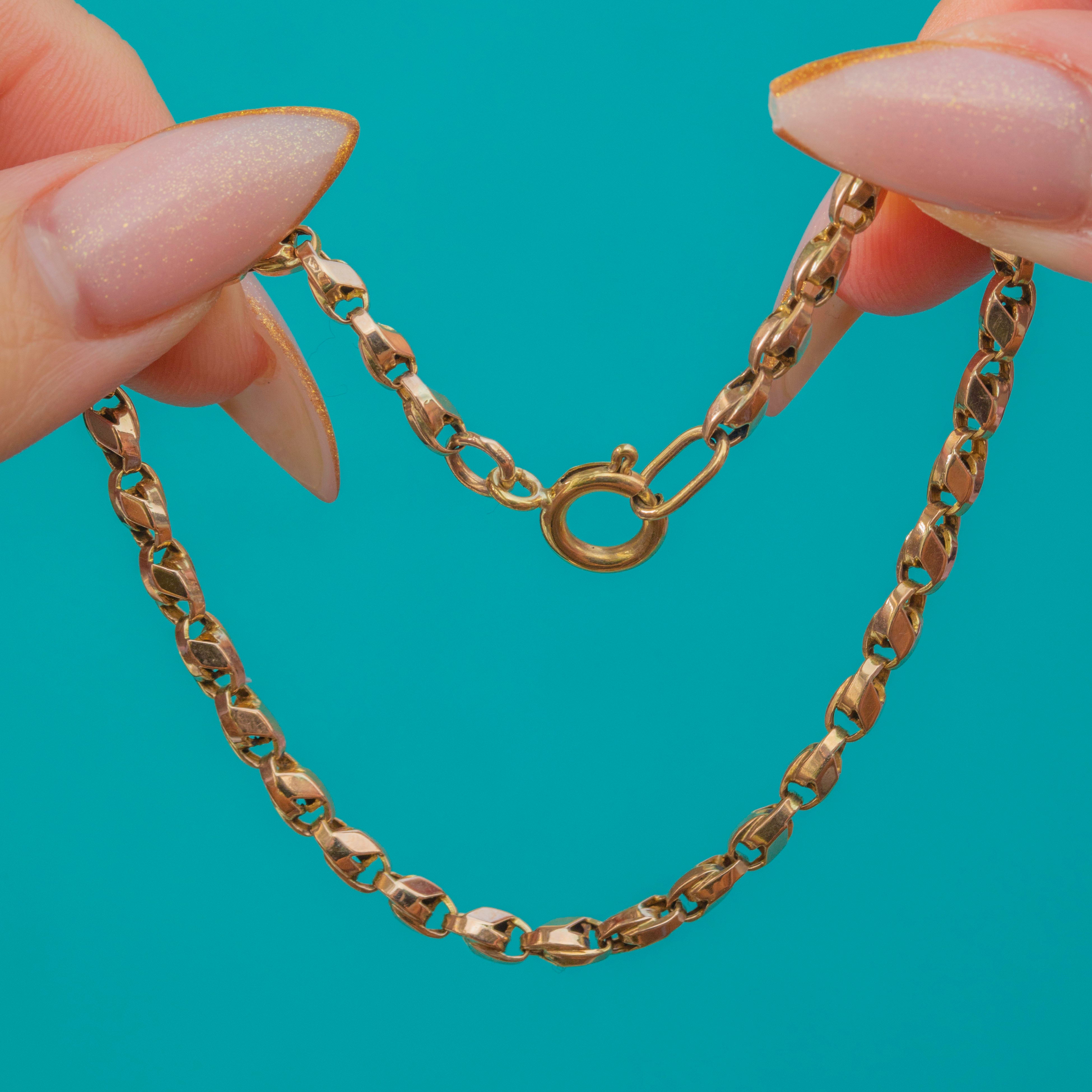 This Victorian 9ct Gold tulip link bracelet is a charming and wearable antique treasure. The pretty tulip-shaped links give it a delicate, feminine movement, creating a bracelet that’s perfect for everyday wear or stacking with your favourite bangles and chains.
