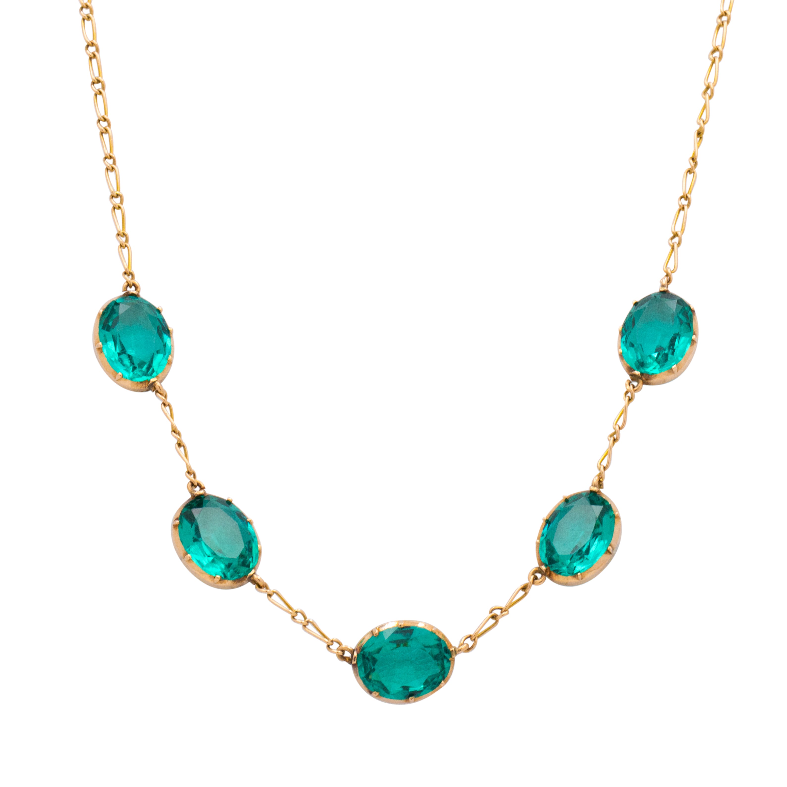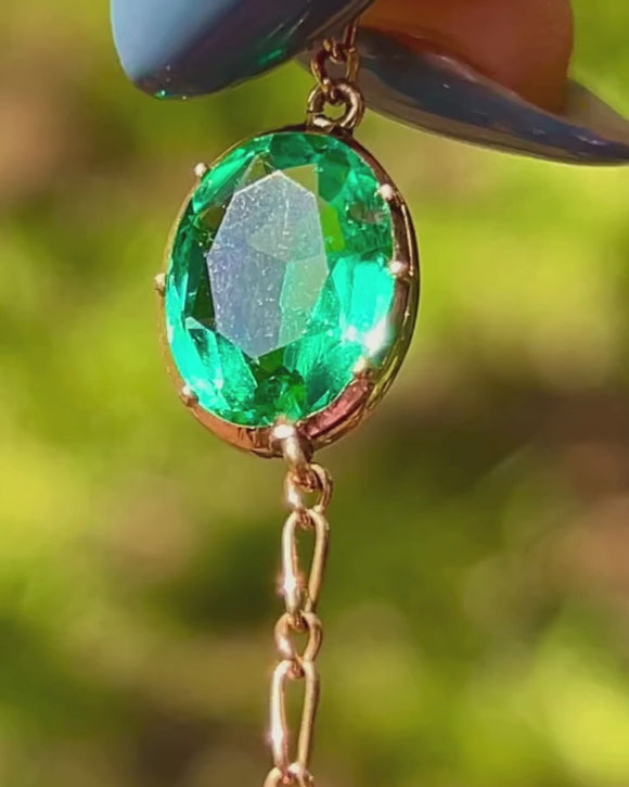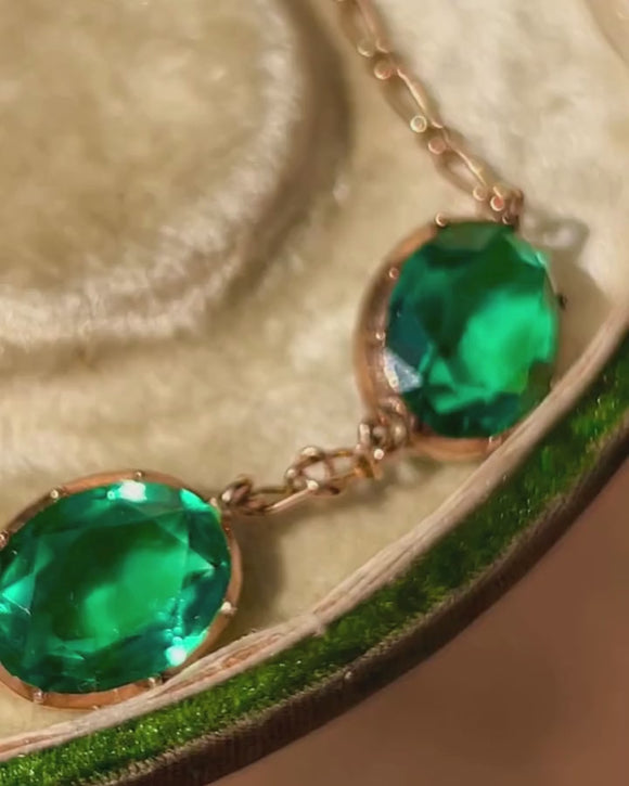 You can't help but become enchanted by this Victorian Paste necklace, the combination of rich forest green against the honey-hued 9ct chain and 15ct Gold settings is breathtaking!