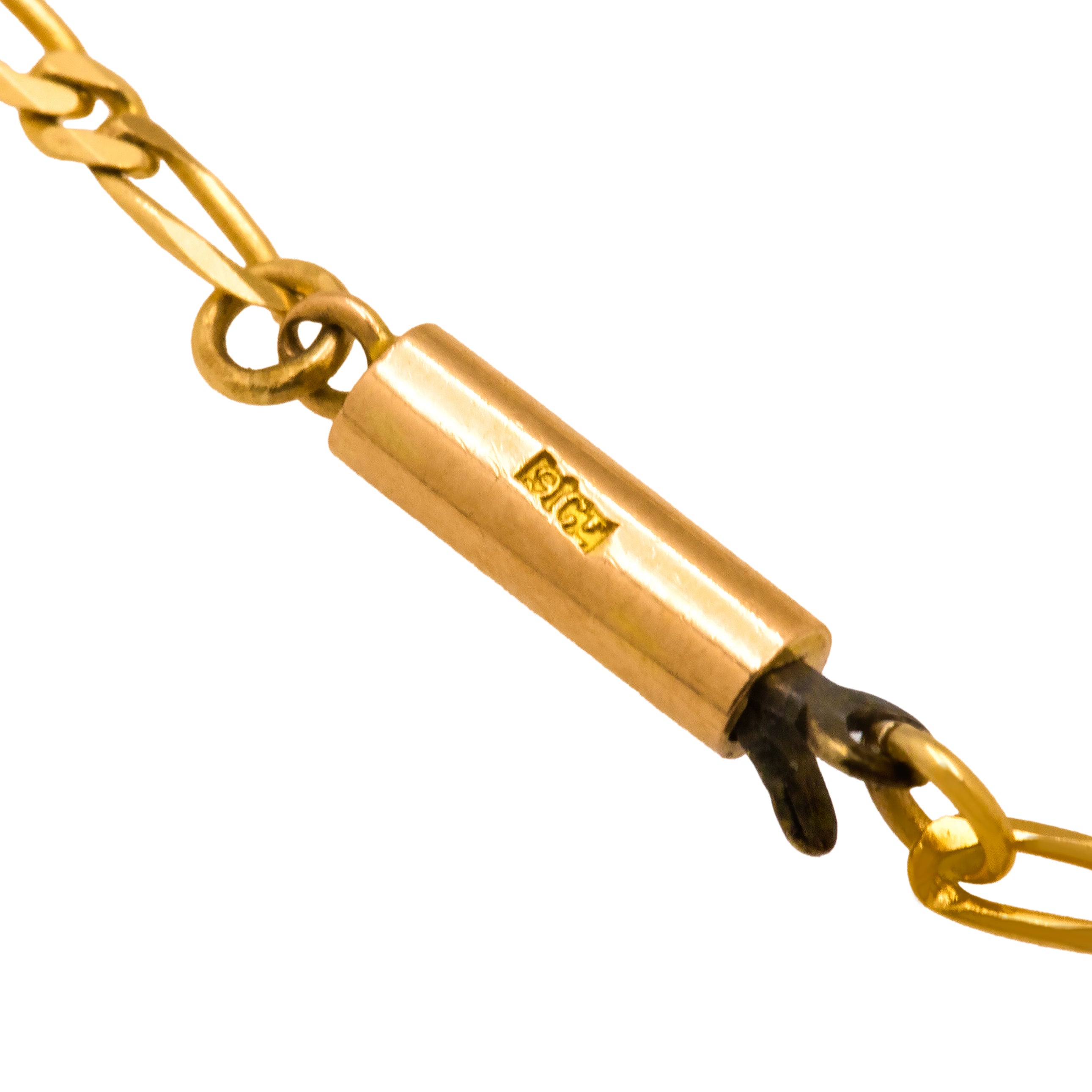 Suspended around your neck with perfectly entwined figaro links, every inch of her seeps splendour; you'll be constantly finding a reason to wear this antique Gold necklace once she's in your possession!