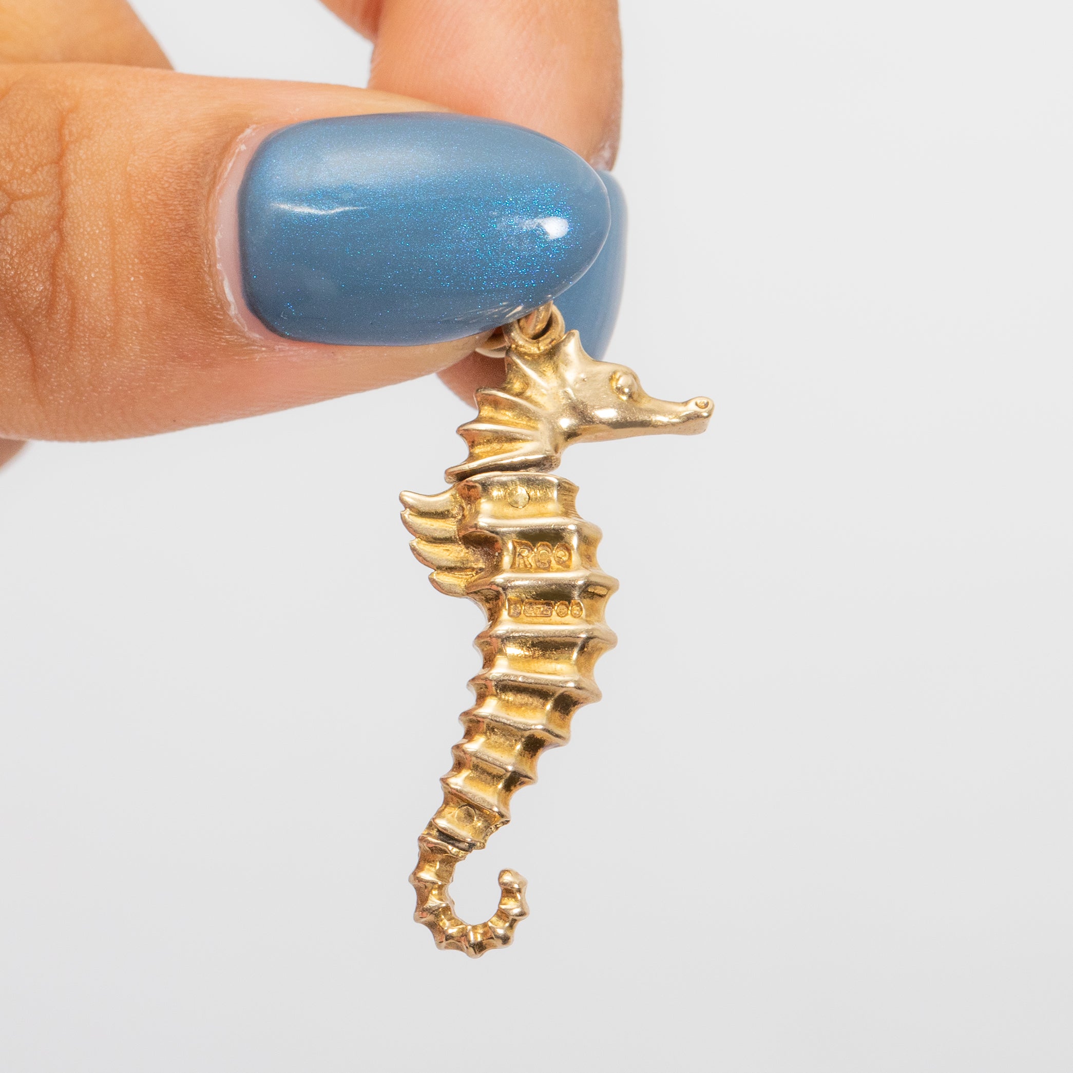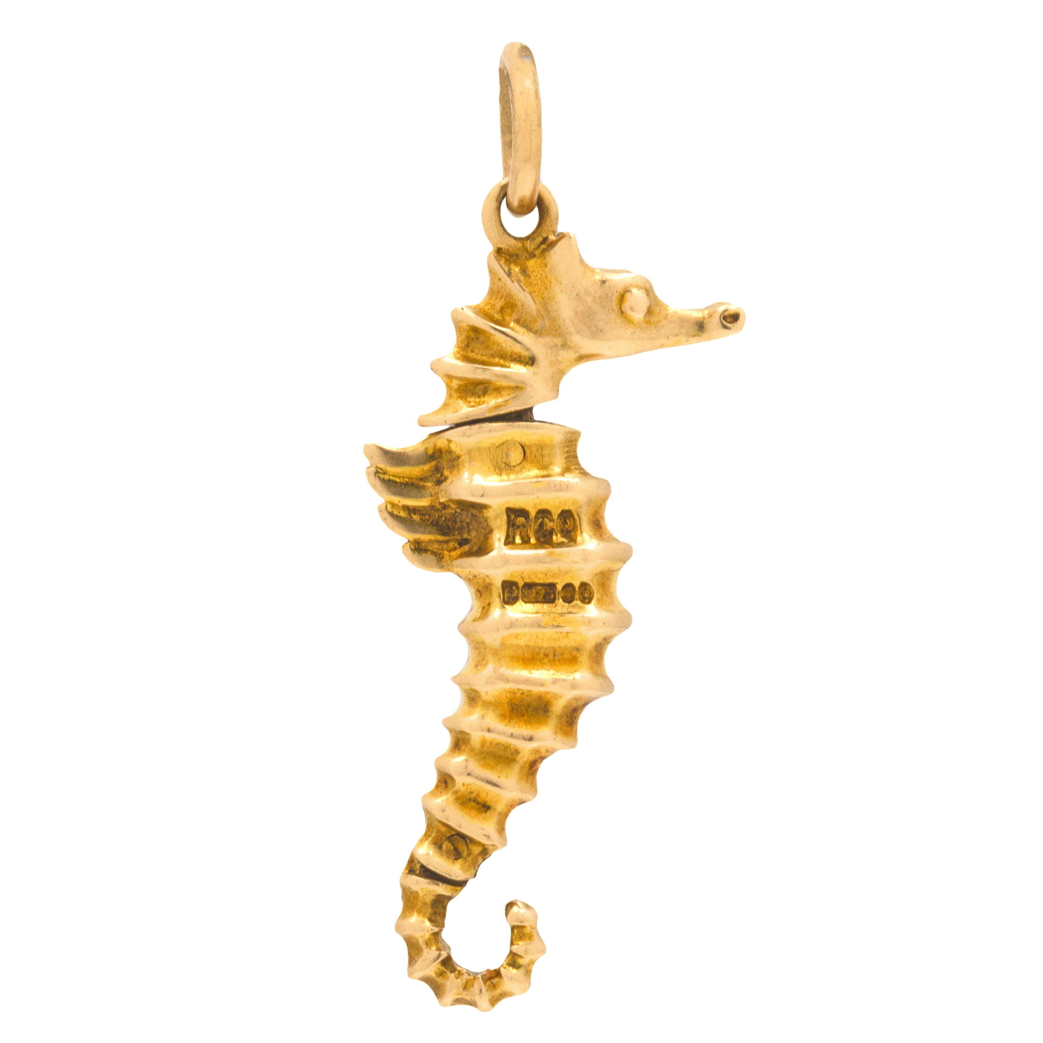 HALLMARKS: 'RCo' Makers mark, '9', '.375', Leopard's Head Date letter 'q' for the year 1971 on the body of the seahorse.