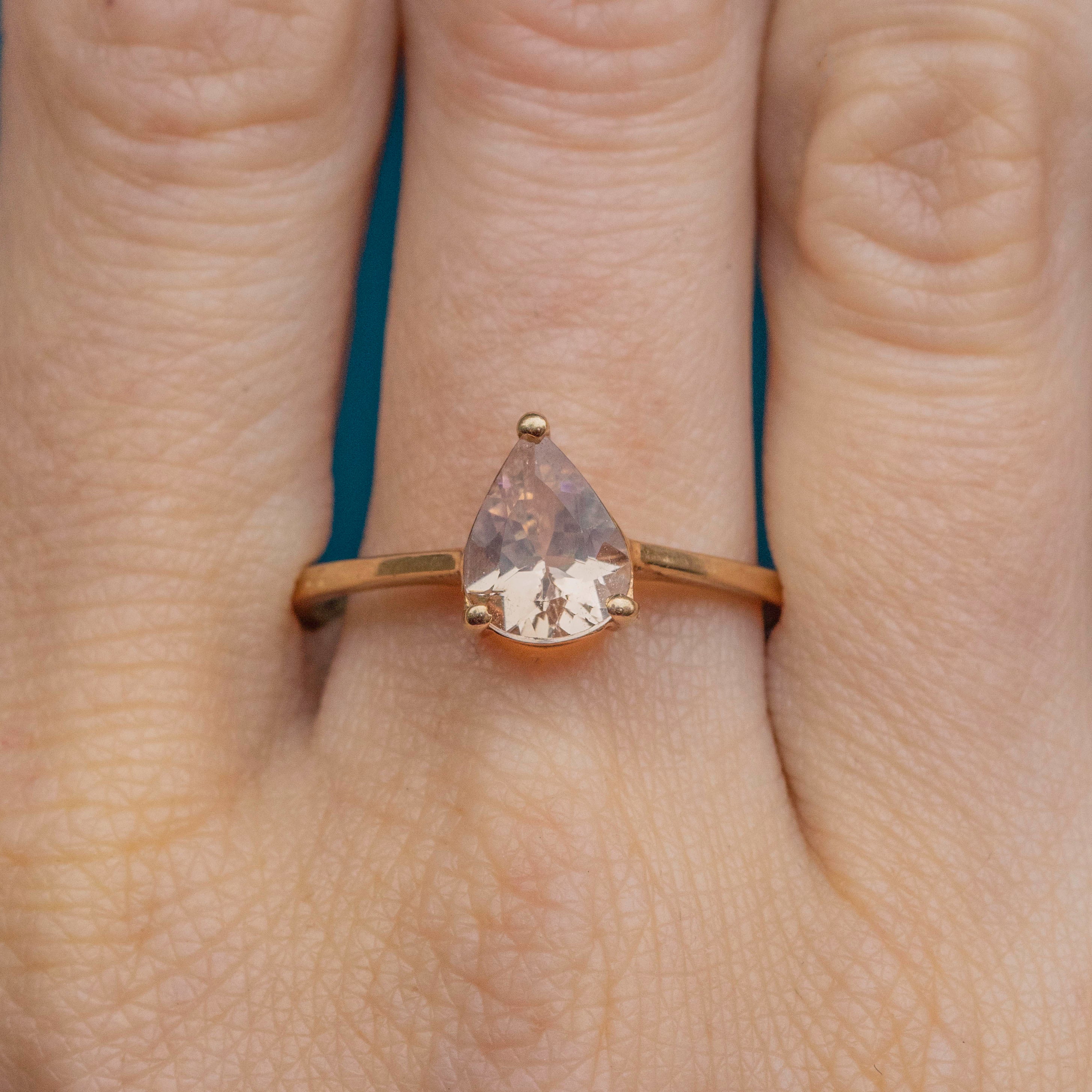 For lovers of soft pastel hues, this 9ct Gold blush Tourmaline pear-cut ring will grab your attention!