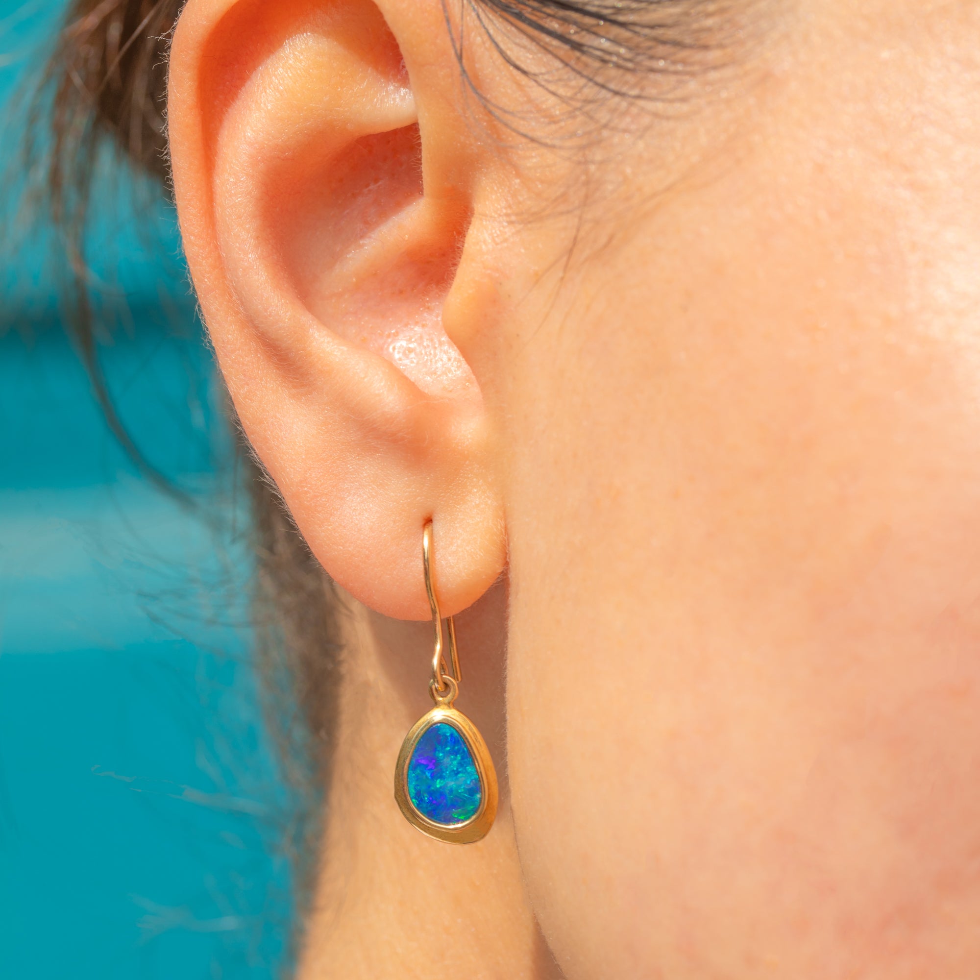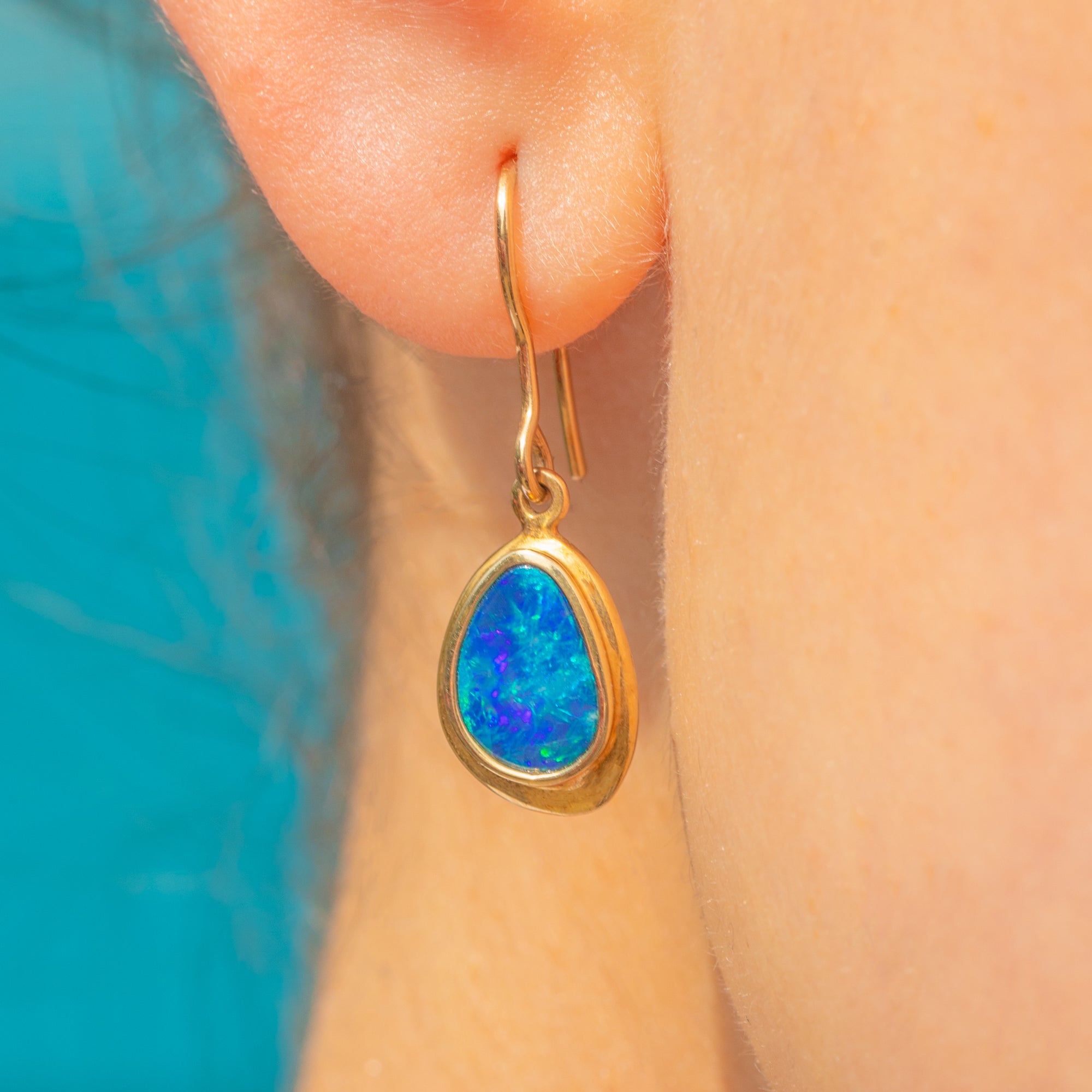 The earring drops are affixed to slender, solid Gold hooks and shimmy effortlessly as they suspend from your lobes. The perfect size for everyday wear, these Boulder Opal earrings will add an enchanting pop of colour to your collection!