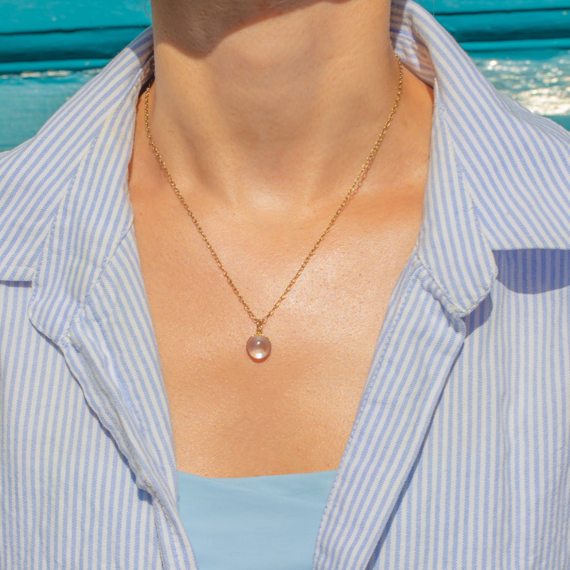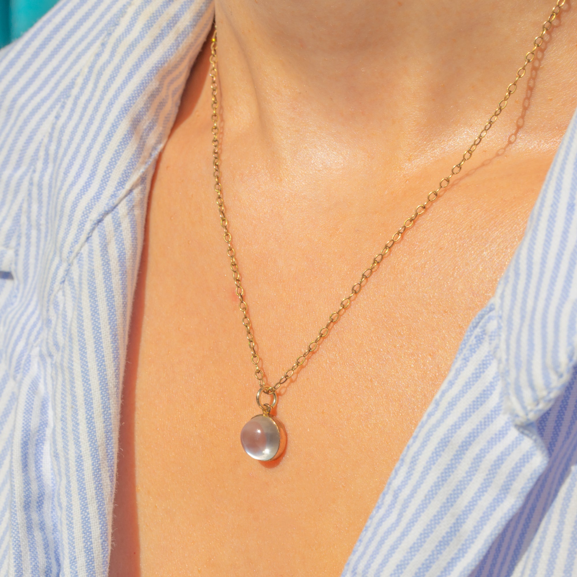 Displaying a plump 2.50ct Moonstone cabochon, this Victorian pendant flaunts a stunning adularescence as it catches the light. Its smooth, rounded shape creates a glowing strip of light that emulates a cat's eye—a highly coveted effect among Moonstone lovers.