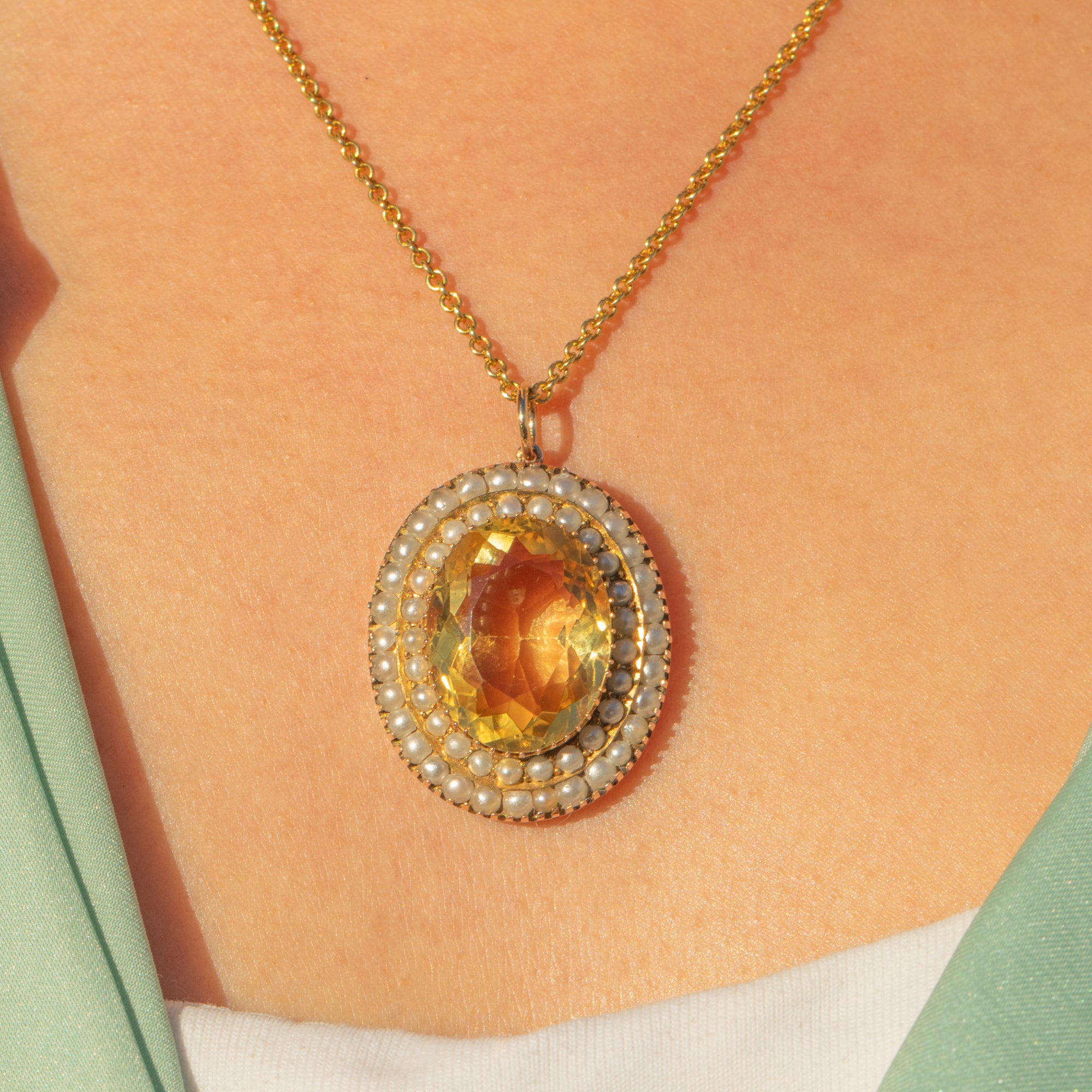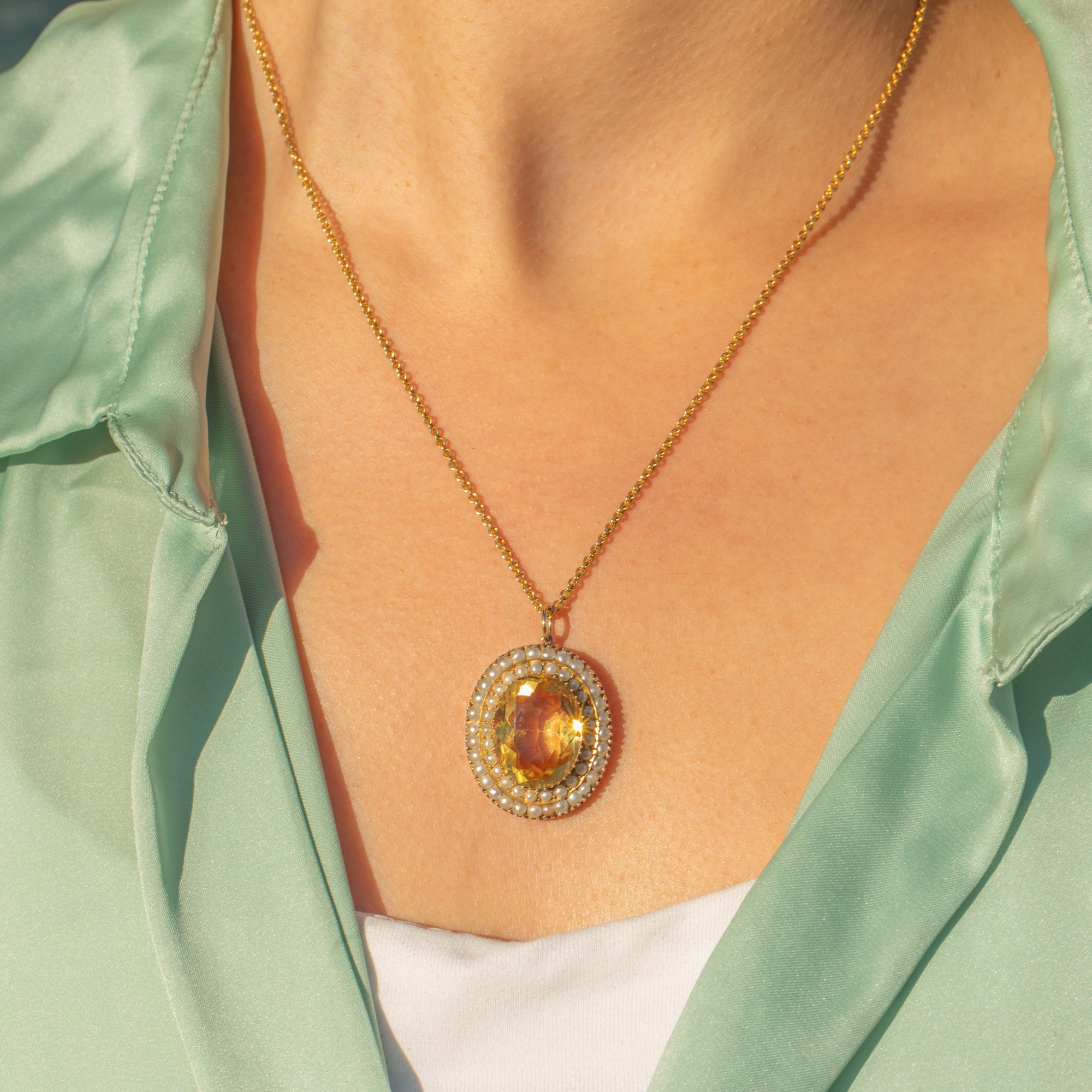 Full of character and colour, it’s an elegant statement on its own or layered with your favourite antique pendants. A timeless Victorian jewel that adds a touch of sunshine to any neckline.