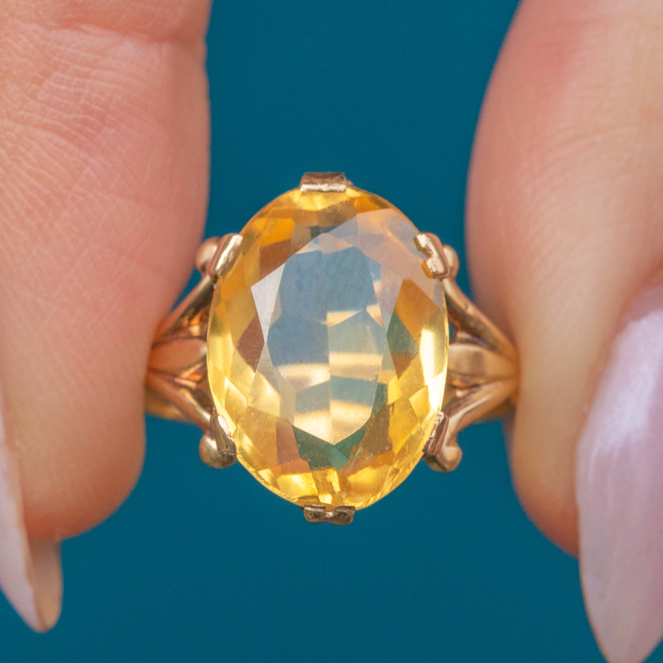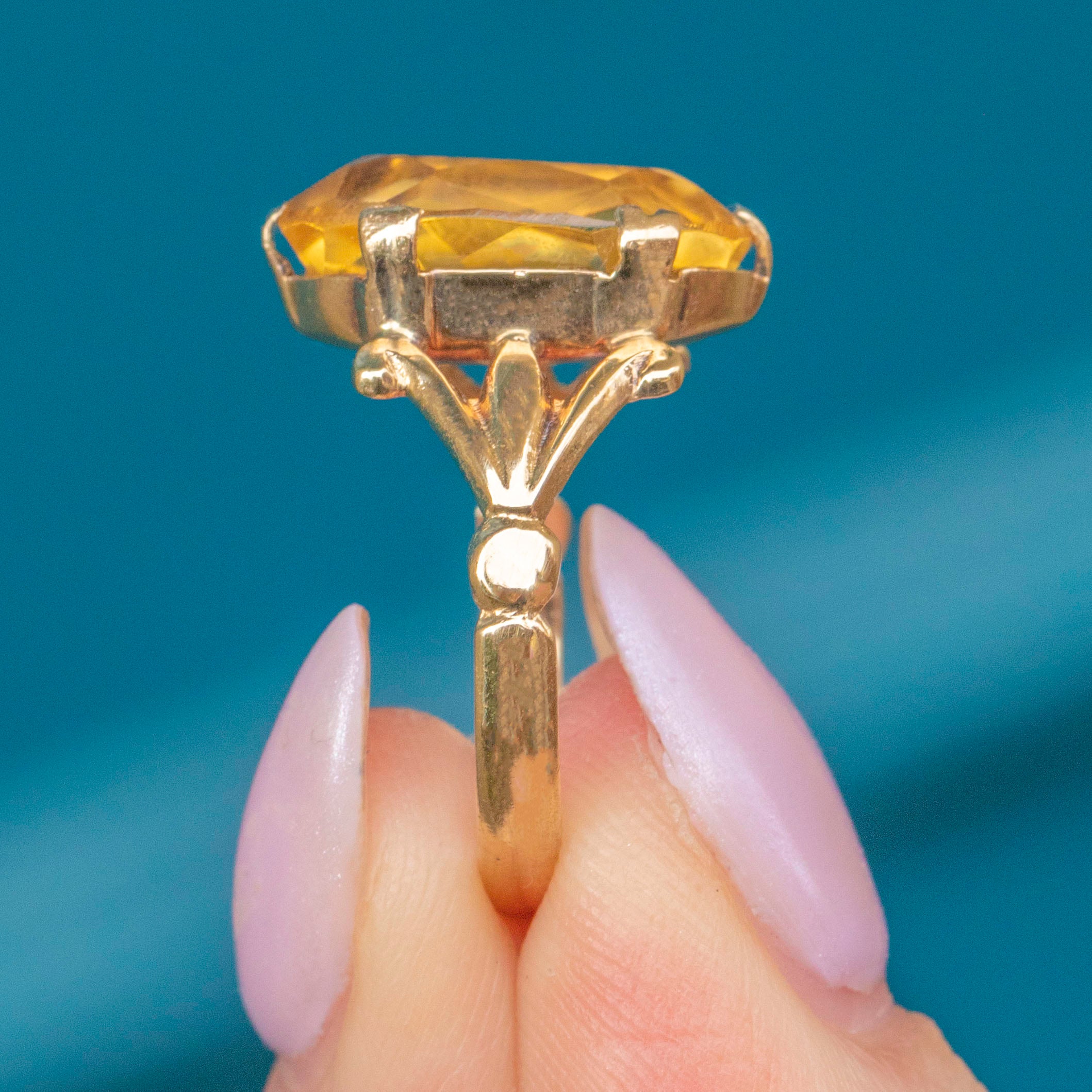 Providing exceptional finger coverage, this vintage Citrine ring will make a statement whenever you wear her. Citrine is a powerful healing stone that will work its magic when worn on your finger!