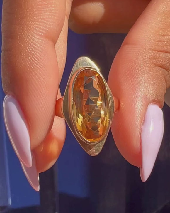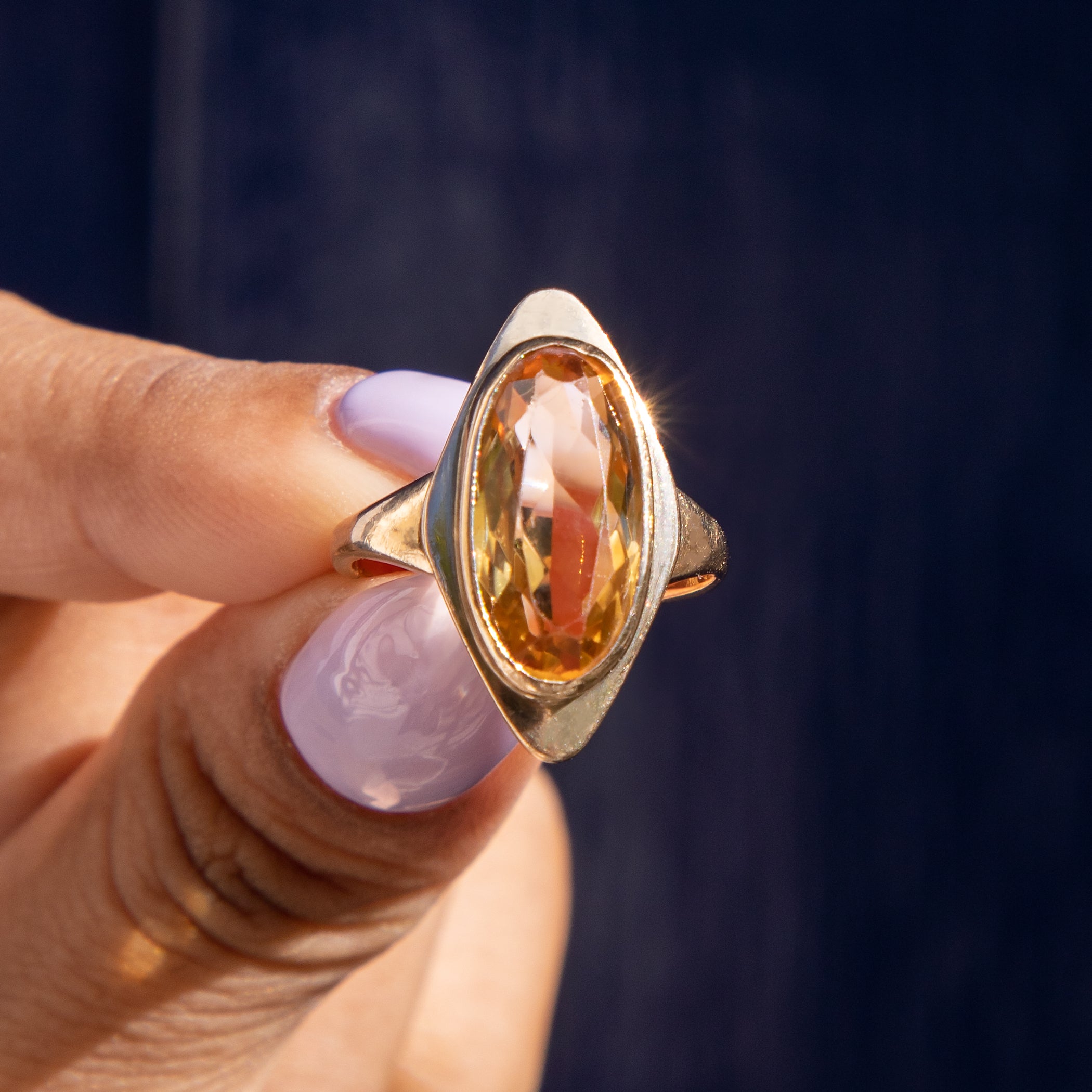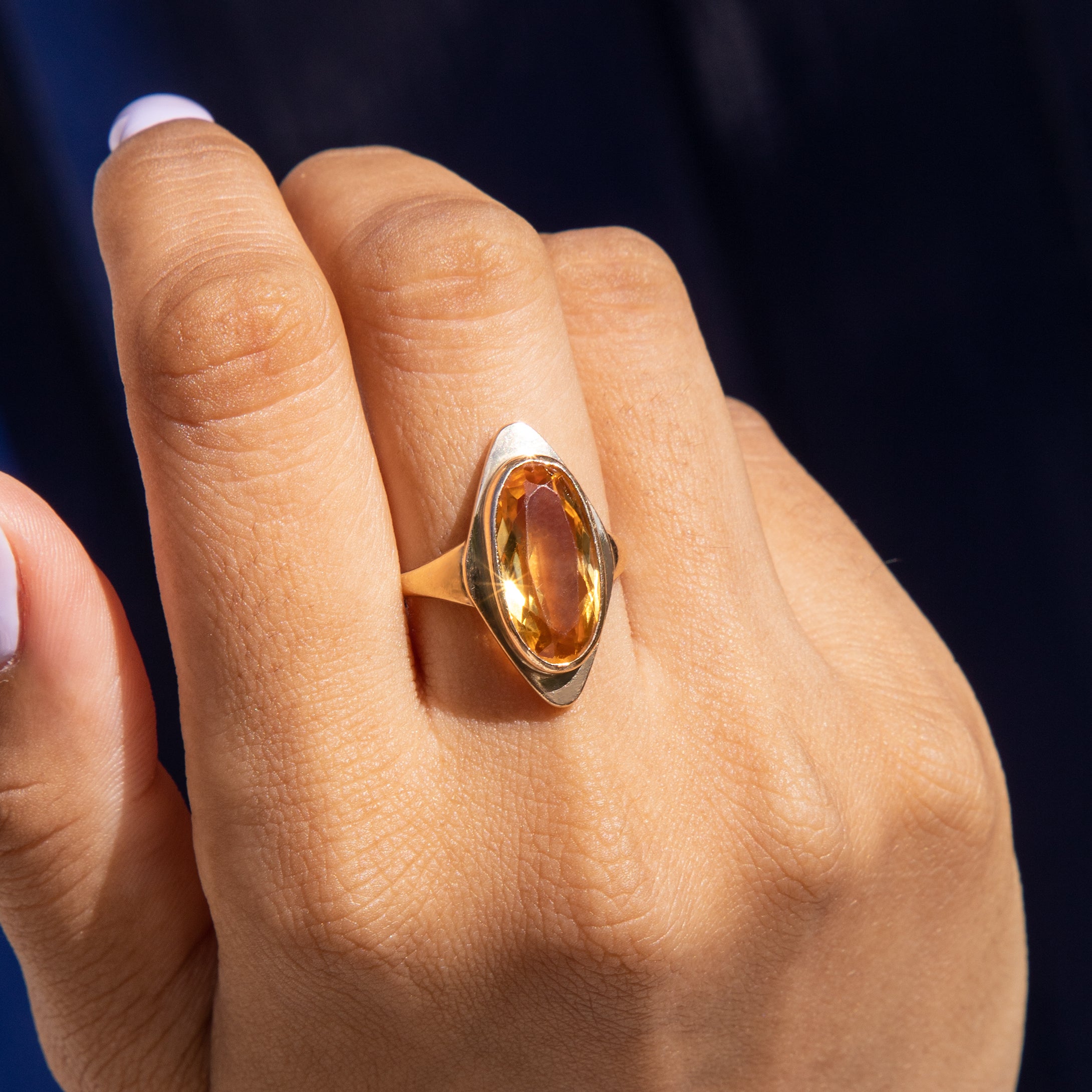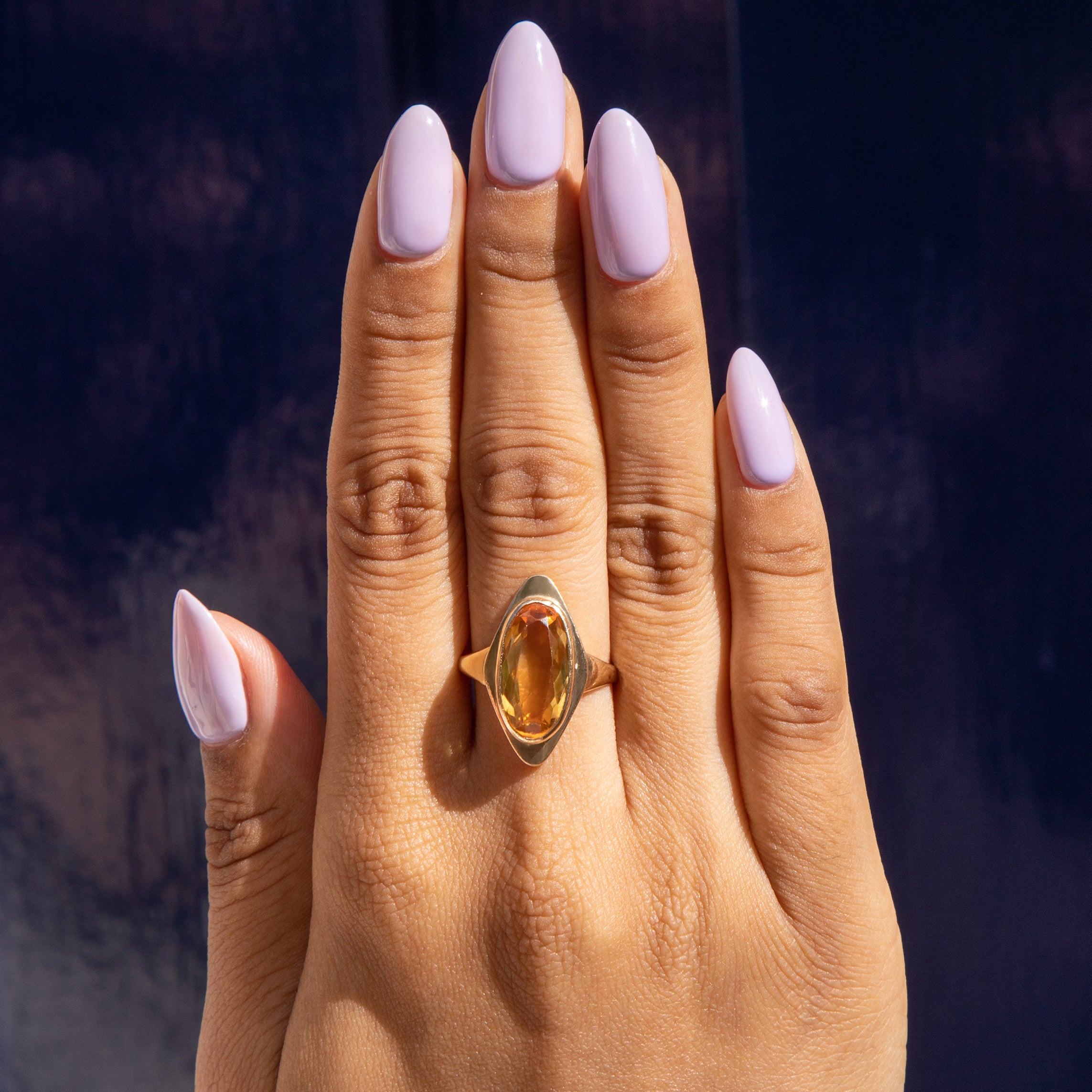 The 3.40ct Citrine is securely nestled within a chunky Gold bezel, allowing light to dance and play across its facets, illuminating the rich hue and depth of the stone. Providing you with excellent finder coverage, this vintage ring is a true statement piece that will delight you for years to come!