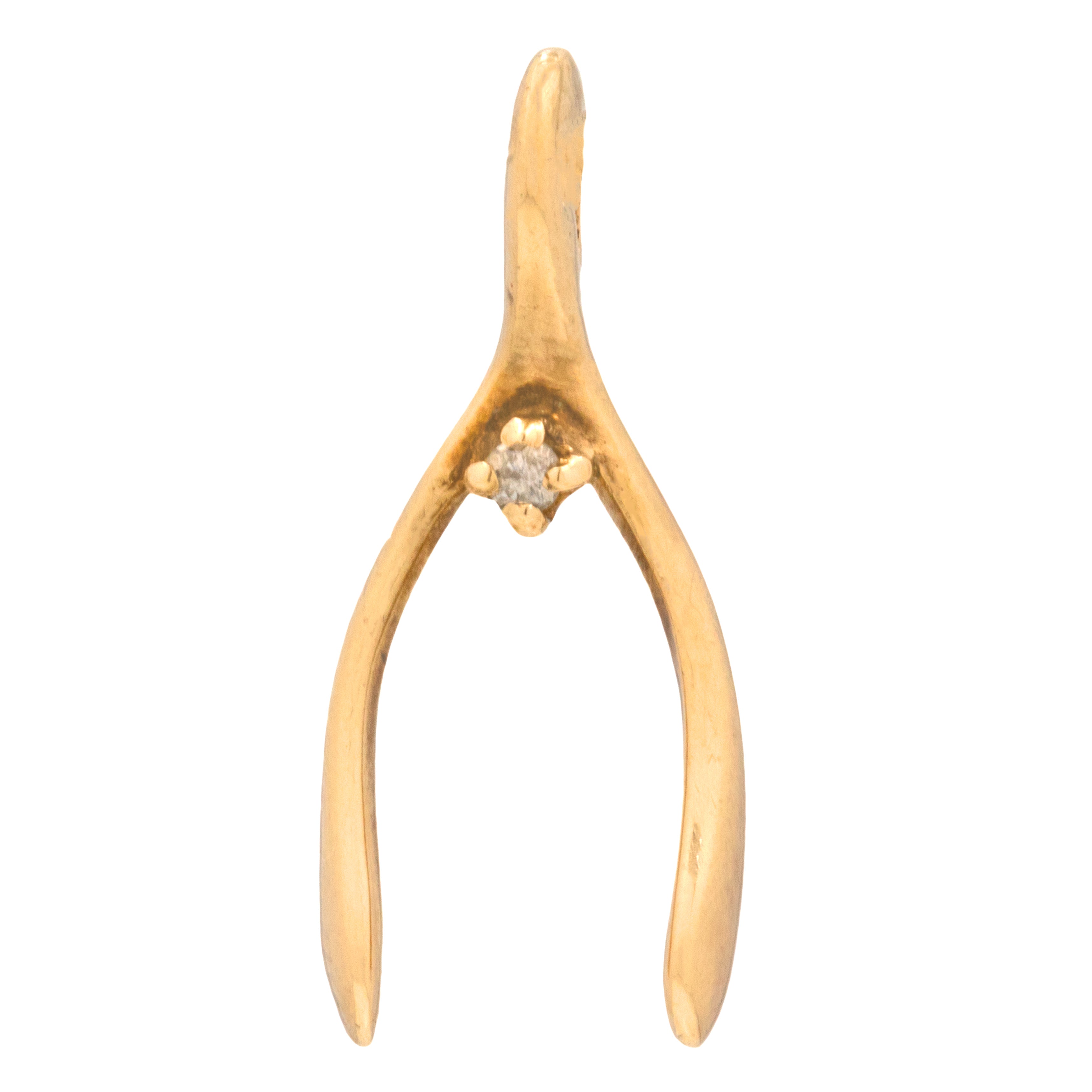 EXCELLENT. We are pleased to present this 9ct Gold Diamond wishbone pendant in excellent condition! Her wishbone form is in wonderful condition and the Gold has a wonderful lustre throughout, with no damage to note. The Diamond is securely held within its claws and free from any fleabites. This vintage wishbone charm is ready to be worn with the utmost confidence!