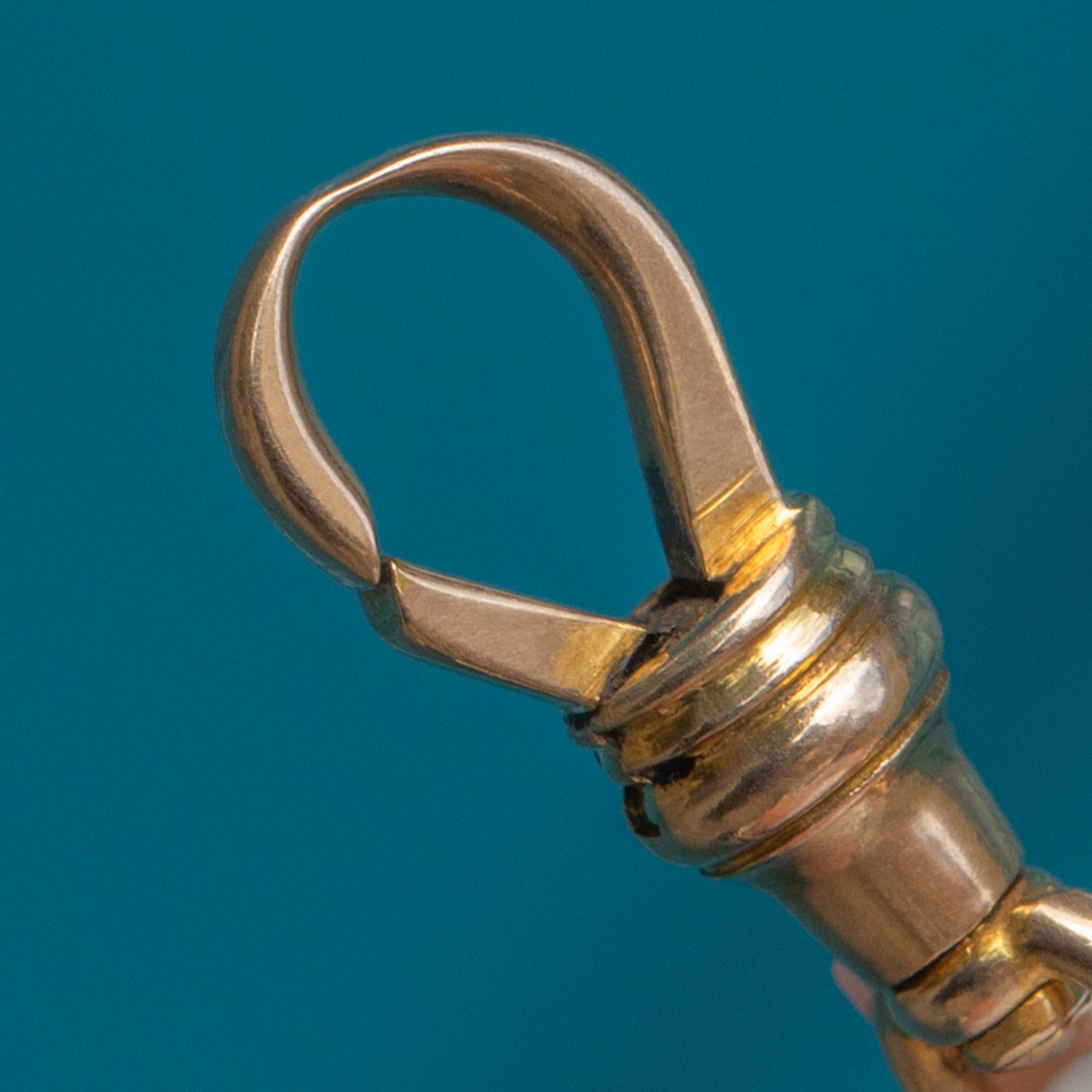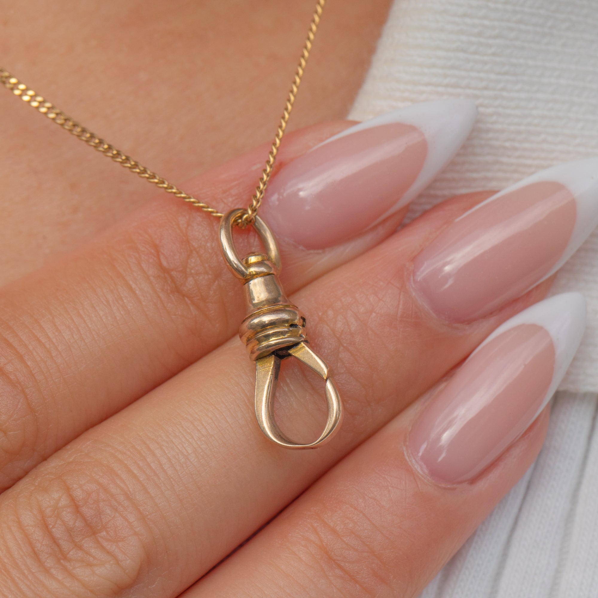 This Antique Victorian dog clip is crafted in solid 9ct Gold, a versatile and collectible jewellery fitting from the 19th century. Measuring 21.5mm long, it is ideal for attaching charms, fobs, pendants, or chains. With its warm Gold tone and classic design, this piece combines practicality with timeless antique style.