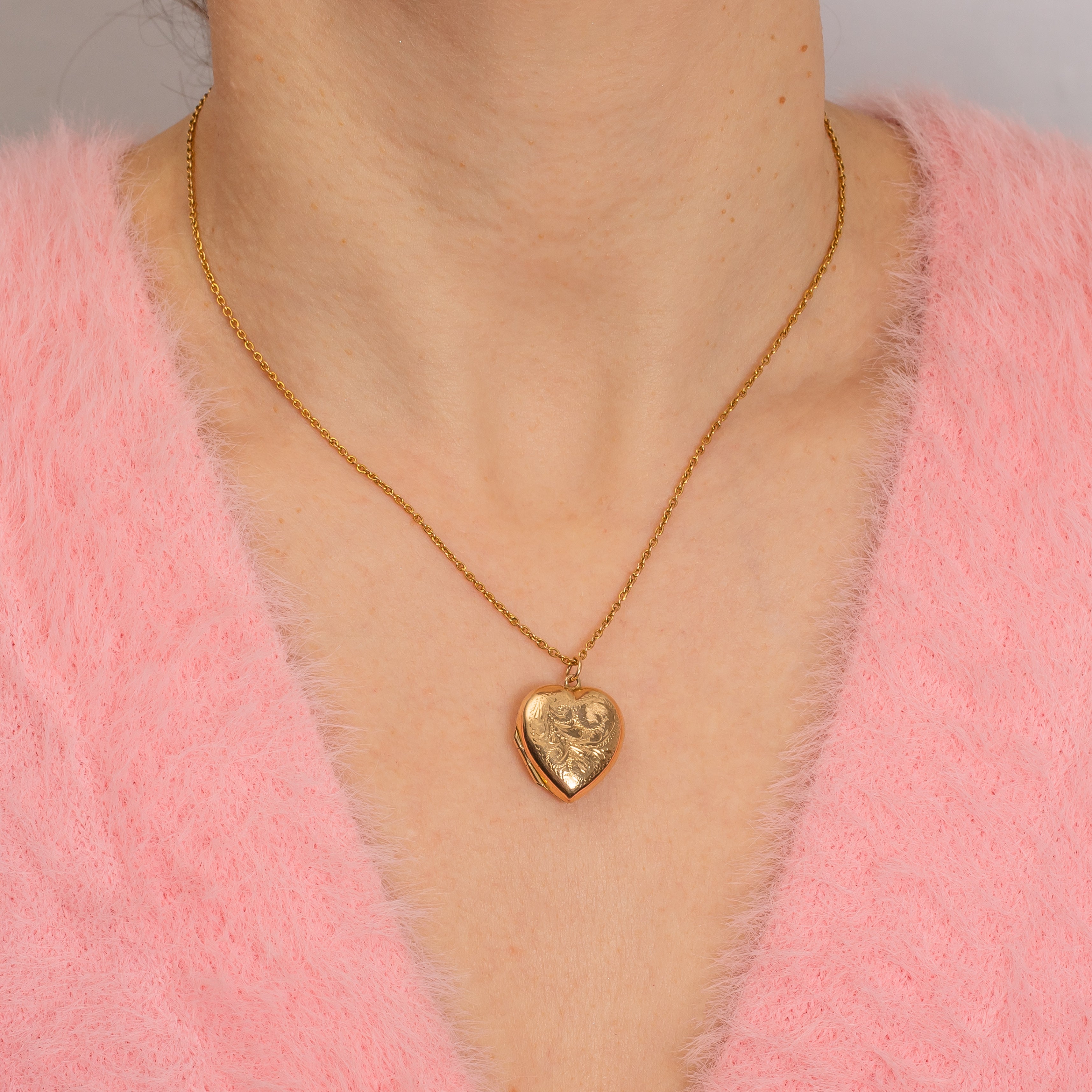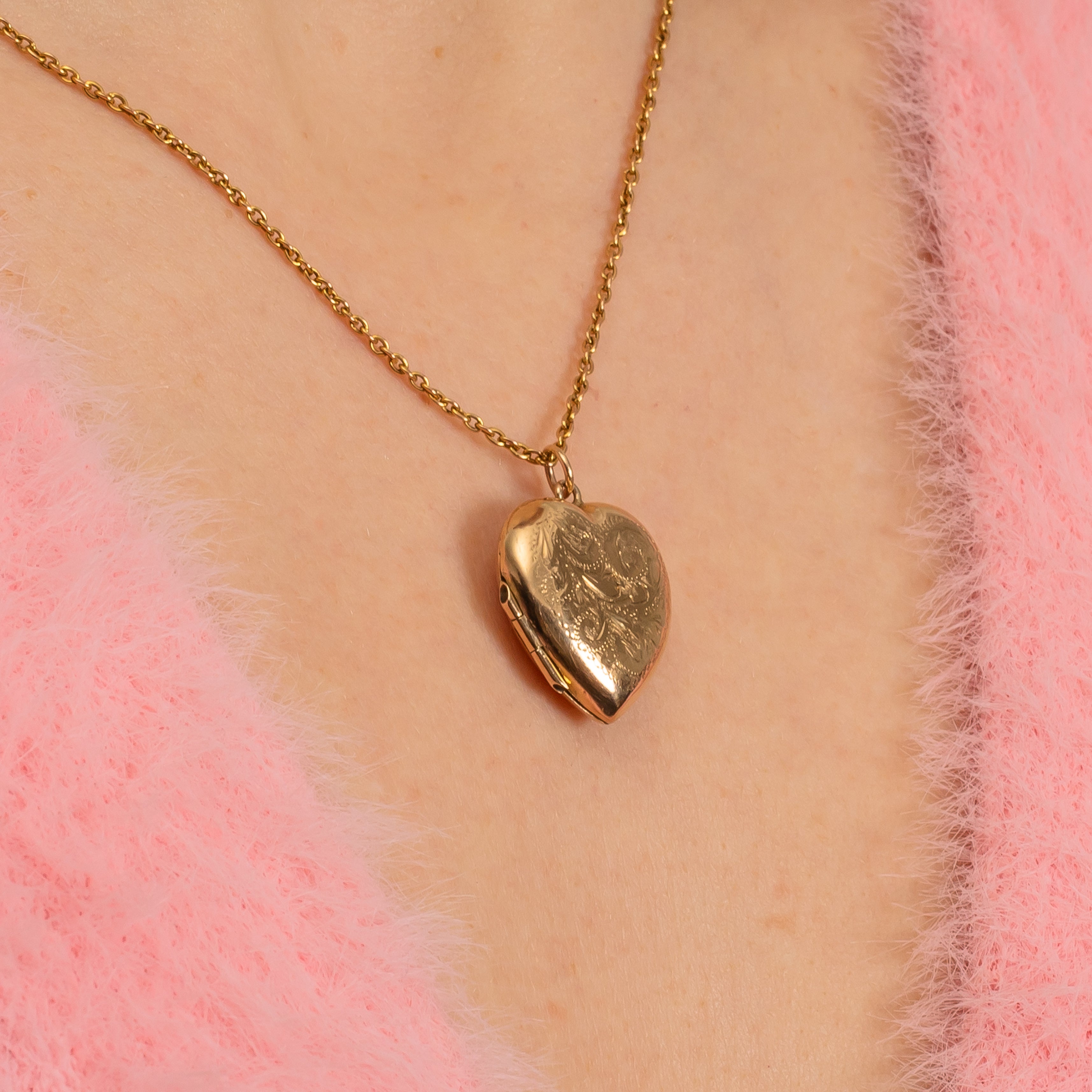 This 9ct Gold engraved heart locket is a true vintage treasure! Handcrafted from solid 9ct Gold with pretty engraved details dancing across the front, this heart locket would make the most wonderful romantic token to gift a loved one.