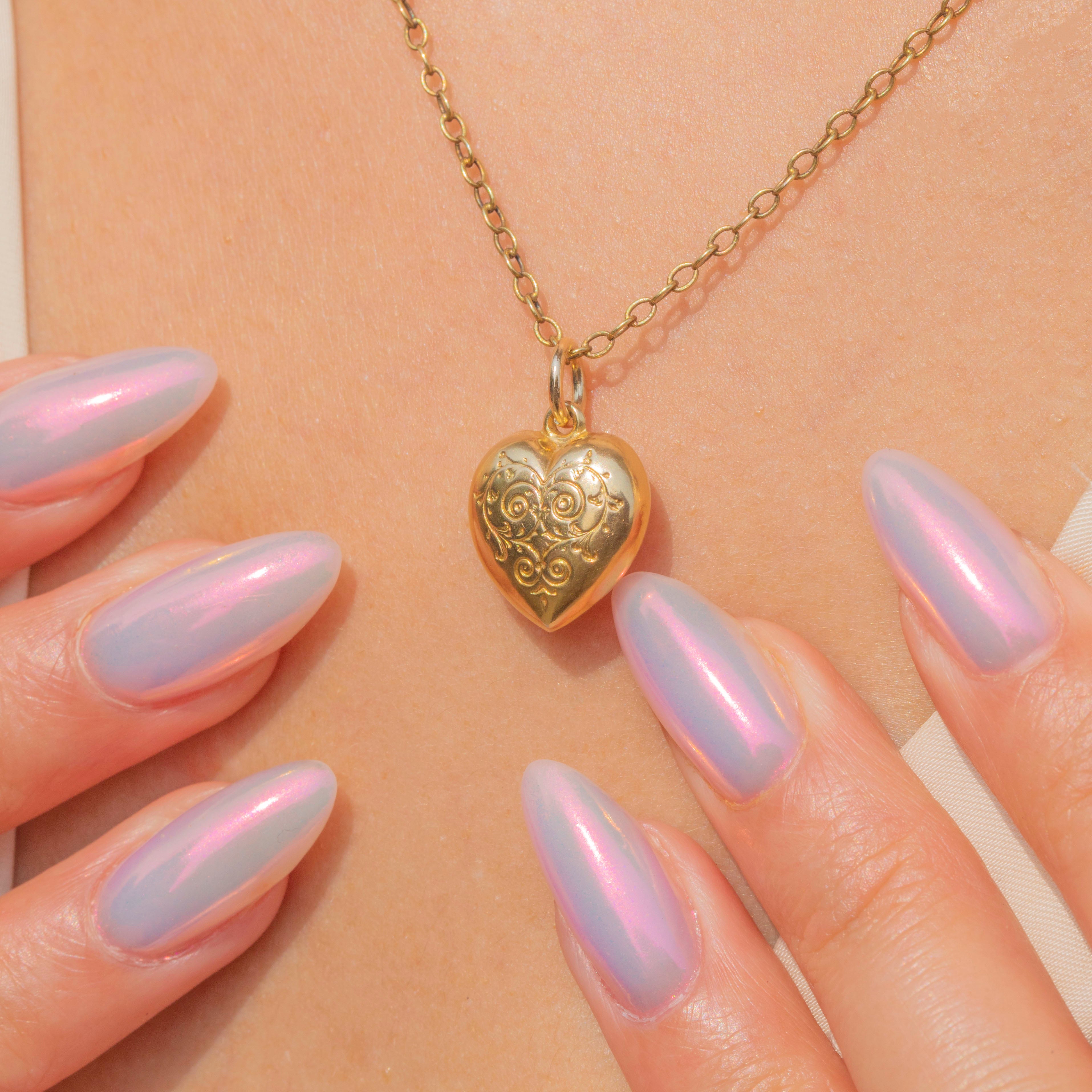 This 9ct Gold engraved puffy heart charm exudes vintage prestige! Crafted from bright Gold, the surface of the heart displays beautiful engravings, bringing ample texture to this dainty vintage pendant.