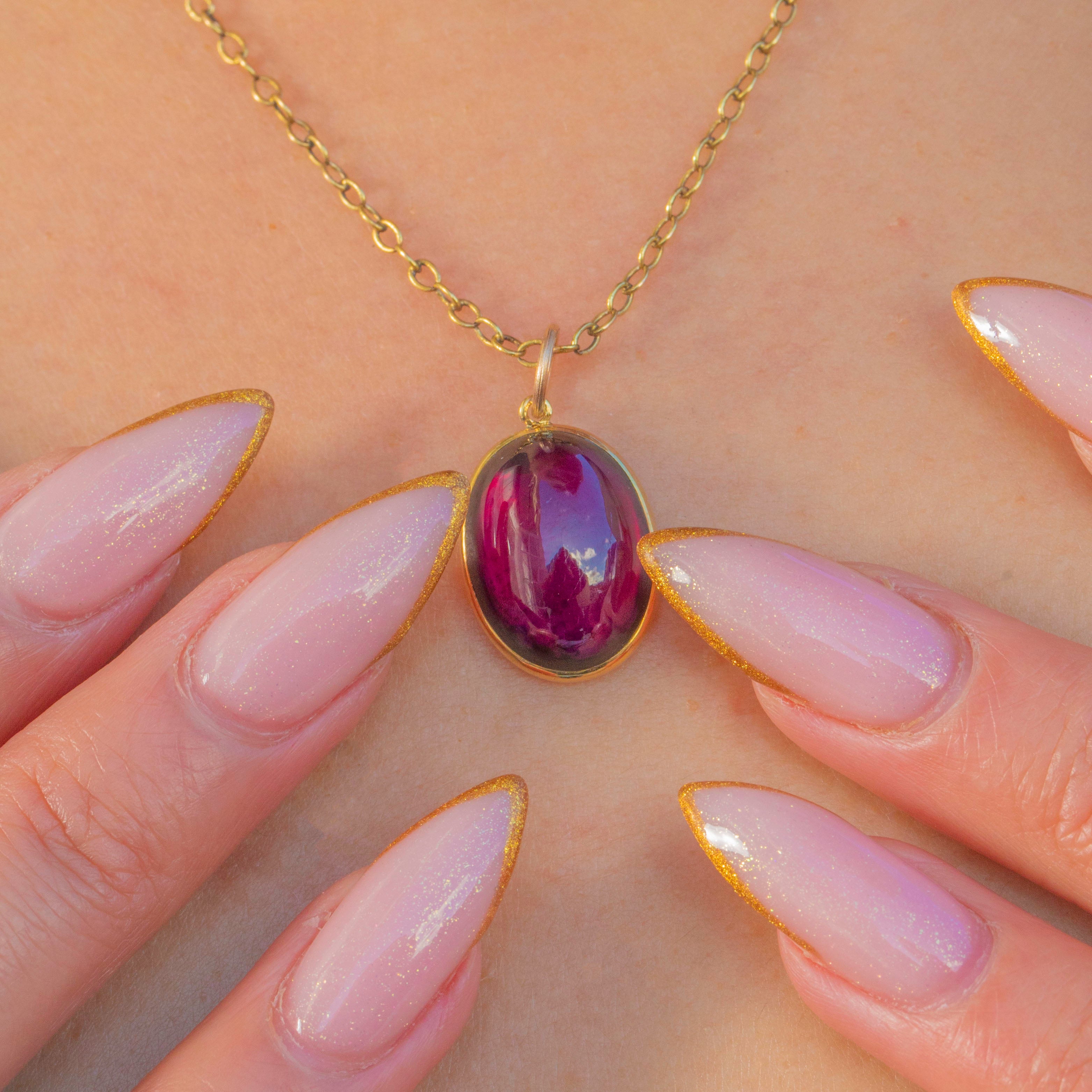 The Garnet is bezel-set in a simple oval frame with a smooth closed back, giving the piece a clean, timeless look that works perfectly on a fine chain or layered into a charm stack. With an estimated 2.20ct Garnet, this charming pendant brings a bold pop of colour to everyday outfits and special occasions alike.