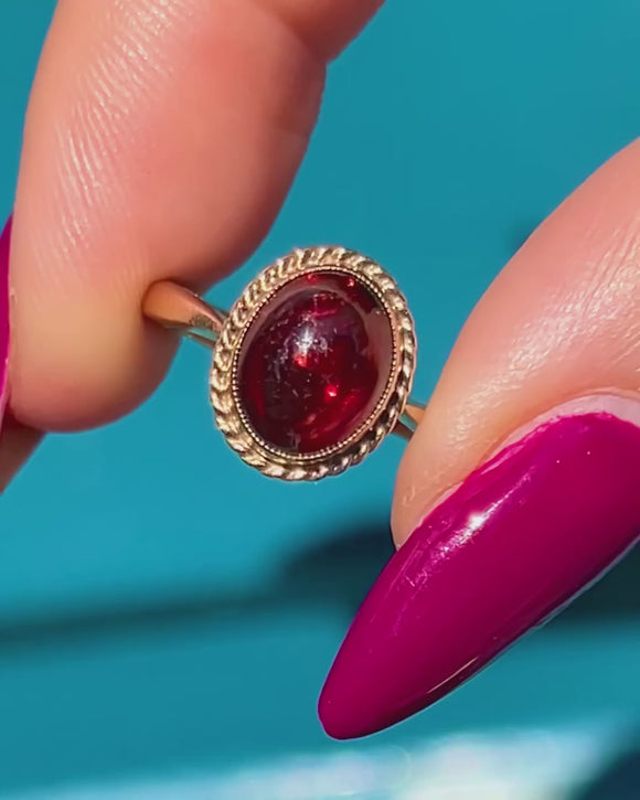 Vintage 9ct Gold Garnet Cabochon Ring 3.80ct