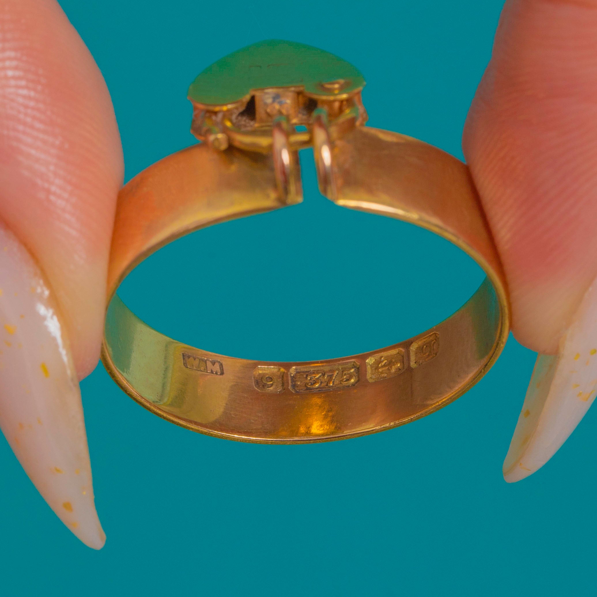 Hallmarked in Birmingham in 1915 with maker’s mark W.M, this piece blends sentiment with simplicity, making it a beautiful choice to stack or wear solo.