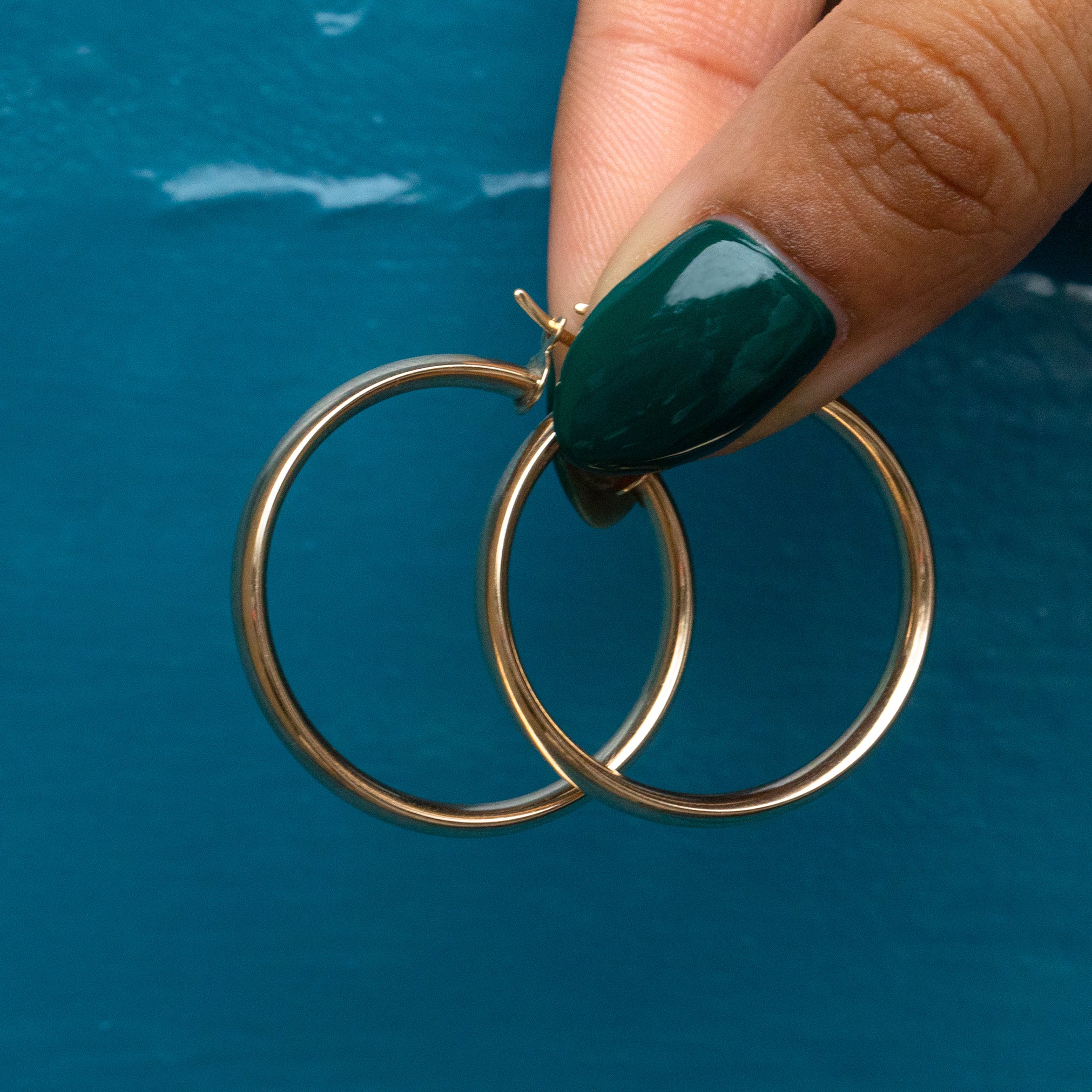 Silky smooth to the touch, they are a classic hoop design and one you will never tire of! Wear as a stand-alone pair or incorporate them into an earring stack, however you choose to style them, they are sure to spark conversation!