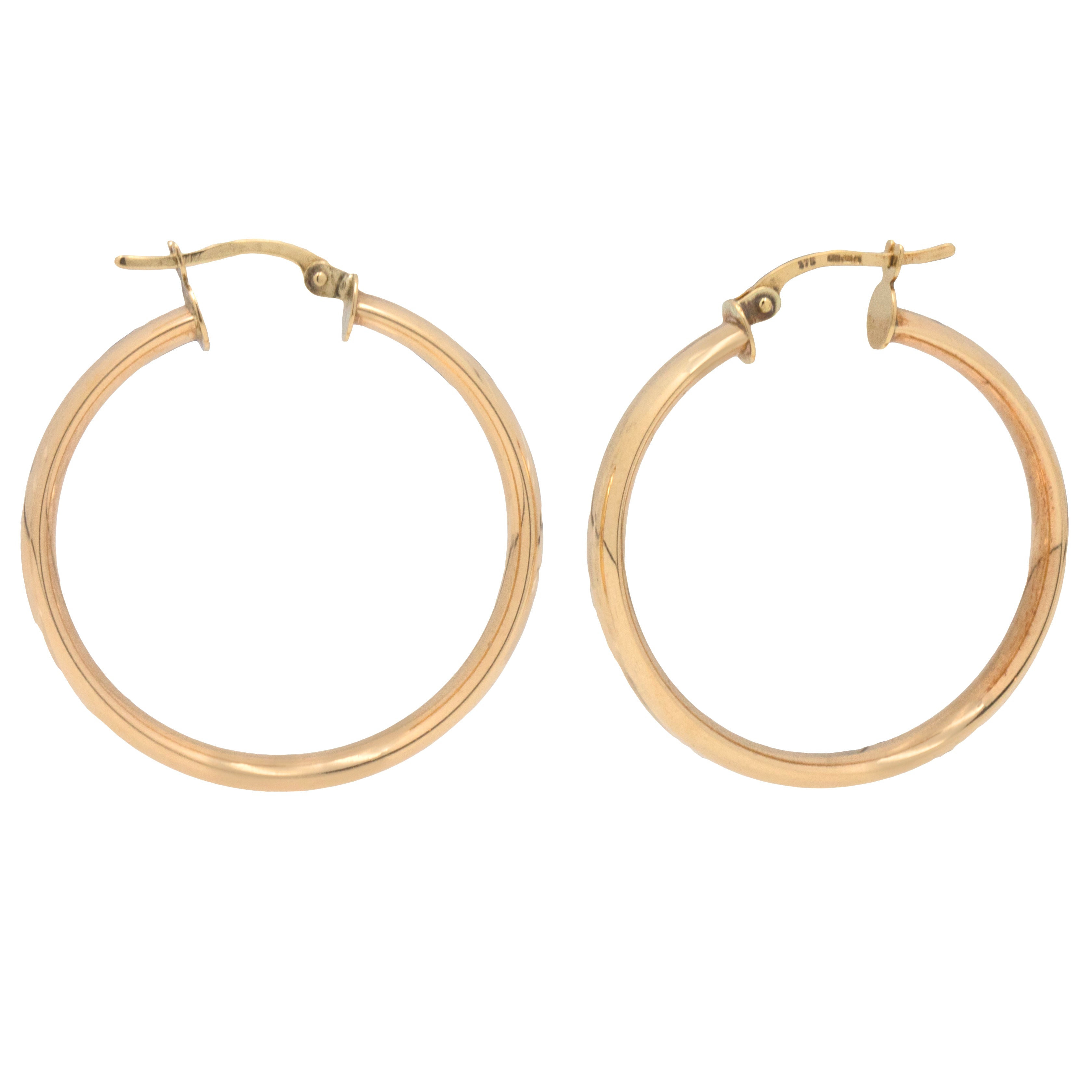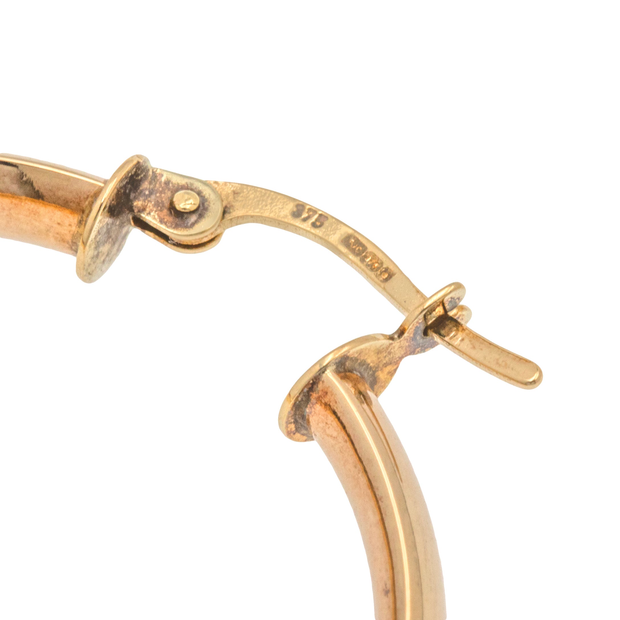 EXCELLENT: These 9ct Gold hoop earrings are in excellent condition. Their 9ct Gold is glossy throughout, with no dings and dents to note. Their ear post mechanisms are in perfect working order, allowing you to wear them with the utmost confidence. A real feast for the eyes!