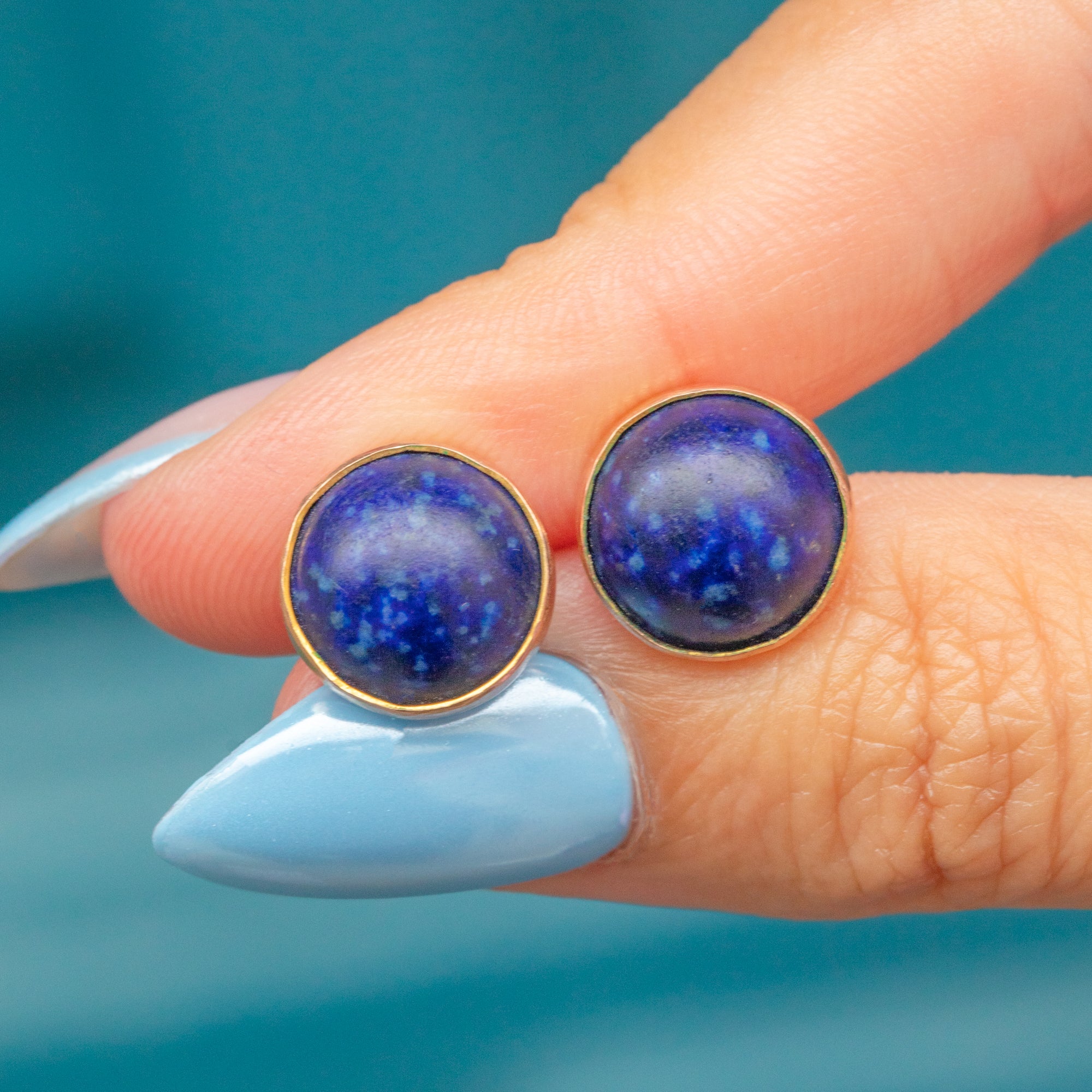 The Lapis Lazuli stones have a natural mottled finish, set into 9ct Gold bezels that combine to create an elegant pair.