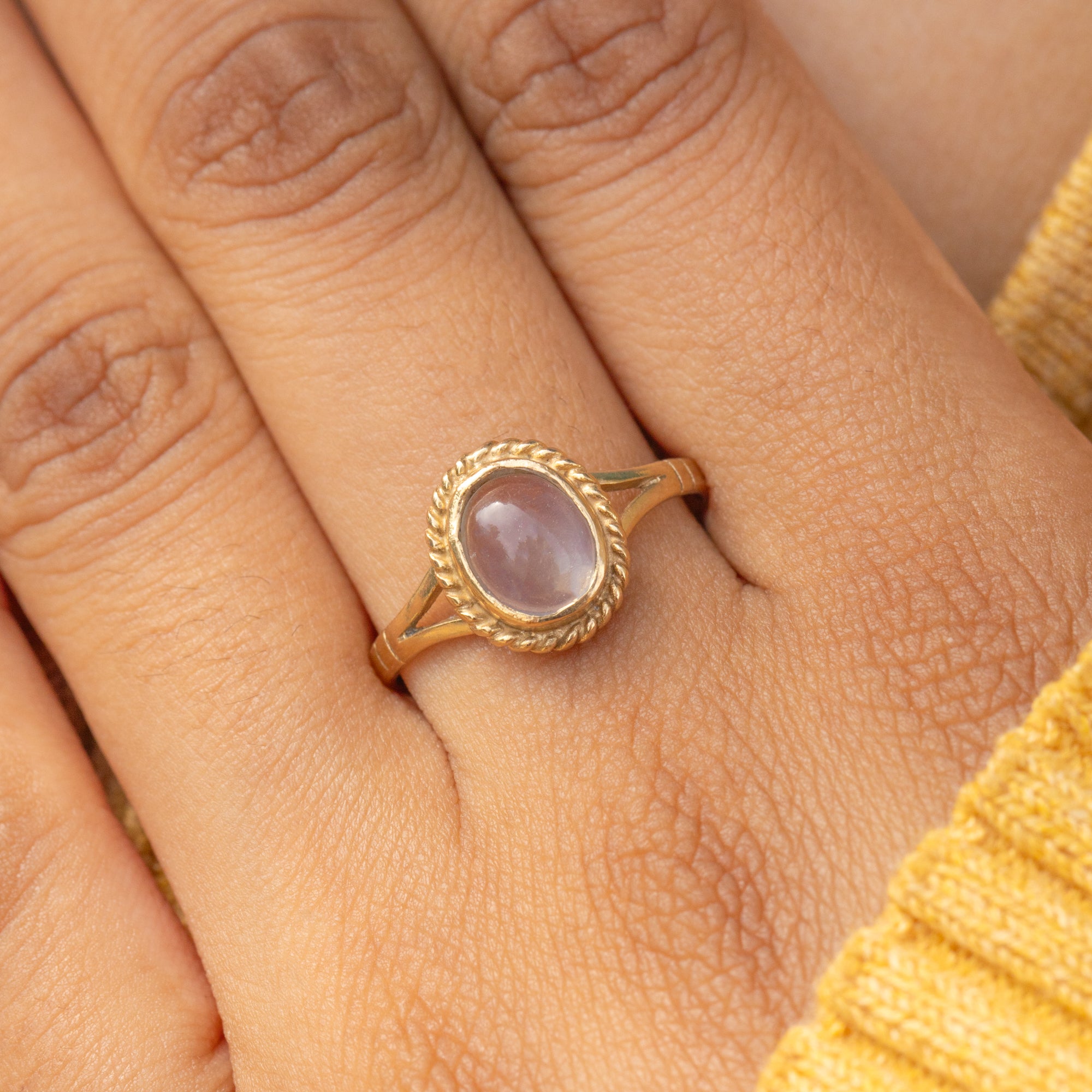 This vintage Moonstone ring has a thin ring band allowing for the most comfortable wear, perfect for everyday wear! Hugging your finger in all the right places, she will make for the perfect addition to your ring stack or can be worn as a stand-alone piece. However you choose to style her, she is bound to bring a touch of elegance to any attire.