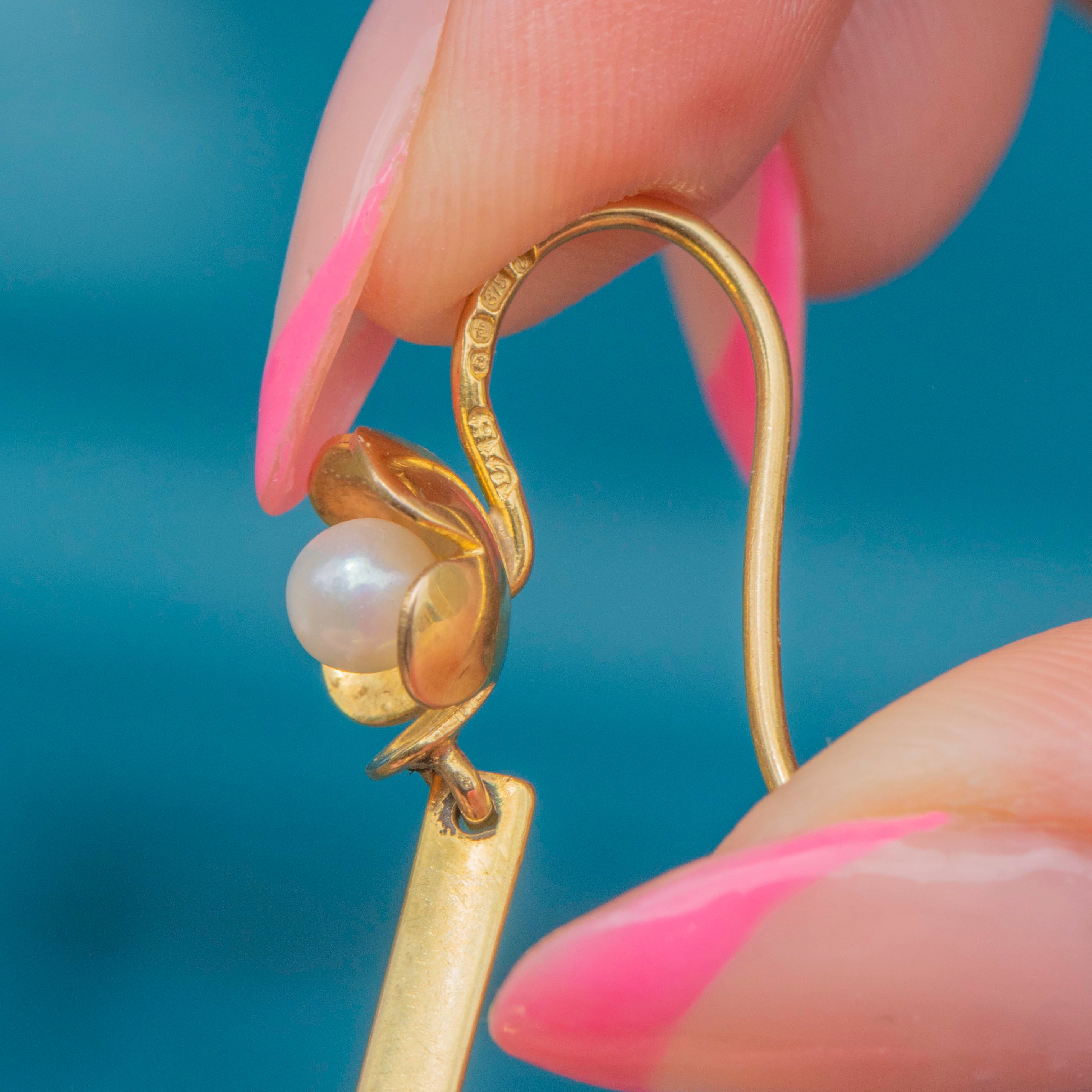 Each Opal is complemented wonderfully by an adorable floral motif, adorned with a central Pearl; the iridescence of each gemstone is married effortlessly by the warmth of their 9ct Gold settings.