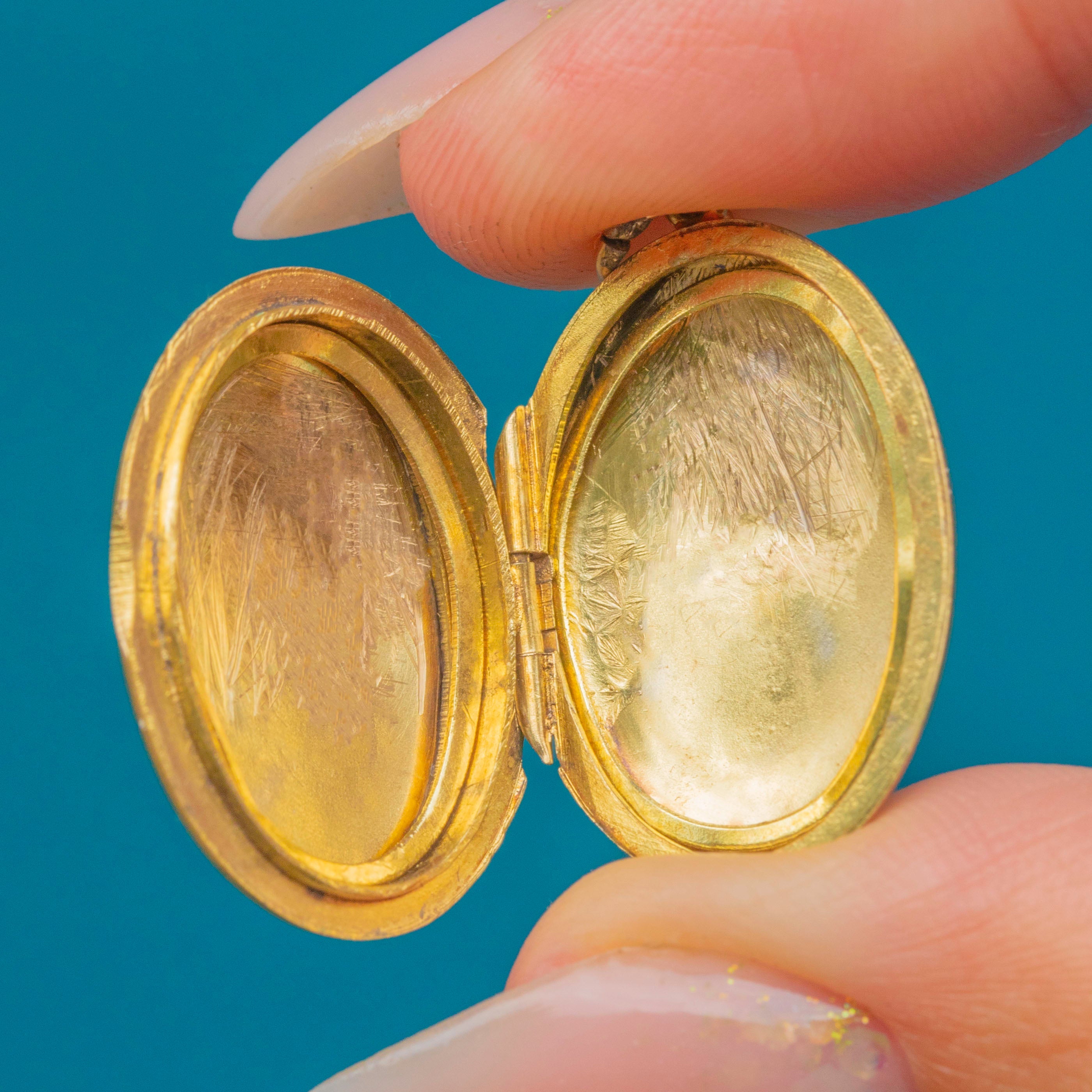 VERY GOOD: The locket opens and closes securely with both internal frames intact. There is minor surface wear across the Gold in line with age and use, but the engraved detail remains clear. A charming Edwardian piece, ready to be worn and loved again.