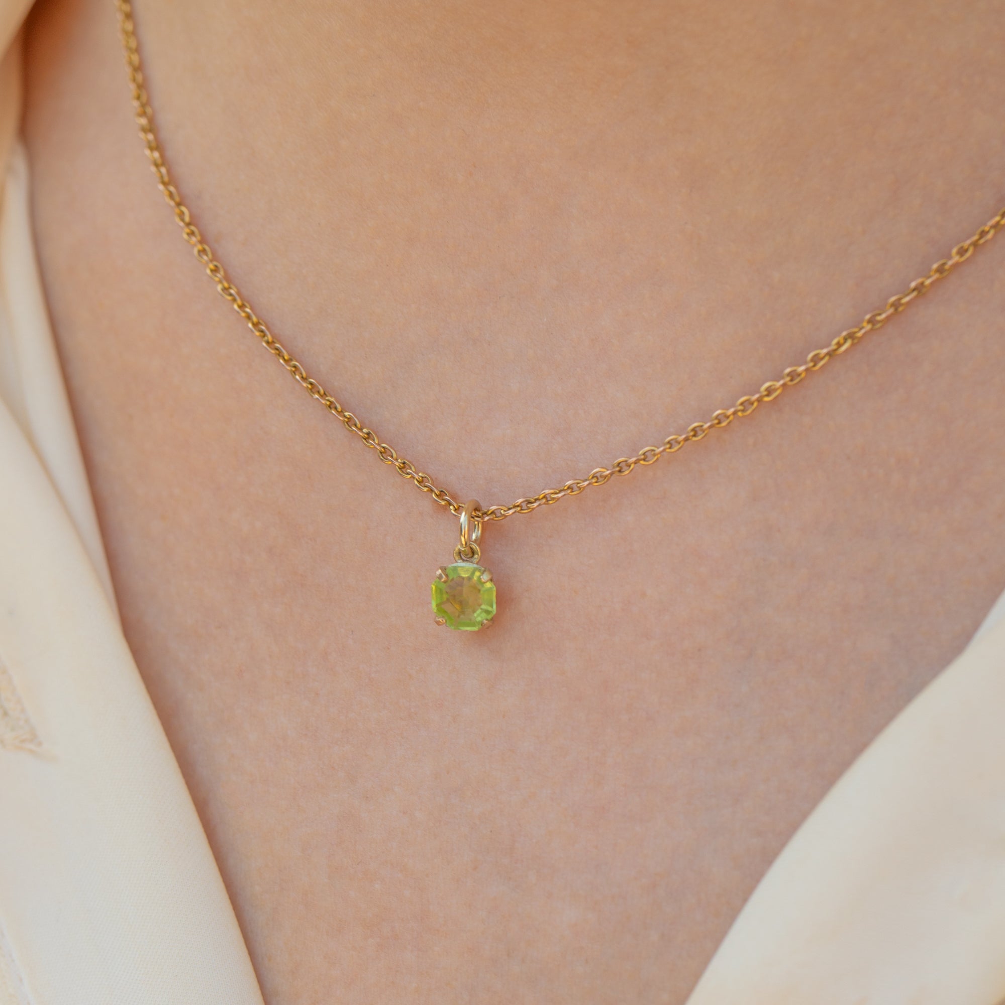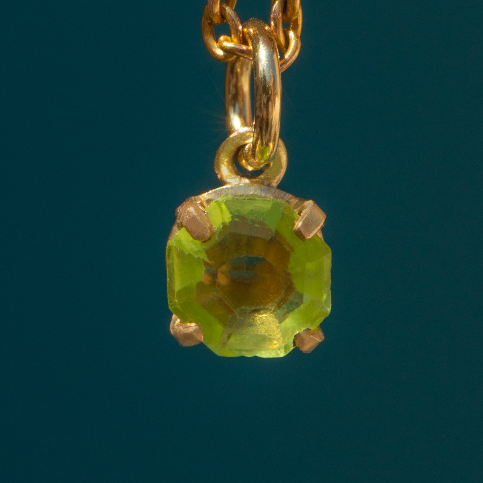 The dainty size of this Art Deco Peridot charm makes her a versatile piece, whether suspended from a split ring, charm bracelet or chain. Embraced by buttery 9ct Gold, this Art Deco Gold charm will provide the subtle splash of splendour you need!