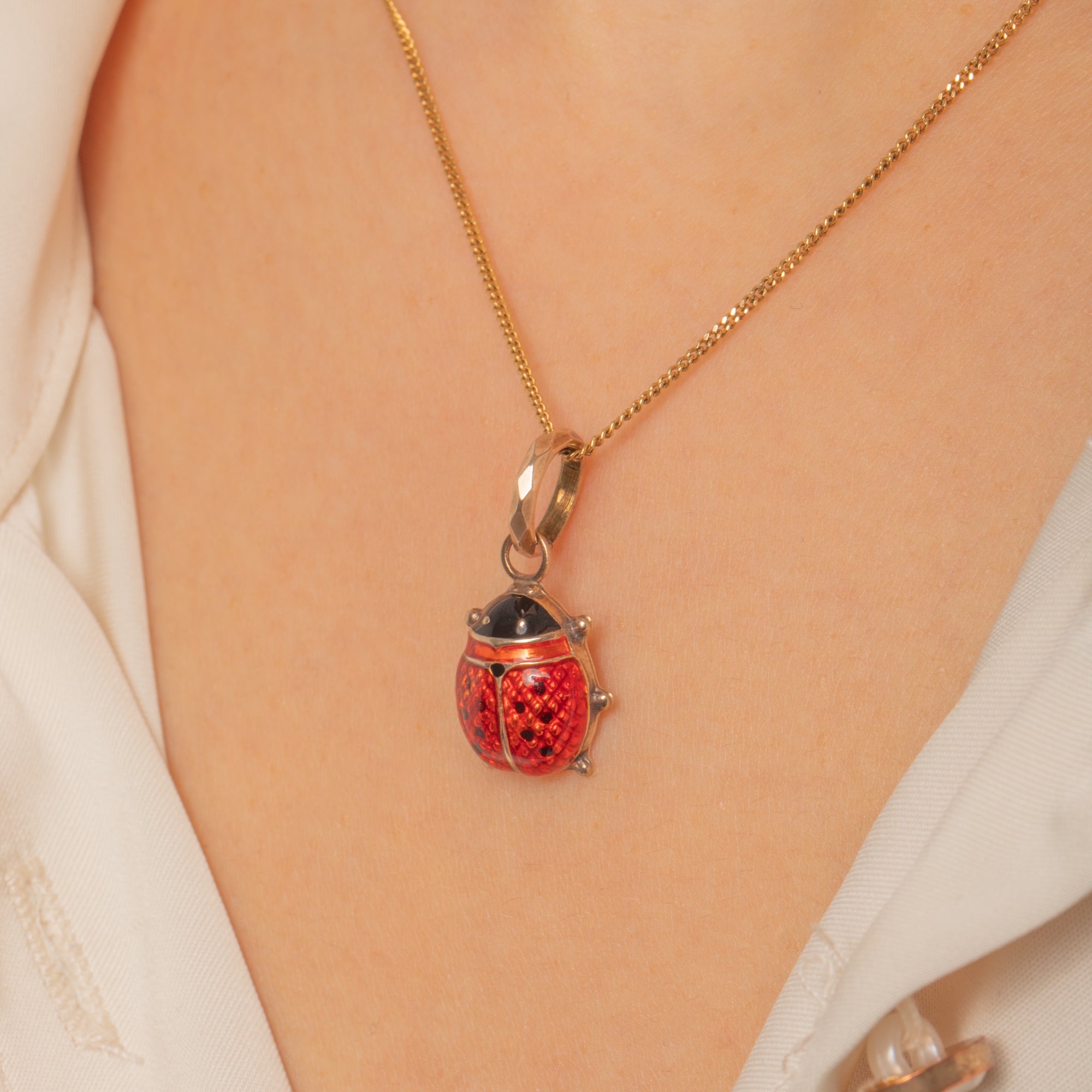 Compact and beautifully made, the three-dimensional body sits from a faceted oval bail, ready to add a joyful pop of colour to your favourite chain or charm bracelet. A timeless token of luck and love, it’s as delightful to wear as it is to collect.