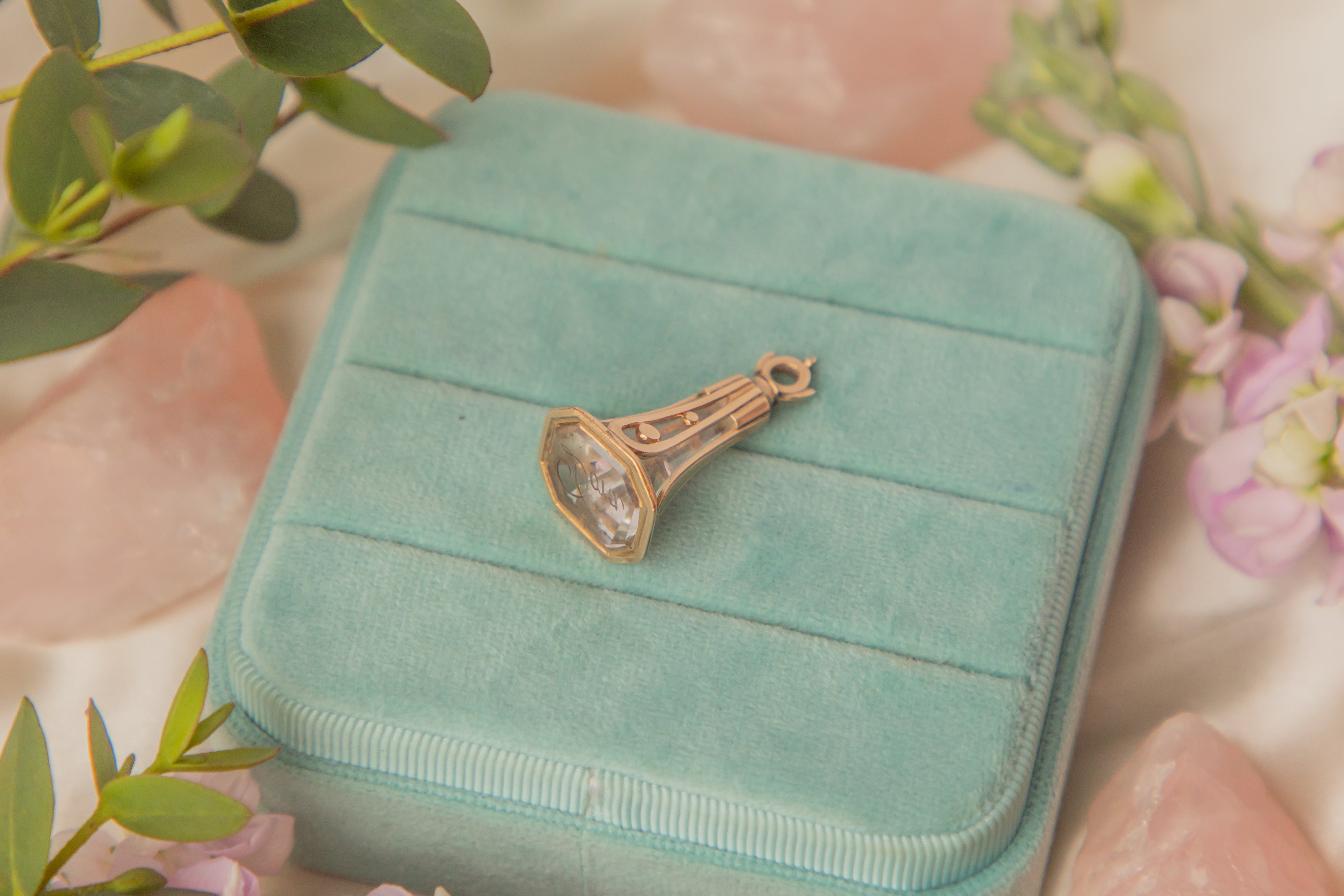 What is so unique about this particular seal pendant is that her Rock Crystal runs through the centre of her pilar ending at the base, allowing you to catch a glimpse of her from every angle. Initially belonging to someone named Dora, why not keep the tradition going and impress the recipient of your letters by wax-sealing them with this Victorian fob!