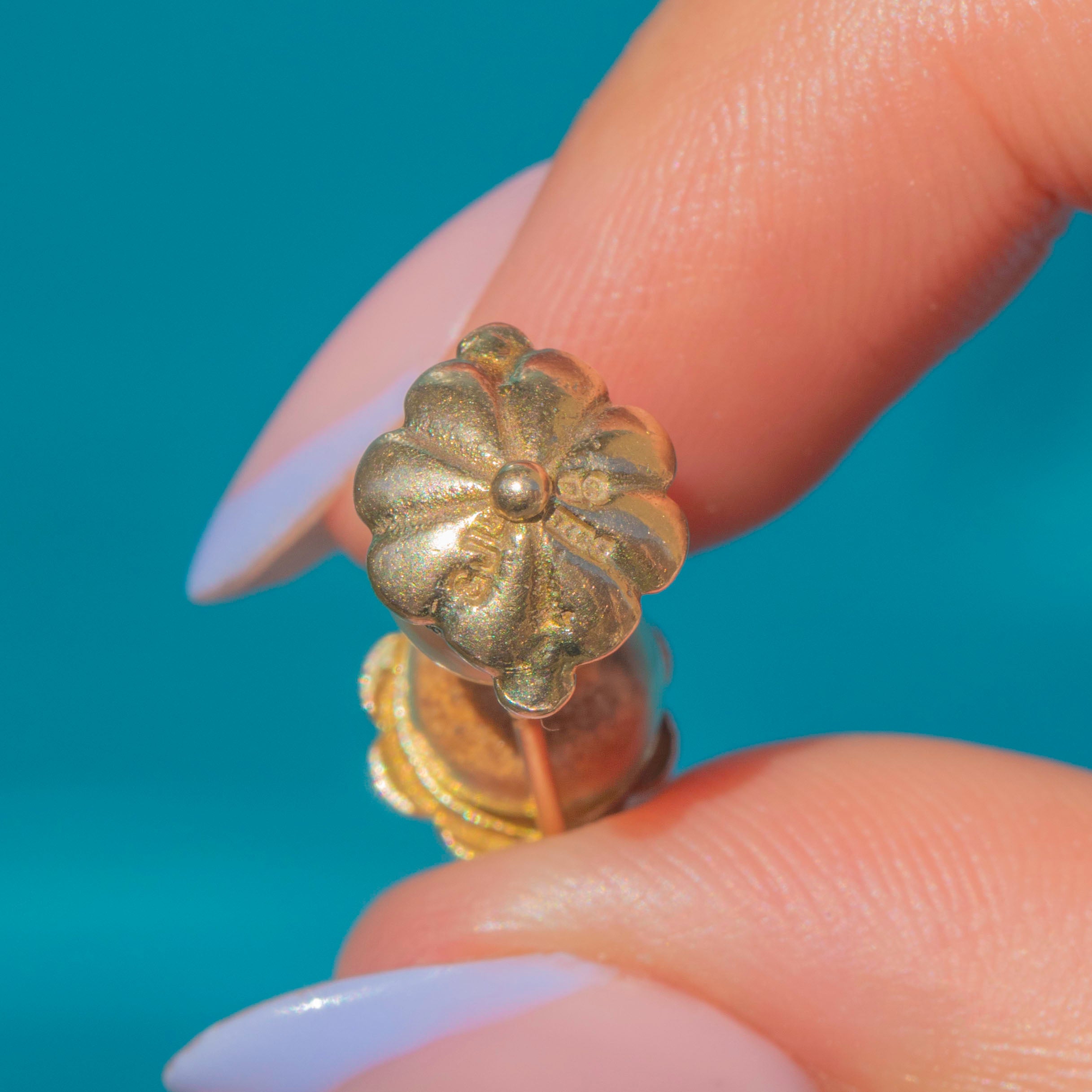 Crafted from buttery 9ct Gold, this petite sand timer is so charming! She is a testament to vintage craftsmanship, intricately detailed with pretty glossy settings. Complete with sand granules, this vintage charm is full of depth and is the perfect piece to suspend from a fine chain to add intrigue to your attire!