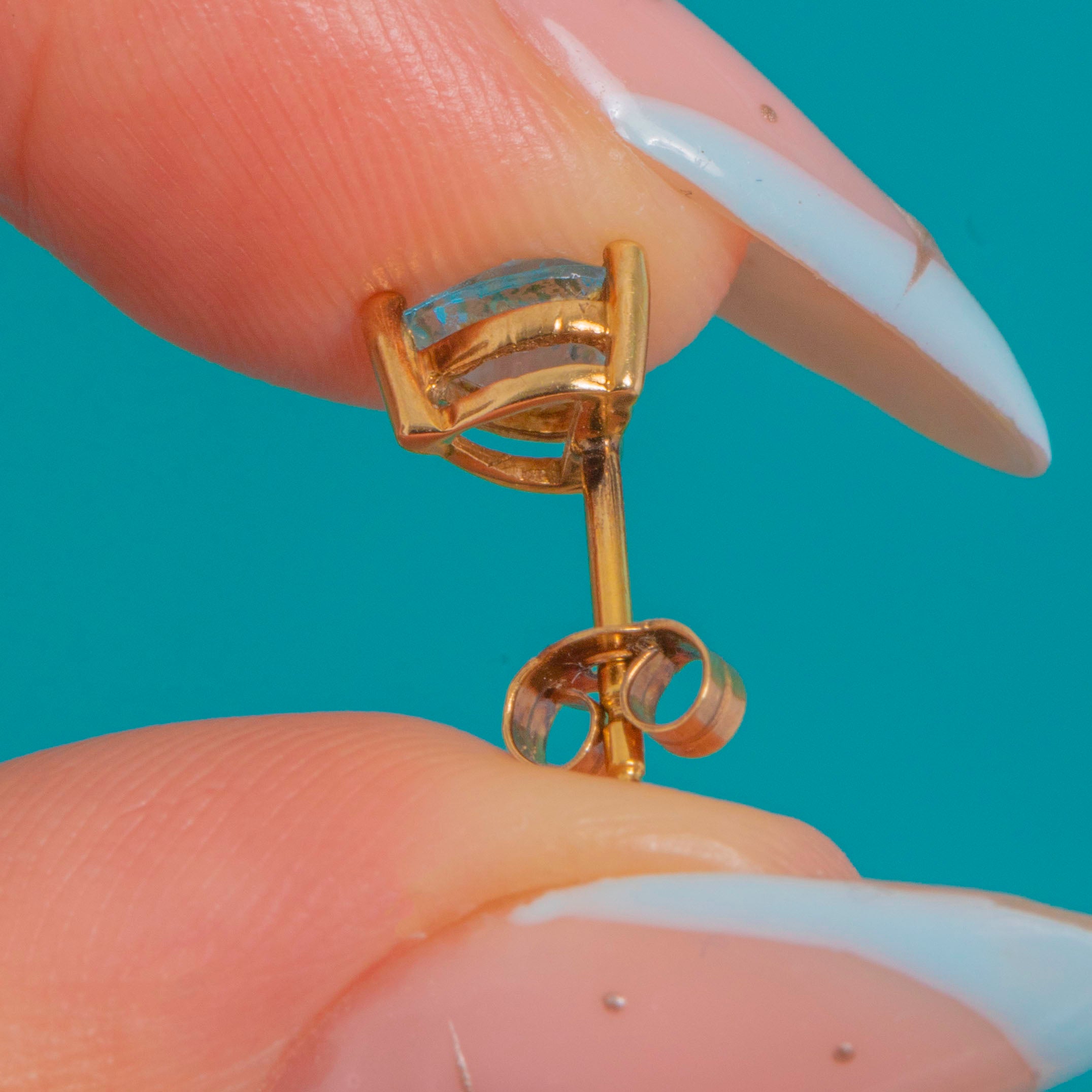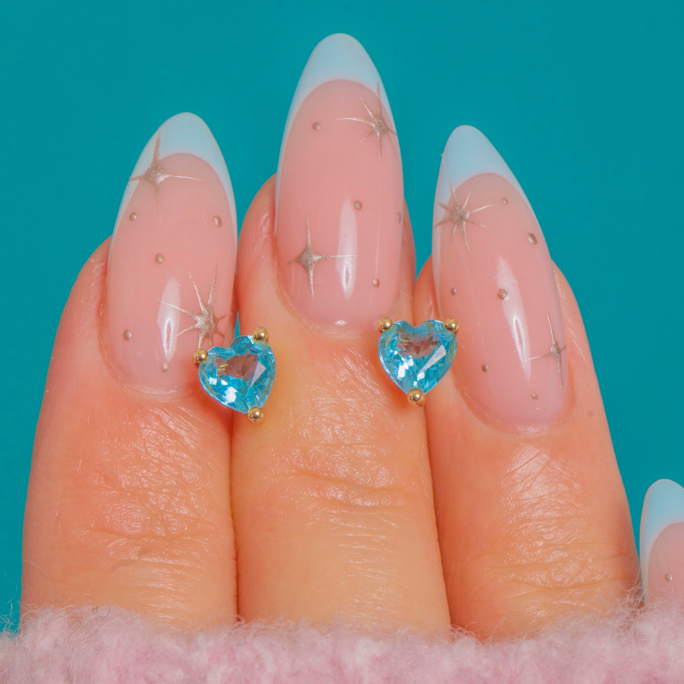 Sweet, simple and sparkling, these 9ct Gold heart stud earrings showcase luminous sky-blue Blue Topaz in a clean three-claw setting. The heart cuts catch the light beautifully, delivering that fresh, watery glow Blue Topaz is loved for while keeping the silhouette refined and romantic.