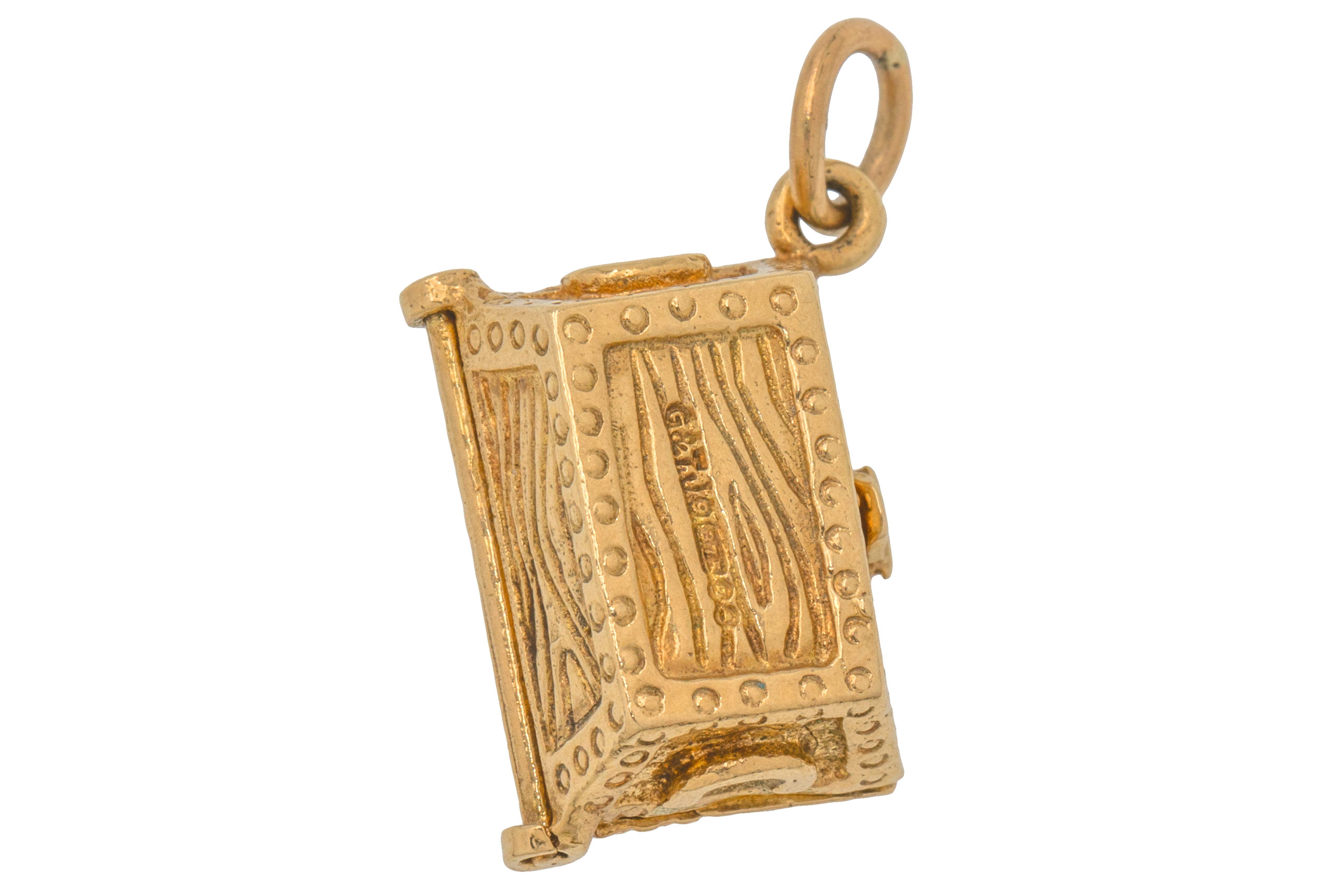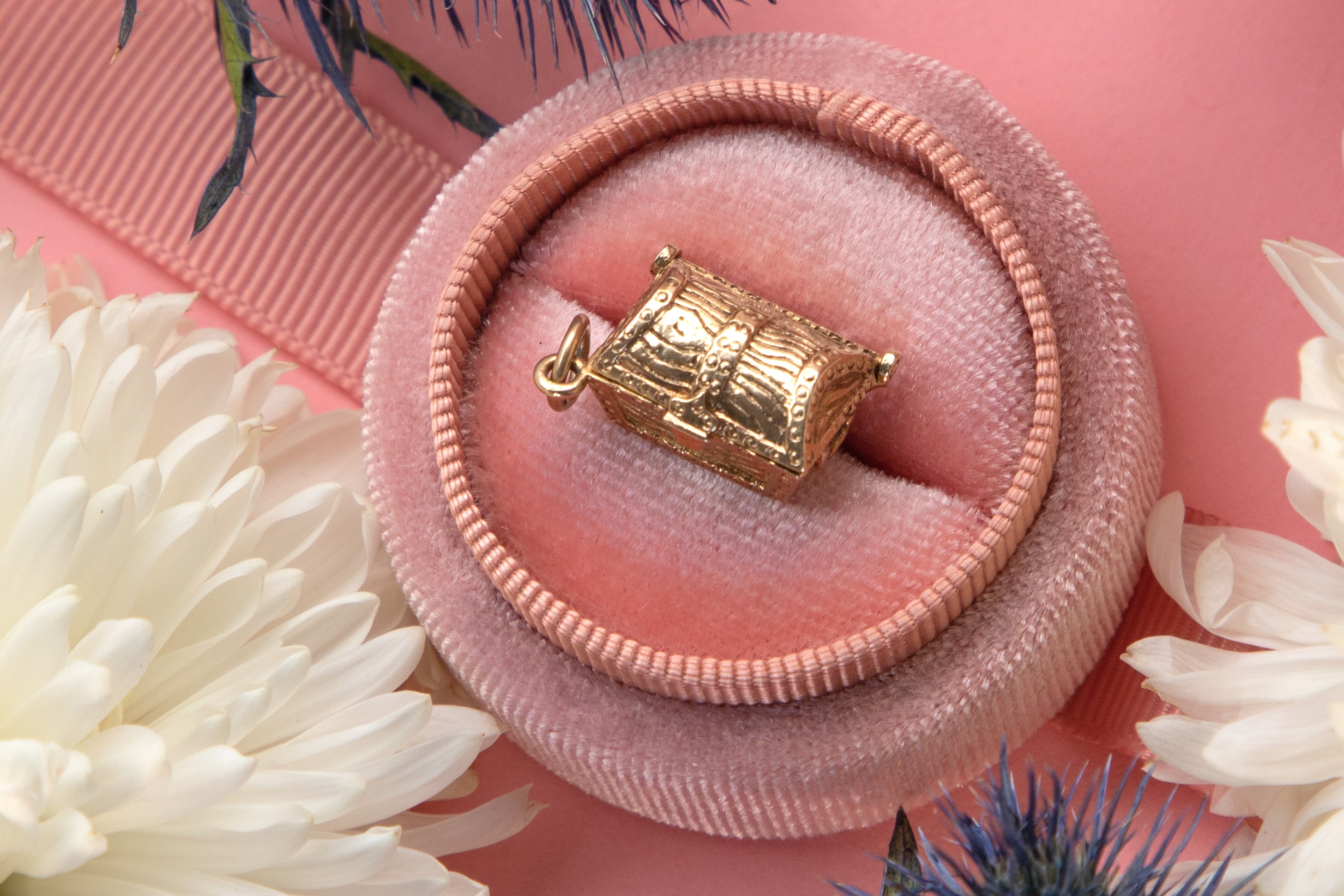 EXCELLENT: This 9ct Gold treasure chest charm is in excellent condition! All engravings are crisp and the 9ct Gold is buttery and bright. The hinge is fully functioning with the treasure chest shutting with a powerful "click"! With little to report, this vintage charm is just wonderful.