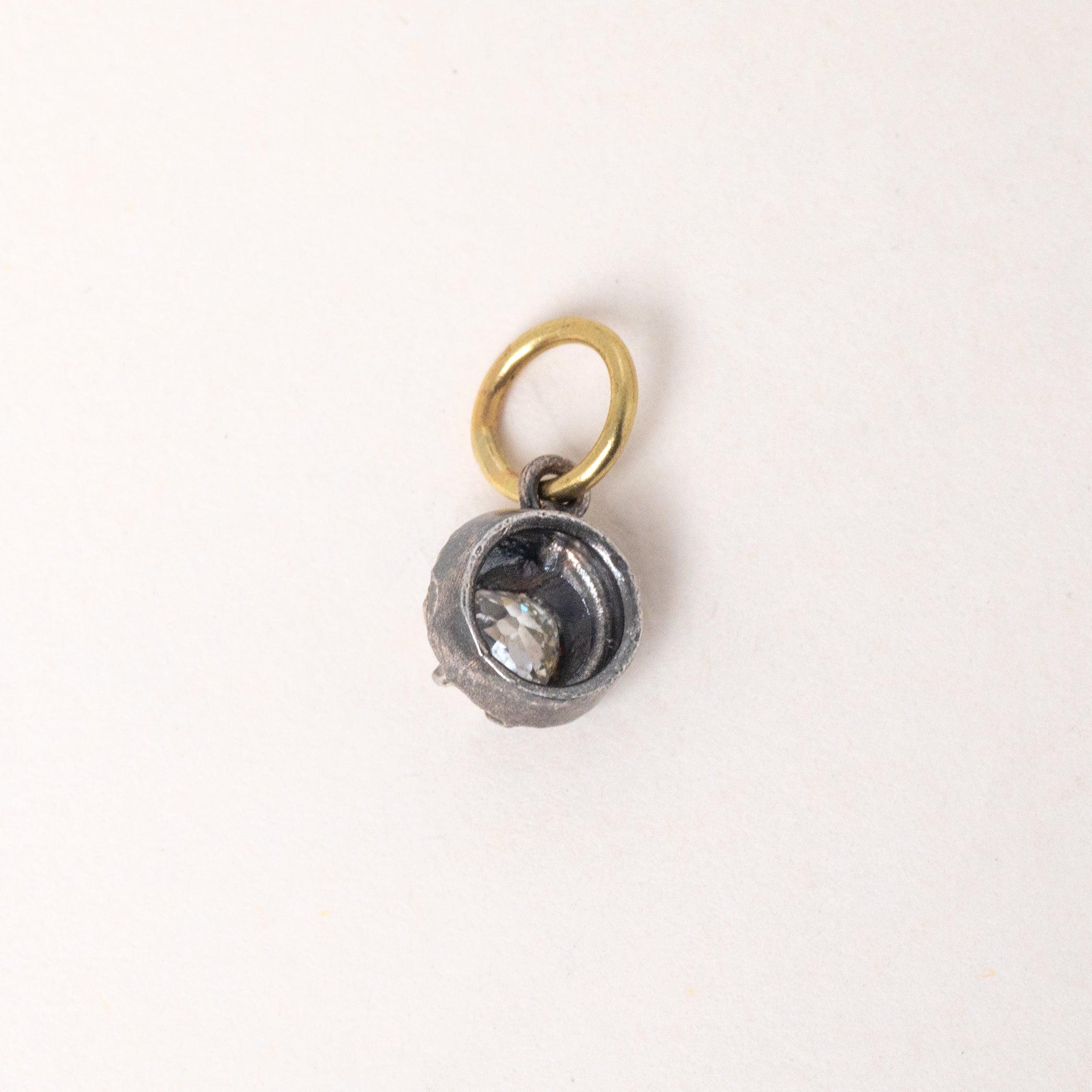 MATERIALS: Tests as Sterling Silver settings with 18ct Gold jump ring, Old-mine cut Diamond (0.10ct).