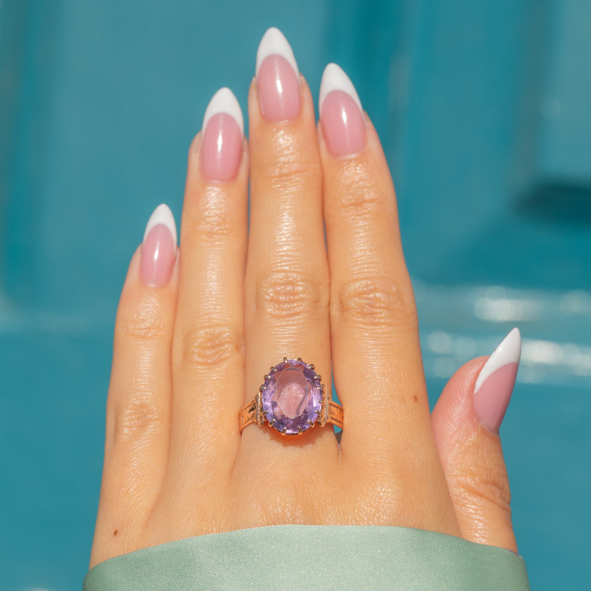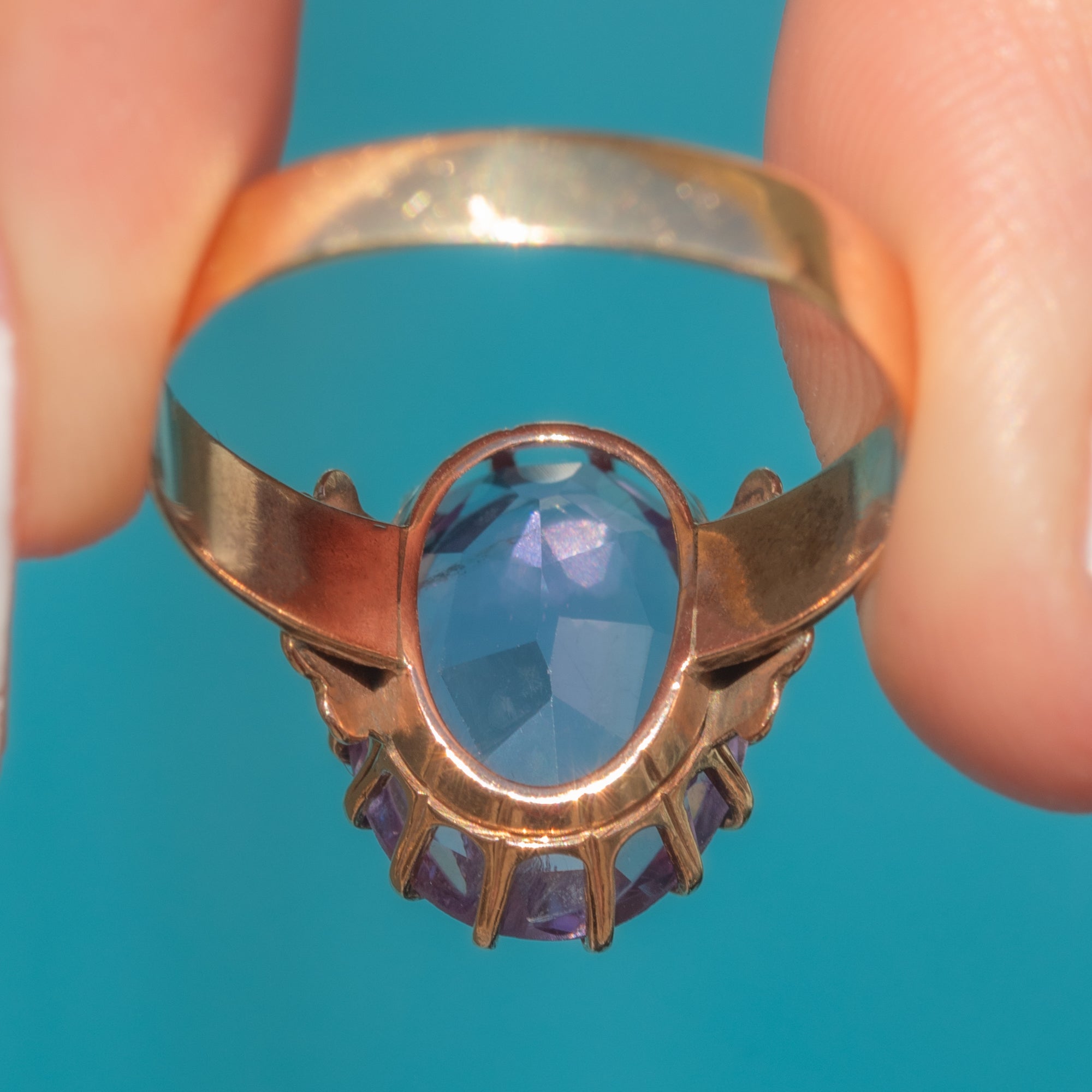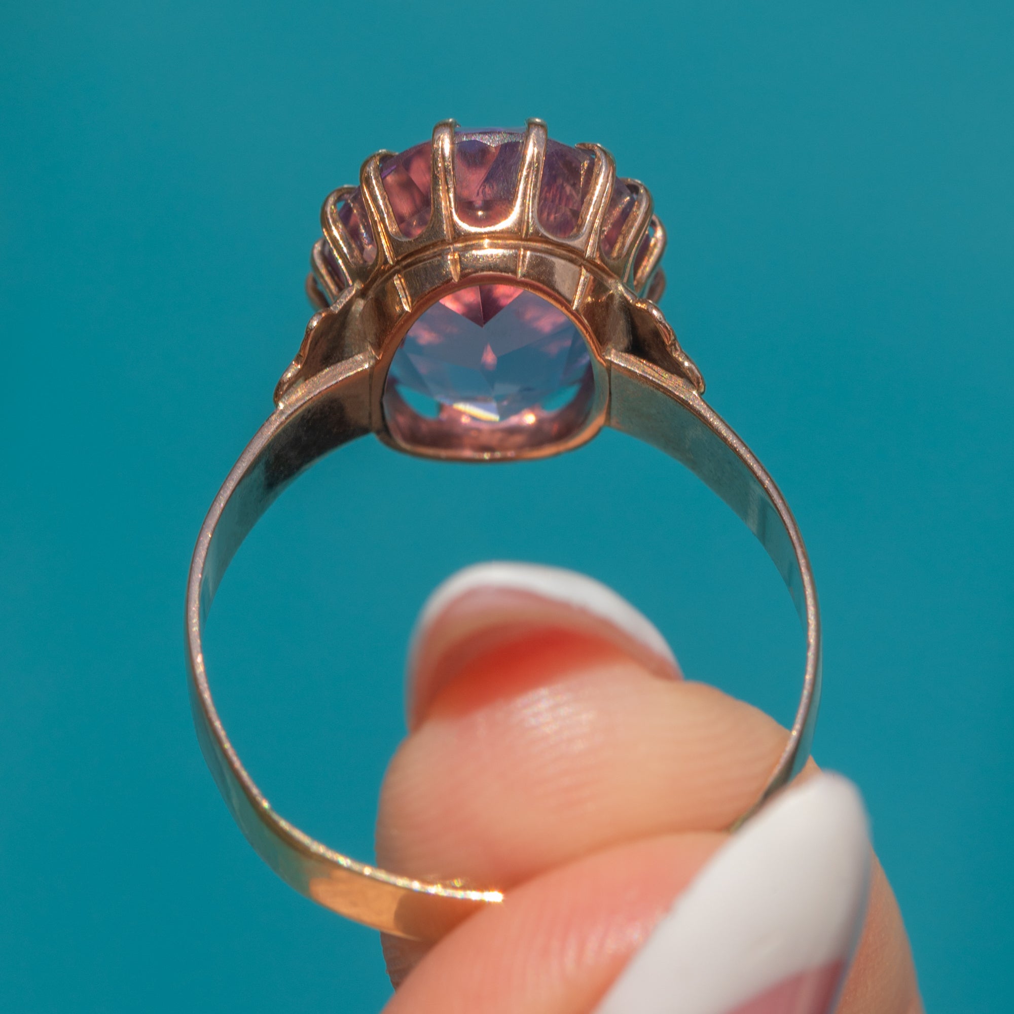 VERY GOOD: The Amethyst is securely set and is free from chips or abrasions. Her 14ct Gold is rich and luxurious, and although there is some light discolouration on the back of the shank and a visible resize mark, where new Gold has been added to size up the ring, this is not visible while being worn and does not detract from her beauty. You can wear this phenomenal antique Amethyst ring with confidence from day to night!