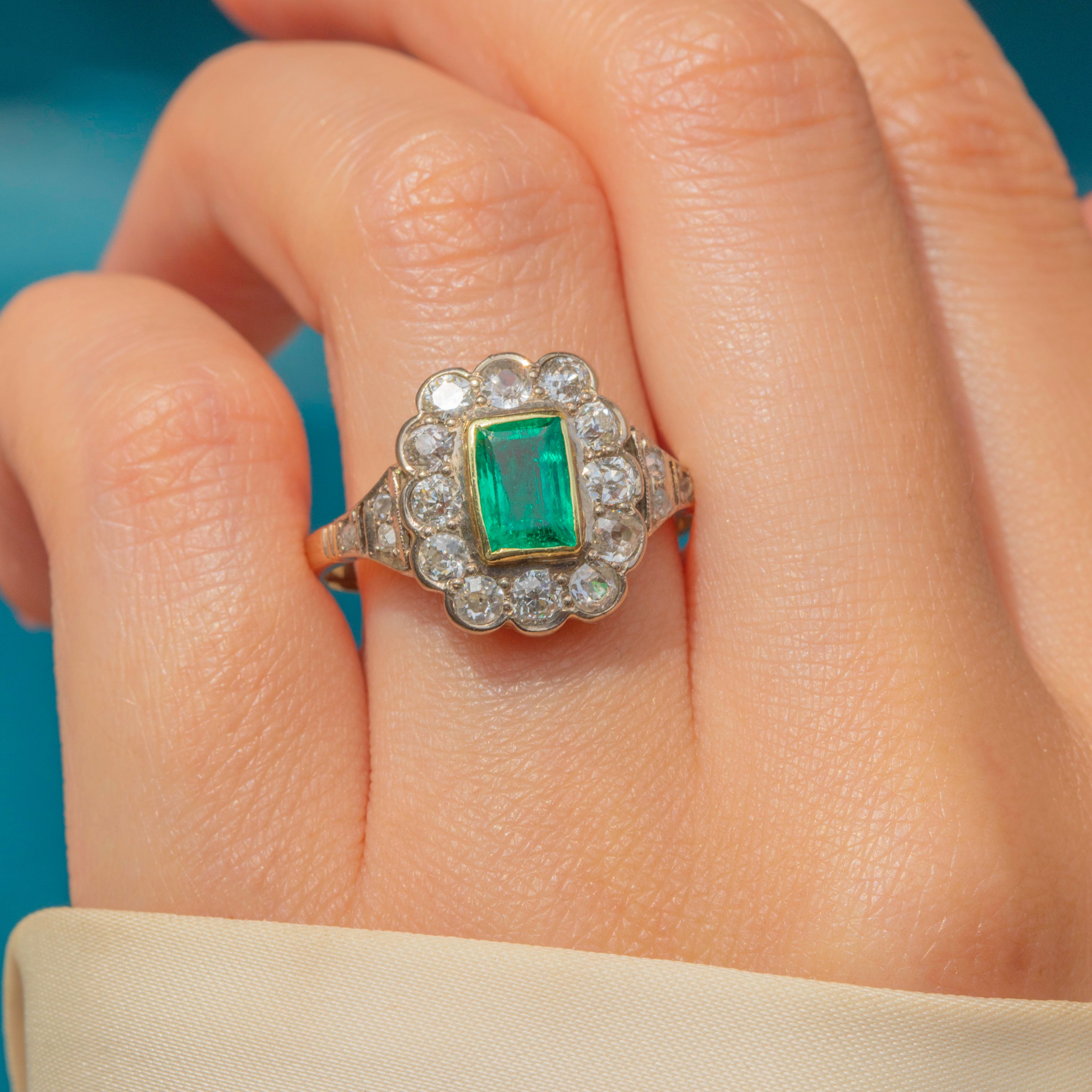 Antique 14ct Gold Emerald Diamond Cluster Ring, 0.70ct Emerald Item added