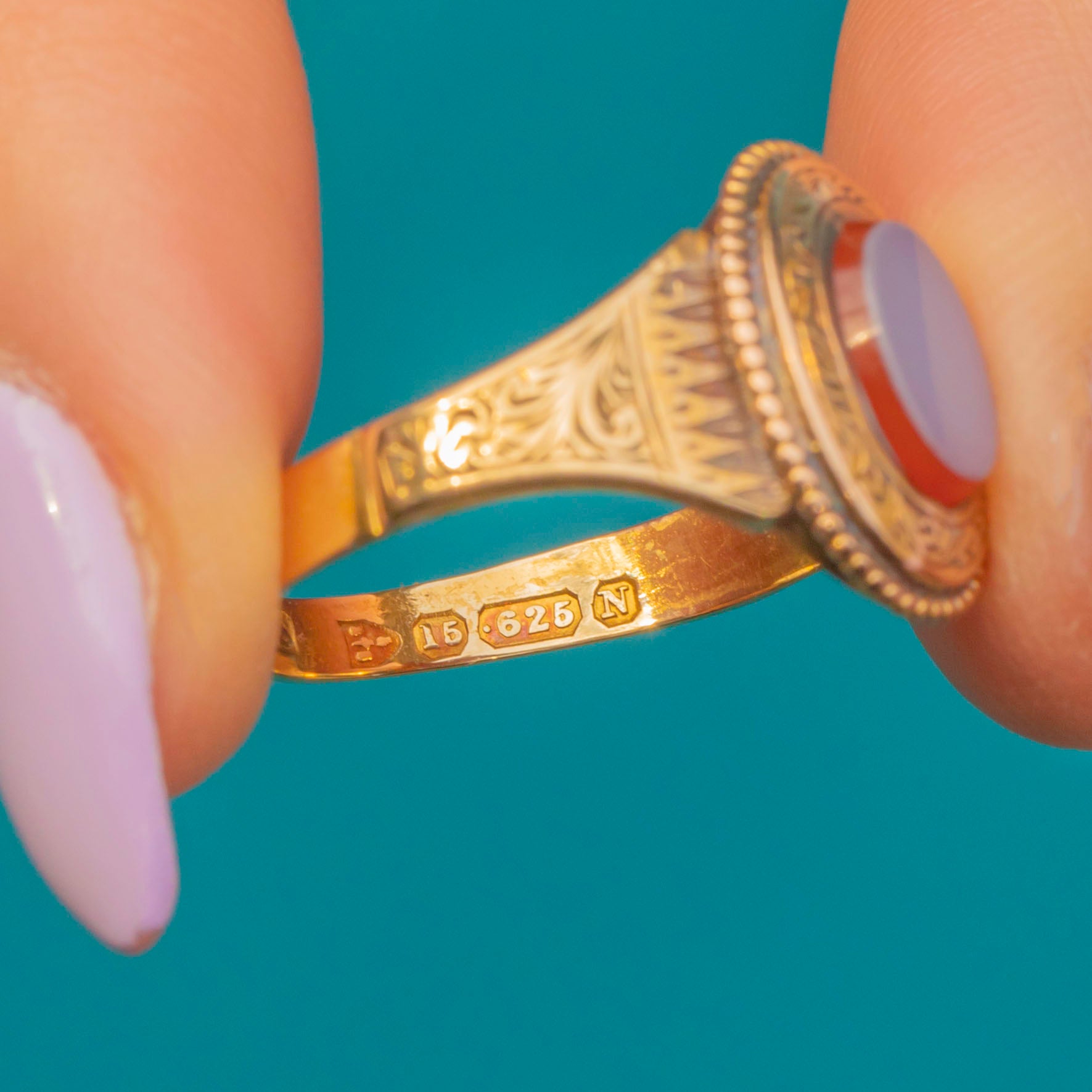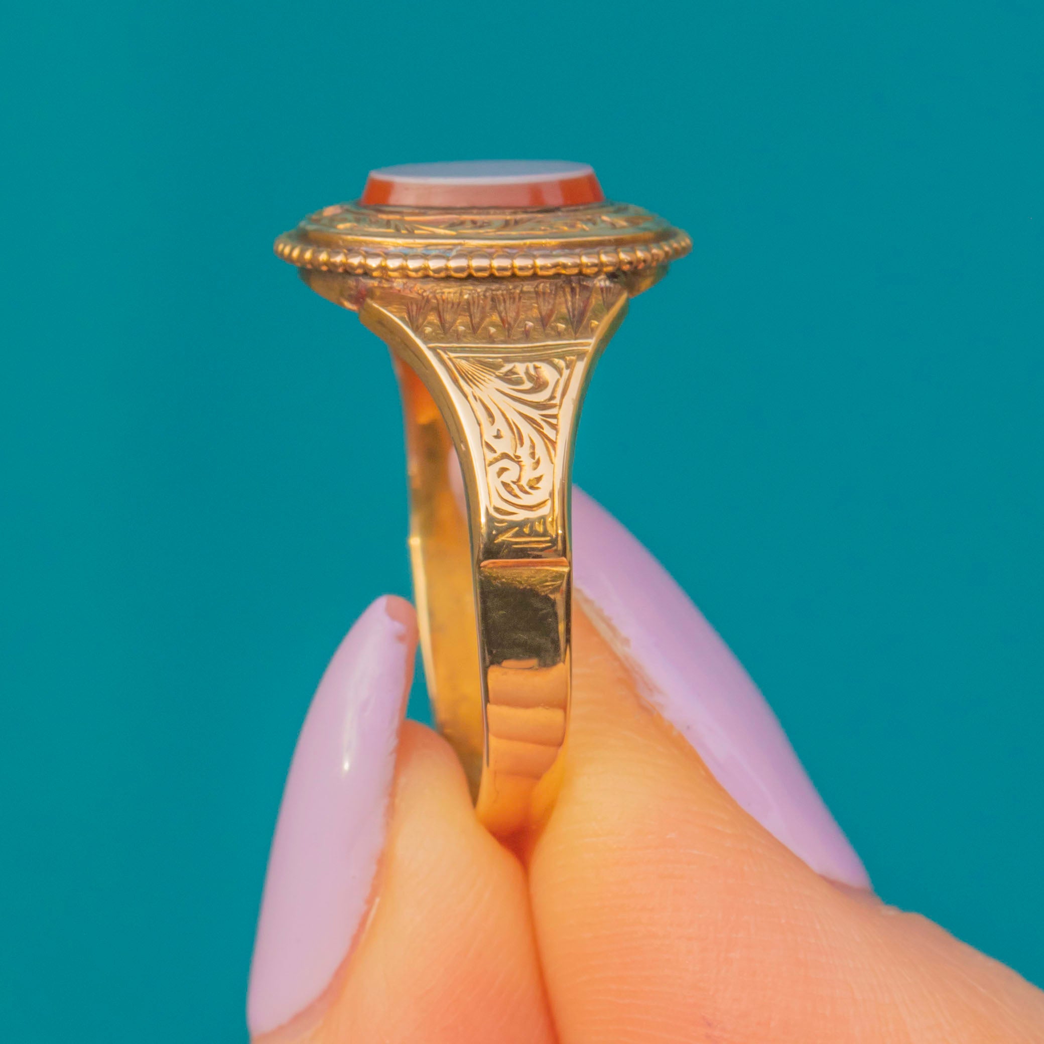 Antique 15ct Gold Engraved Sardonyx Signet Ring, c.1896