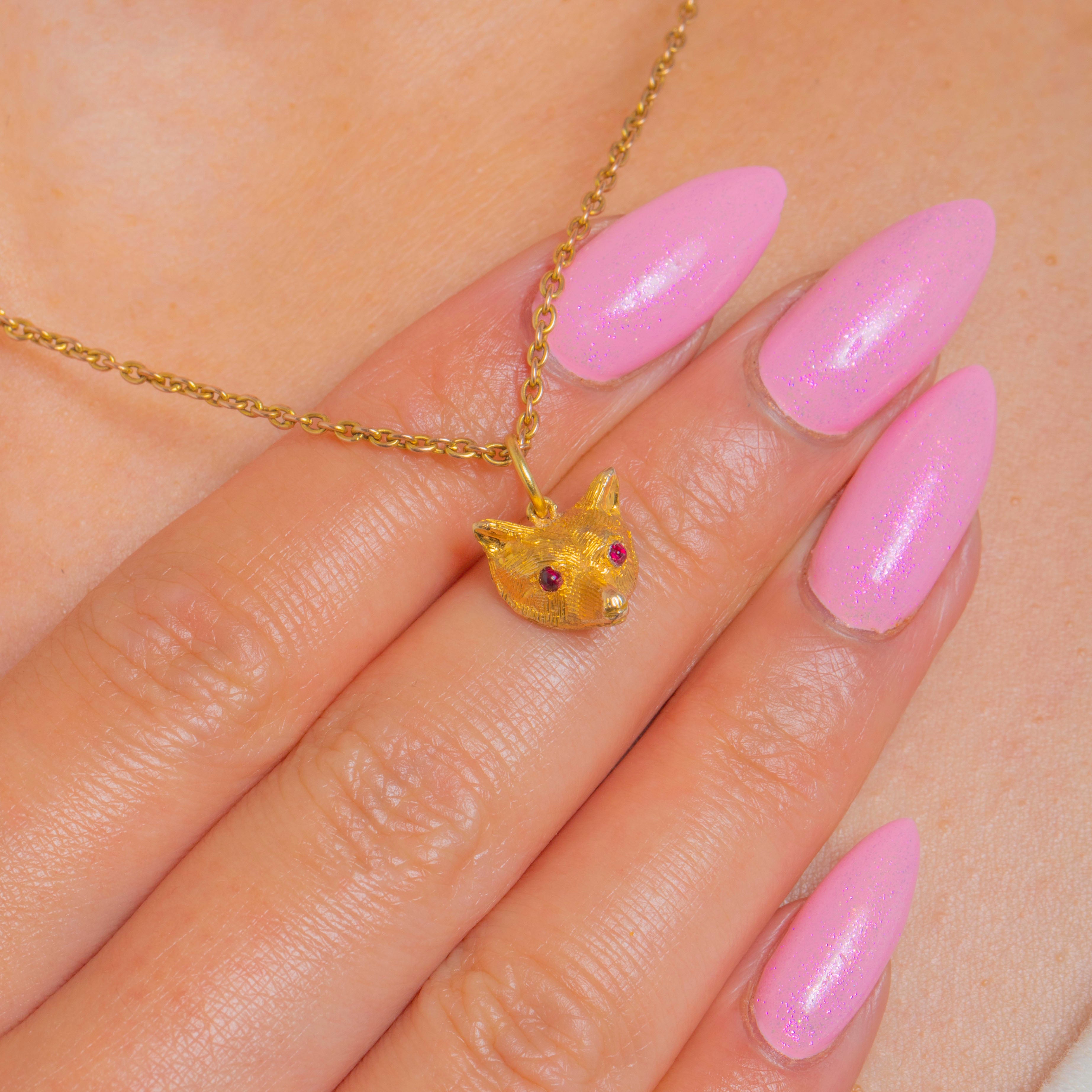 VERY GOOD-EXCELLENT: The Ruby cabochon eyes are secure and show no noticeable wear. The Gold displays light surface wear commensurate with age, with crisp fur detailing retained. There is evidence on the reverse of a past conversion, which has been carried out well and the later added jump ring is secure.