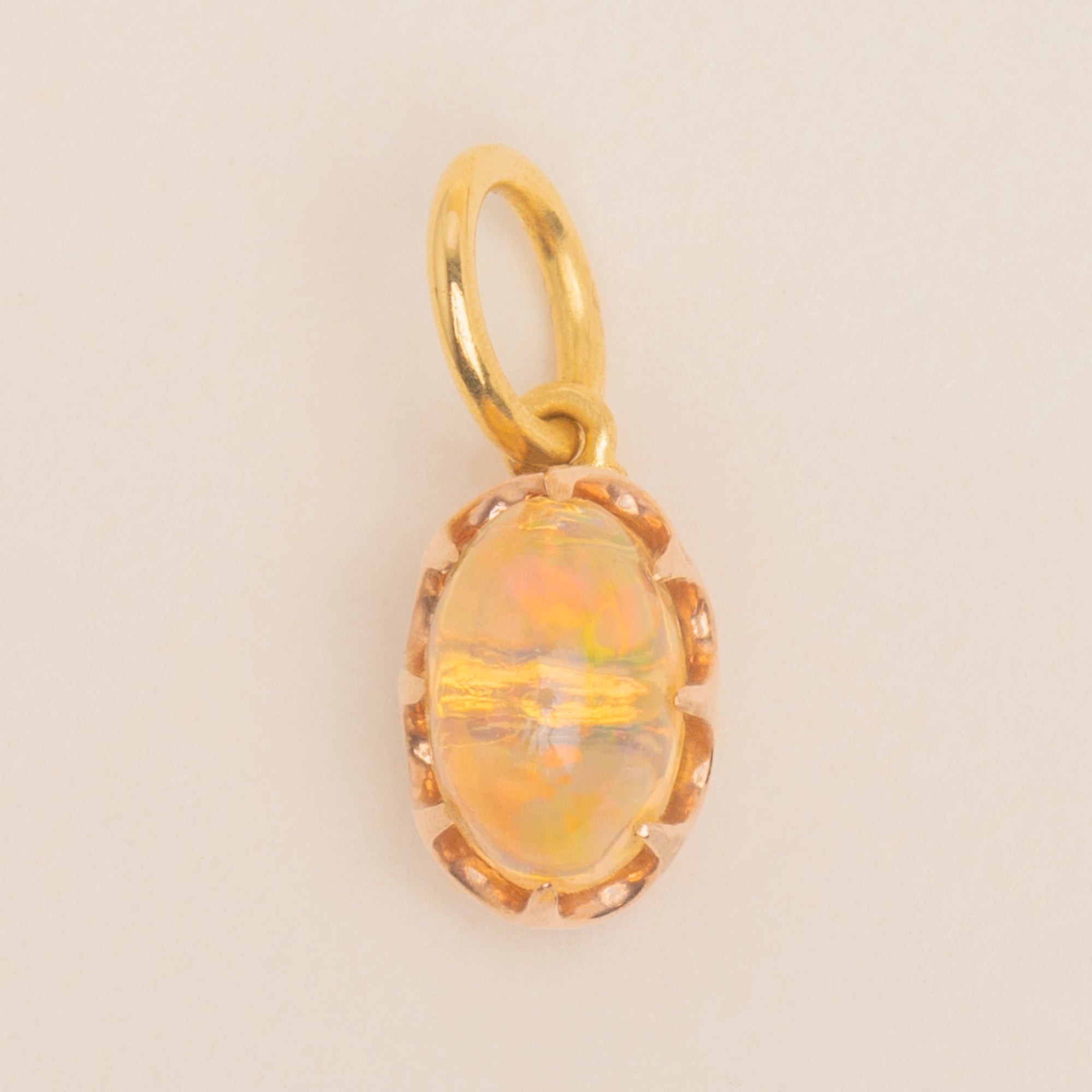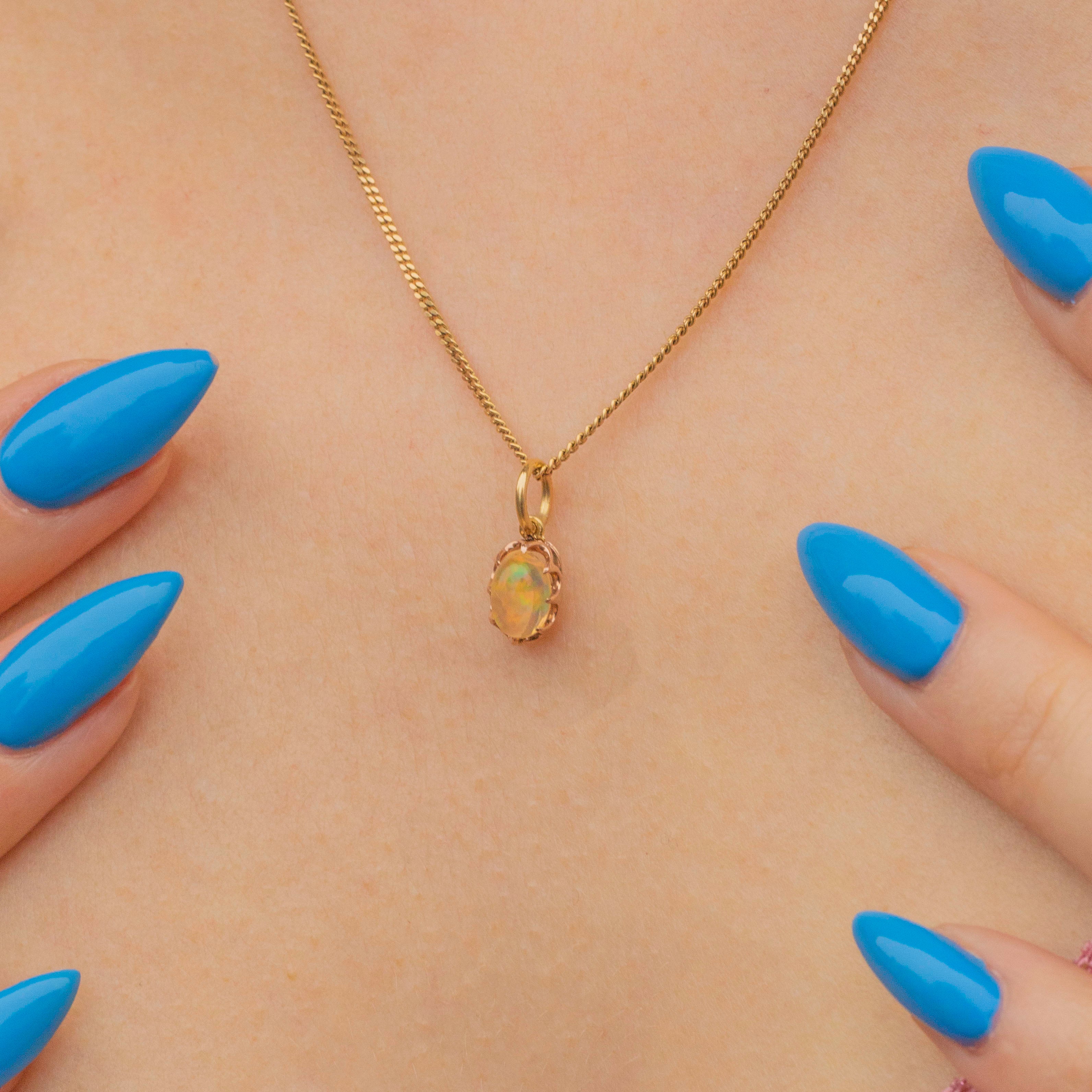 Classically Victorian, her Jelly Opal sits nestled in characterful 15ct Gold claw settings. She will look a vision adorning any charm bracelet, dog clip or slender Gold chain. No matter how you choose to style this little Victorian Opal charm, she is sure to pack a punch!