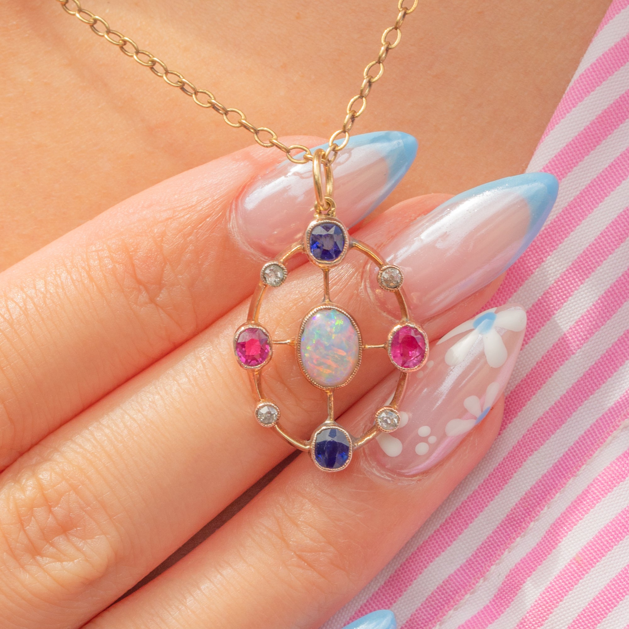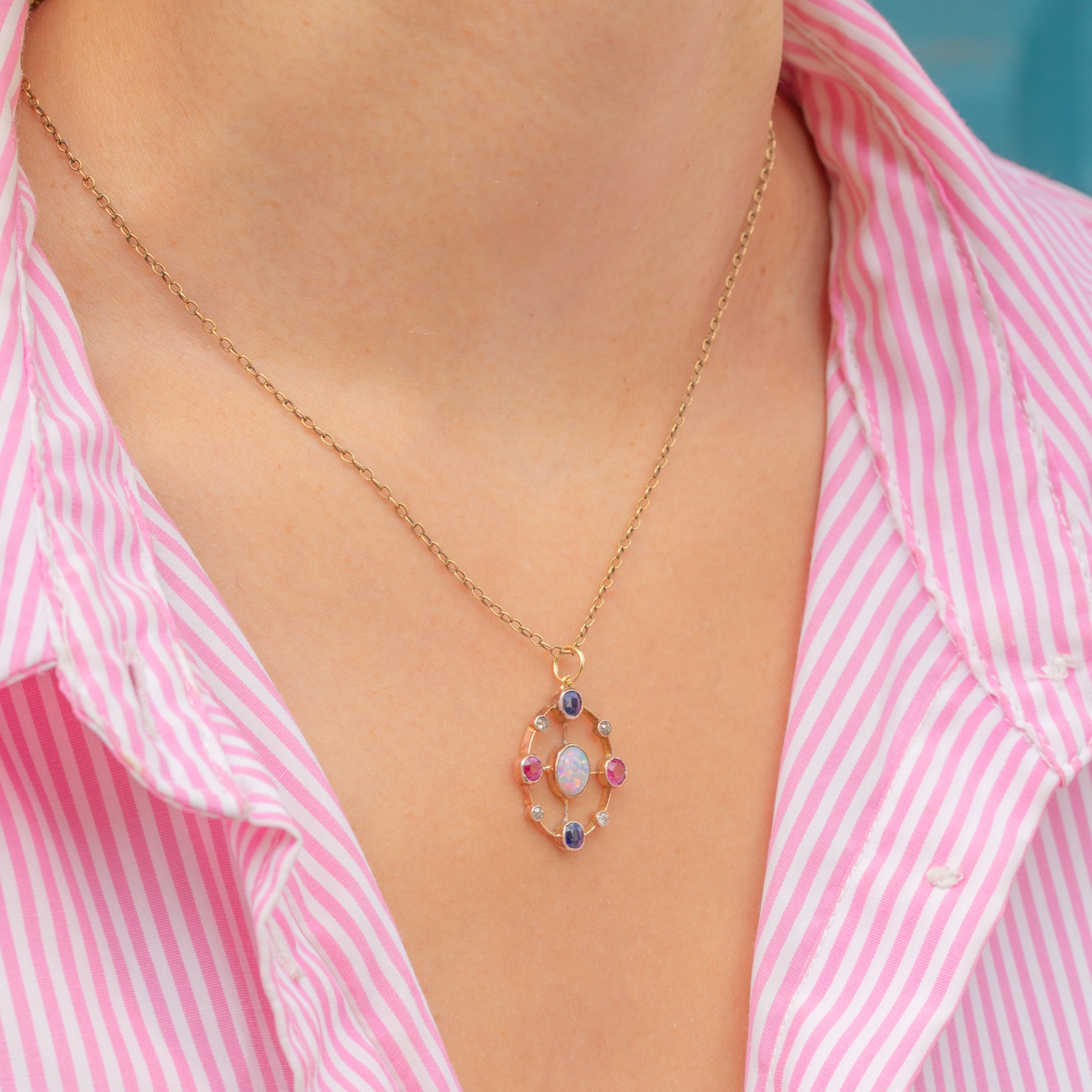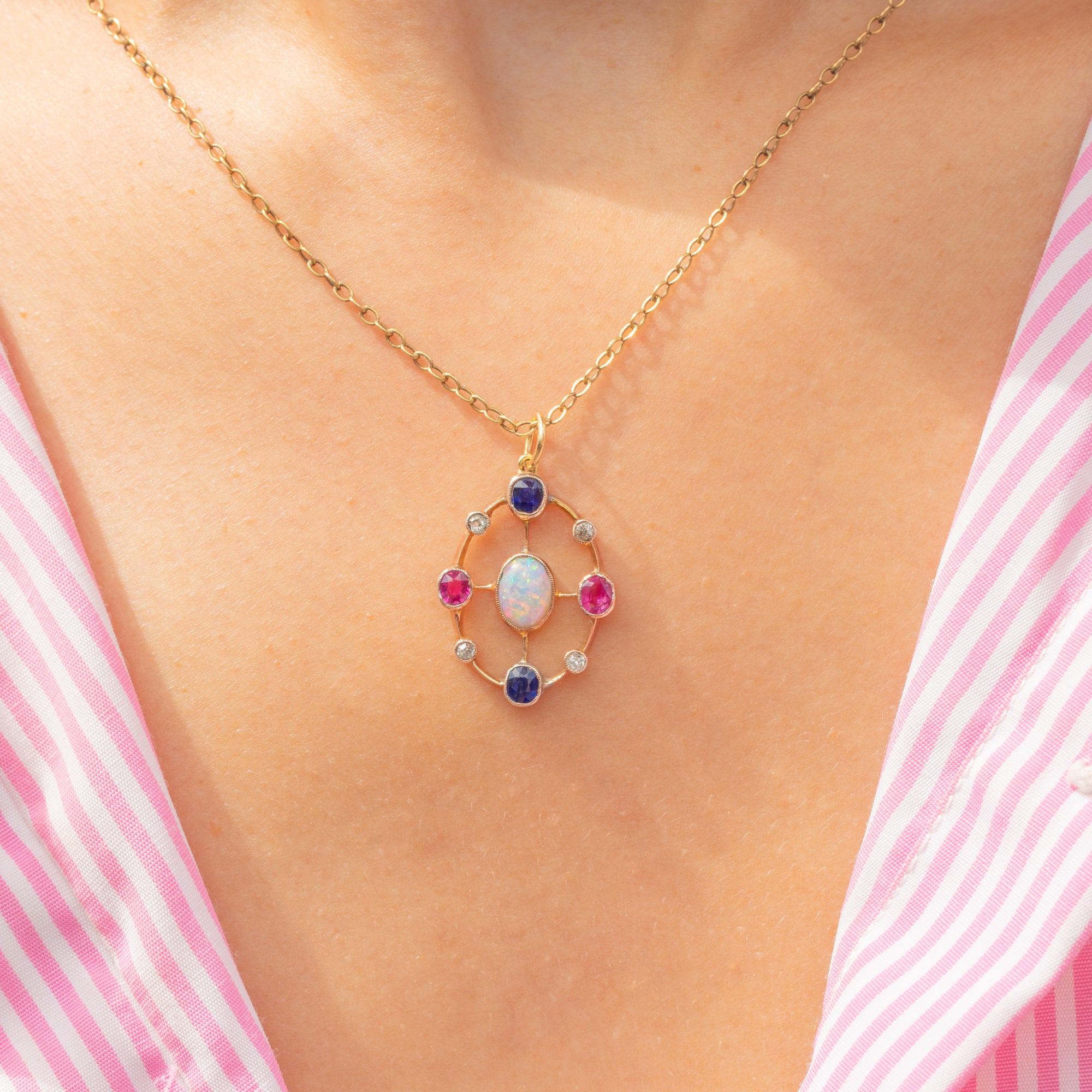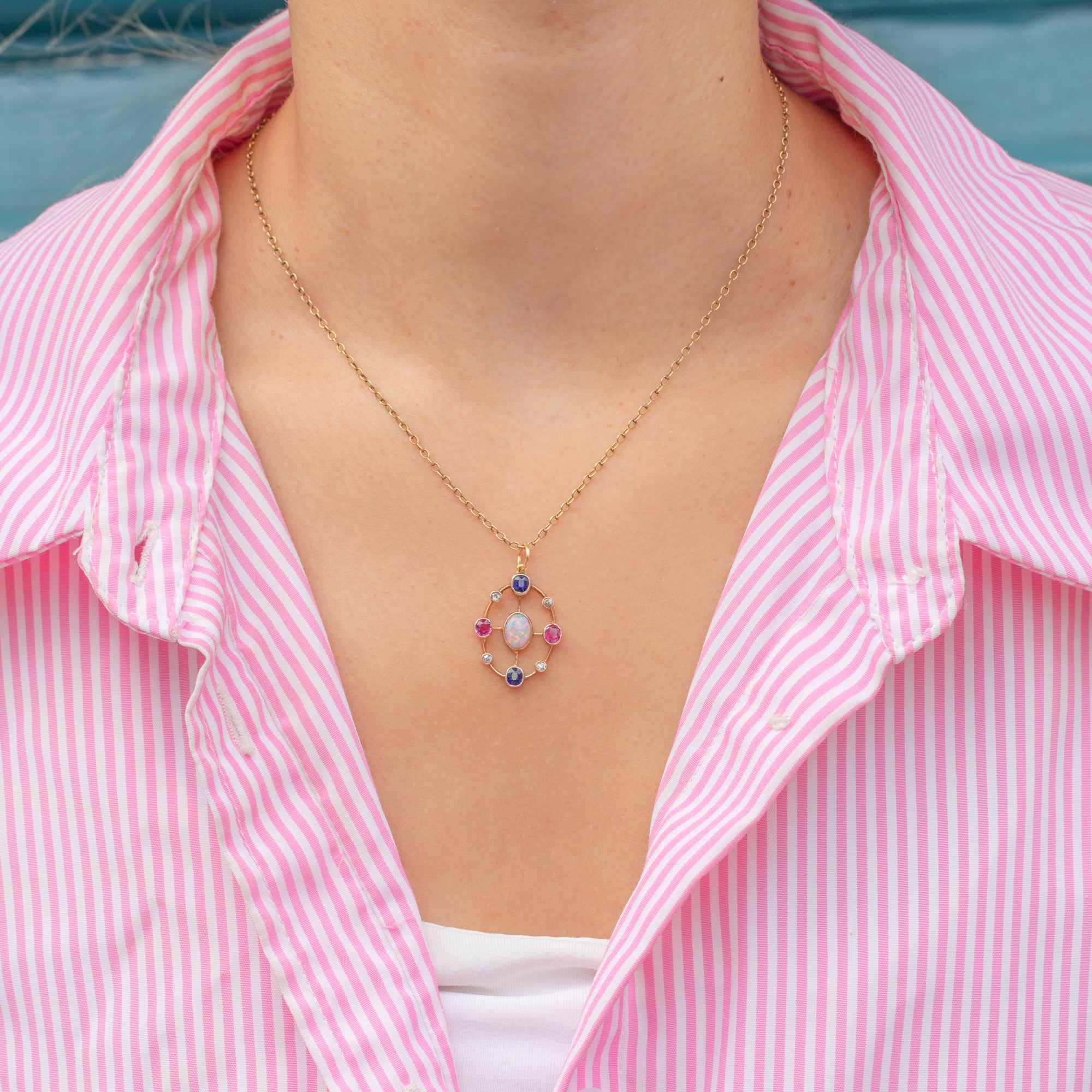 Antique 15ct Gold Opal Ruby Sapphire Pendant