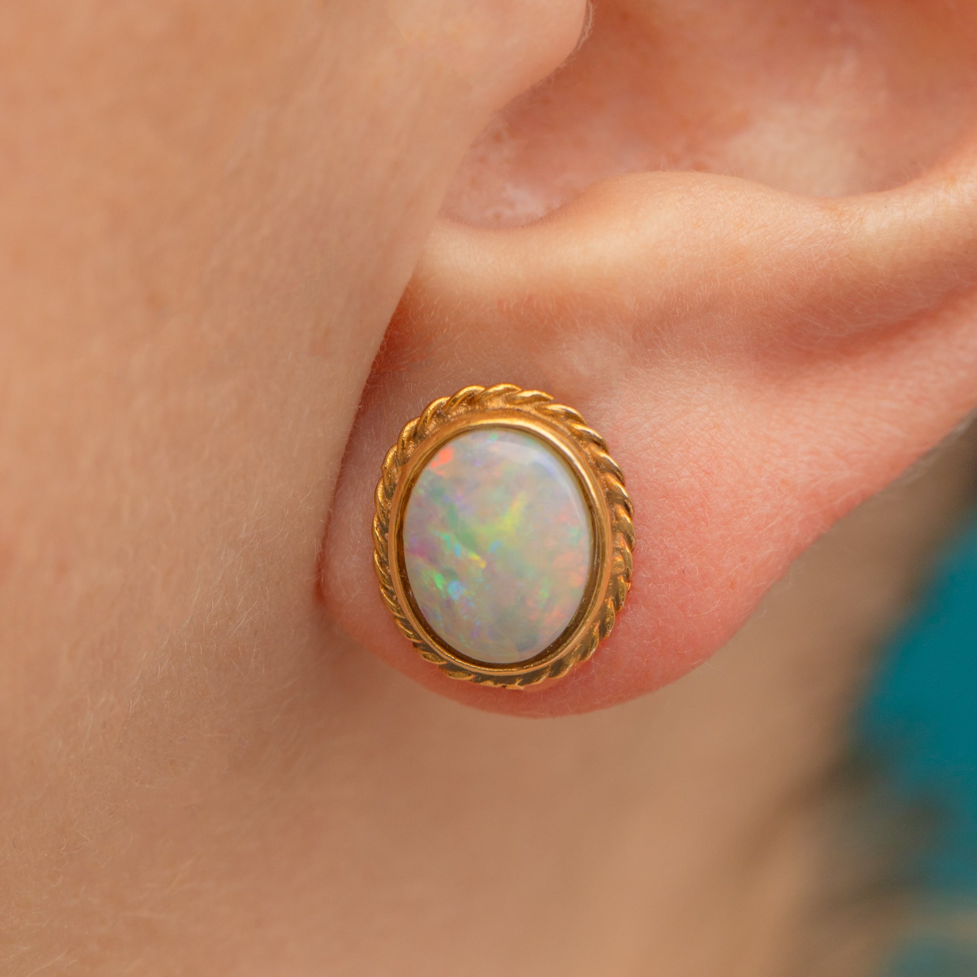 Opals are 10mm long x 8mm wide, approx 2.70ct combined.