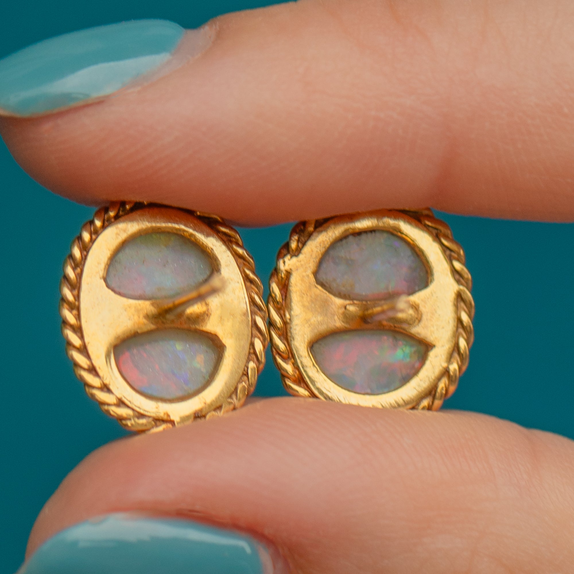 Light dances gracefully across each of the Opal's surfaces, creating a sublime vision of electric oranges, pastel blues, and glimmers of yellow. Put simply, these vintage Gold Opal earrings are a feast for the eyes!