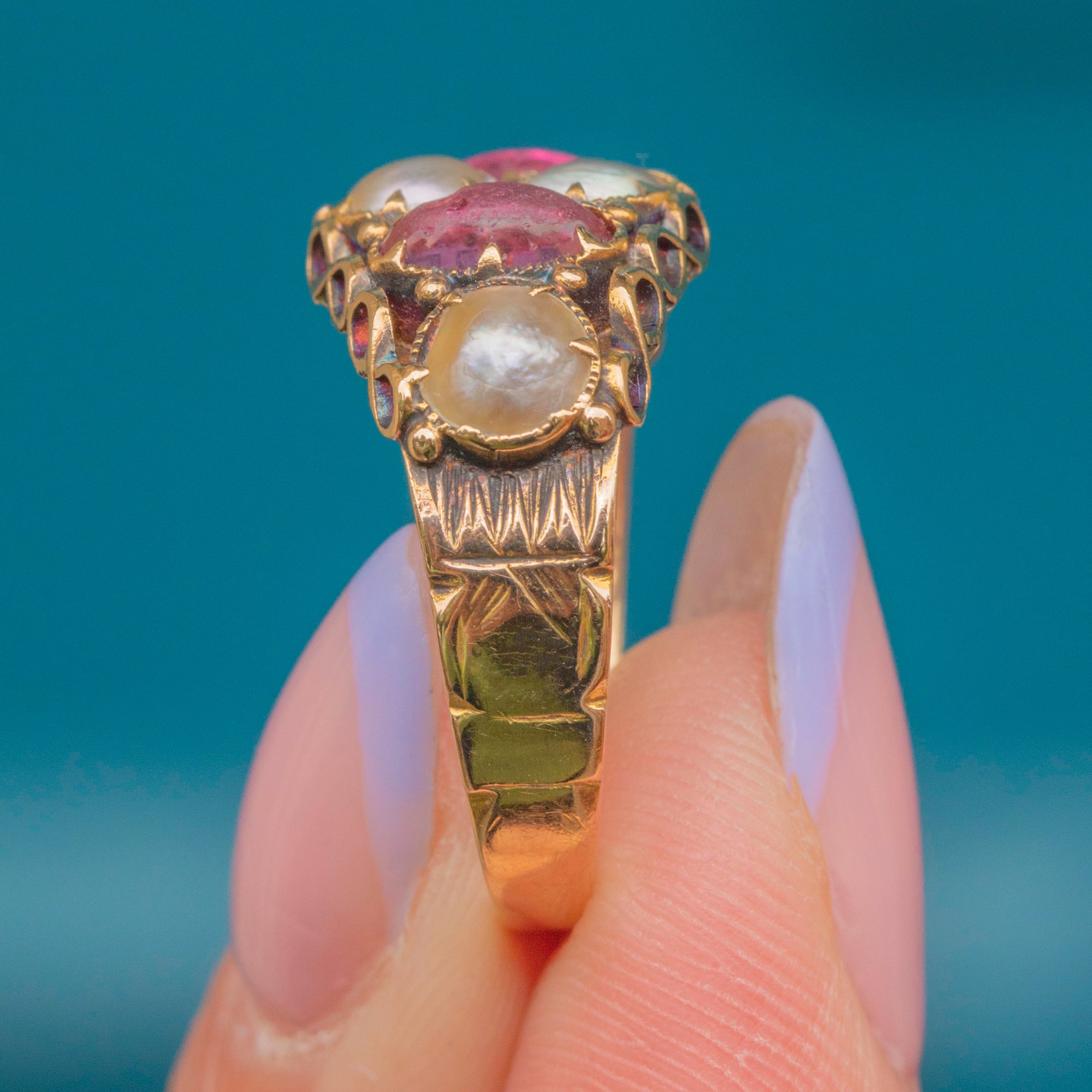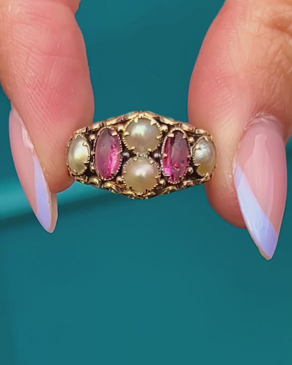 This antique 15ct Gold pink Paste Pearl cluster ring is a fabulous piece from the Victorian era!