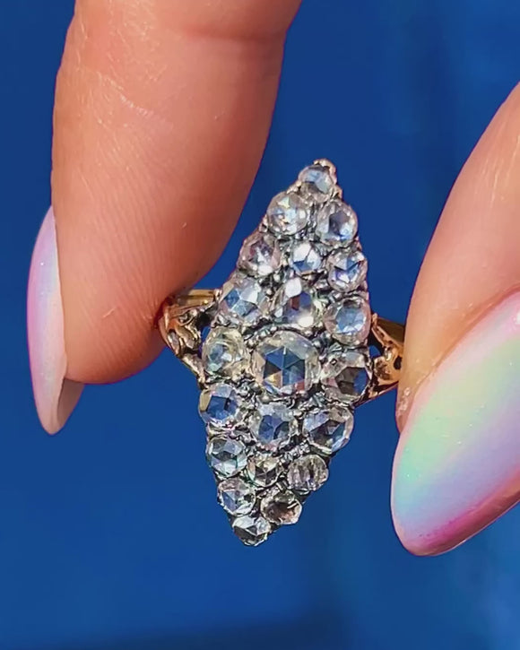 Antique 15ct Gold Rose-Cut Diamond Navette Ring 1.80ct