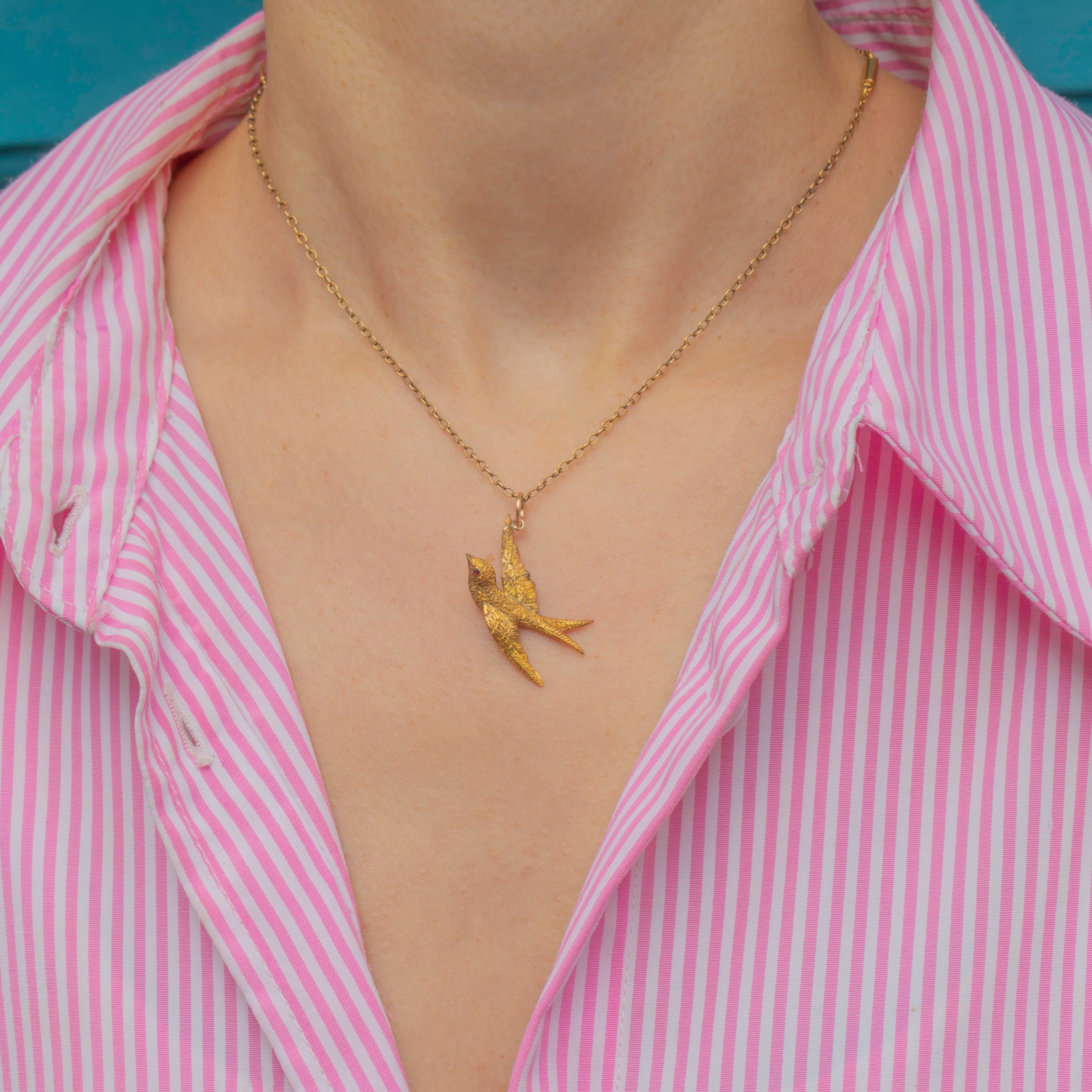 A quintessentially Victorian motif, this 15ct Gold swallow pendant radiates antique charm and is a must-have for your collection!