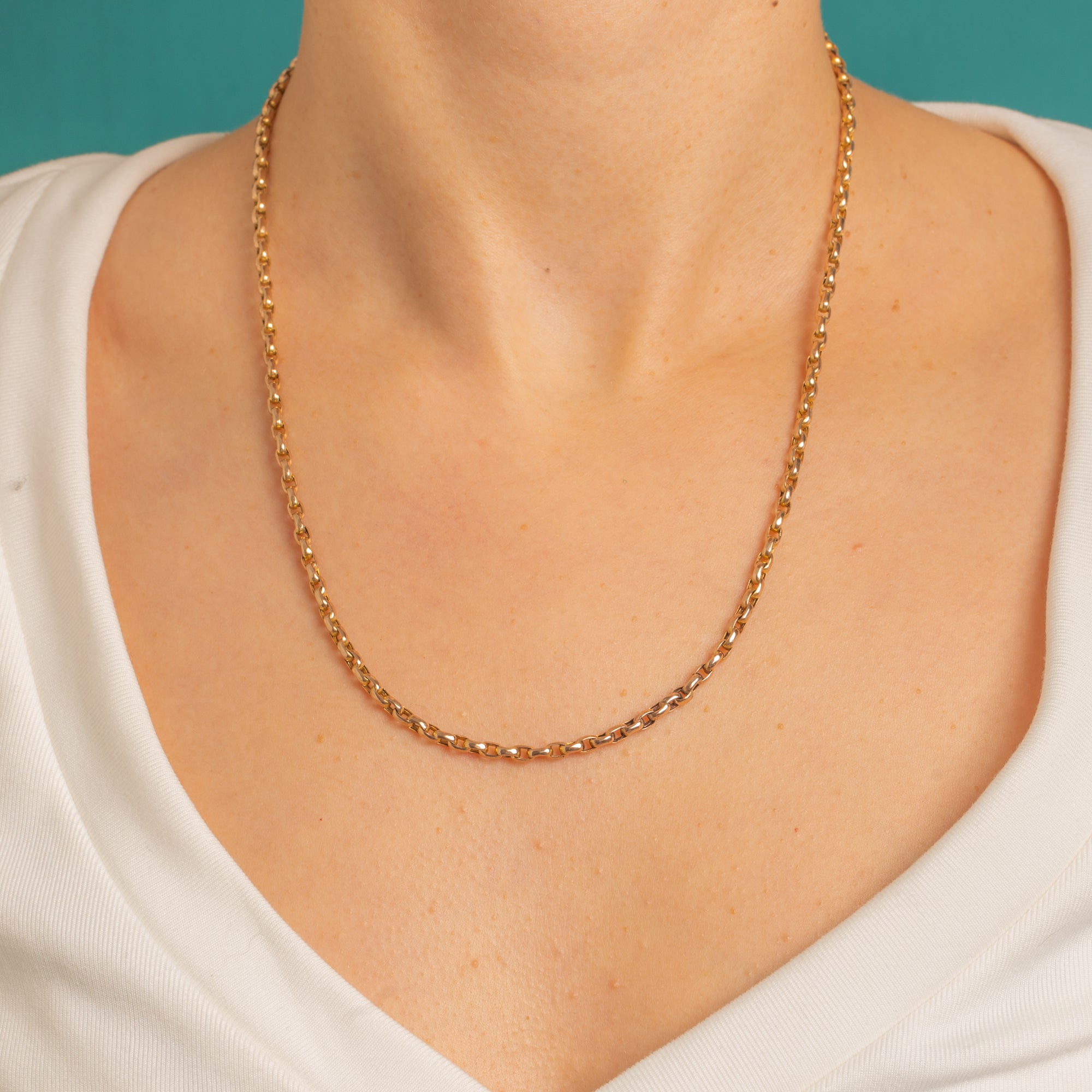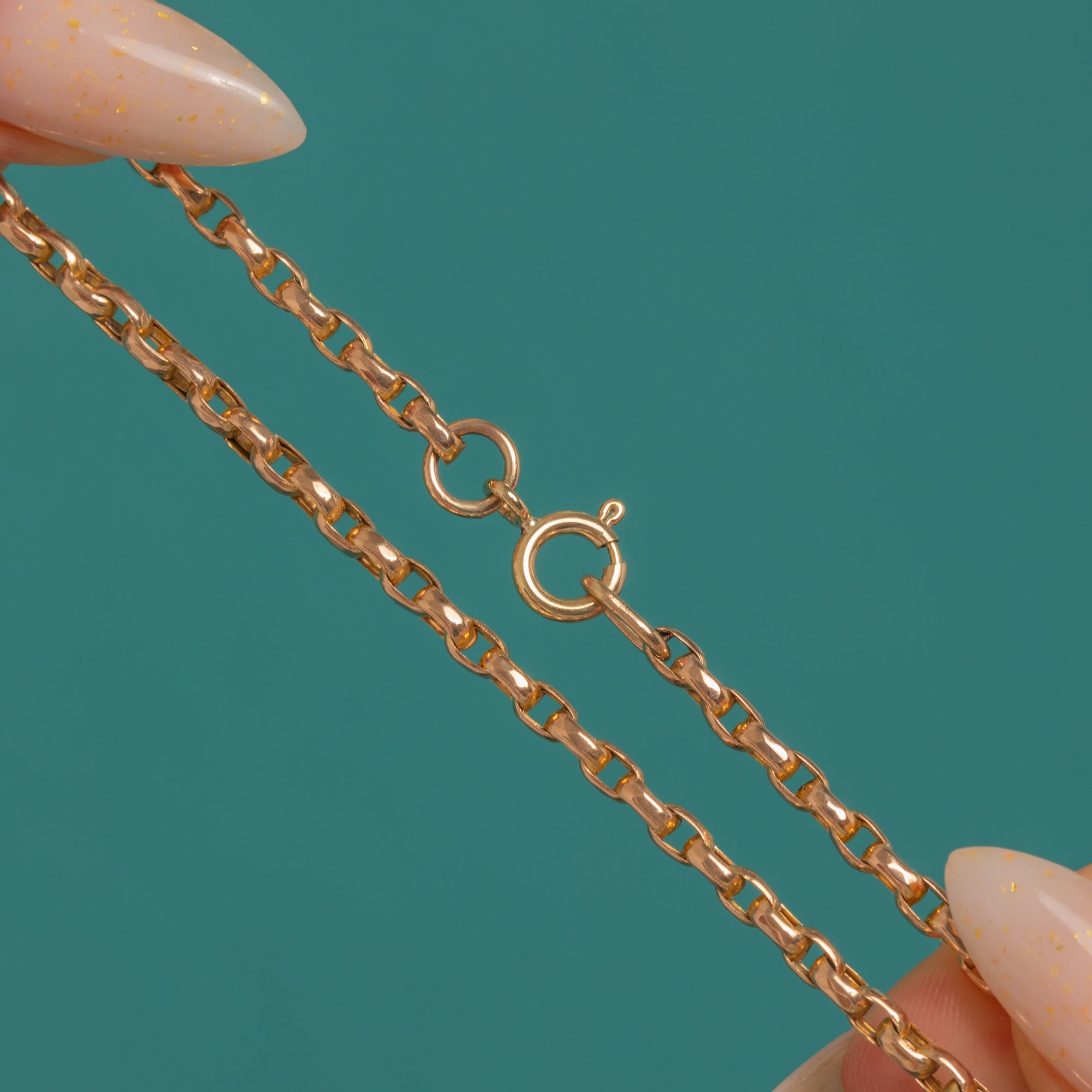 A timeless Victorian 9ct Gold belcher chain, glowing with that soft, honeyed lustre we all adore. The uniform belcher links catch the light beautifully, creating a sleek, polished line that feels refined yet effortless.