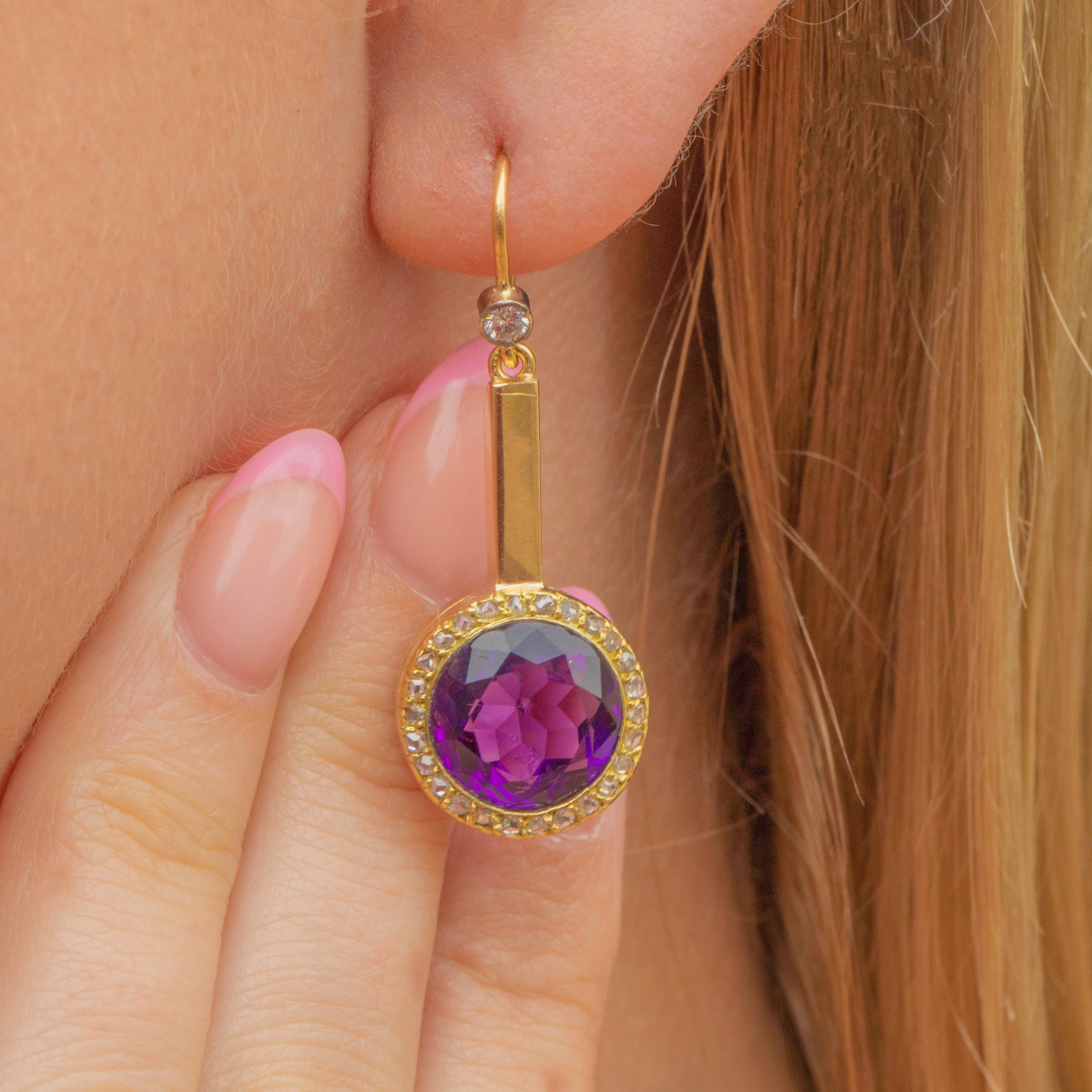 These fine Edwardian 18ct Gold Amethyst Diamond drop earrings simply sublime!