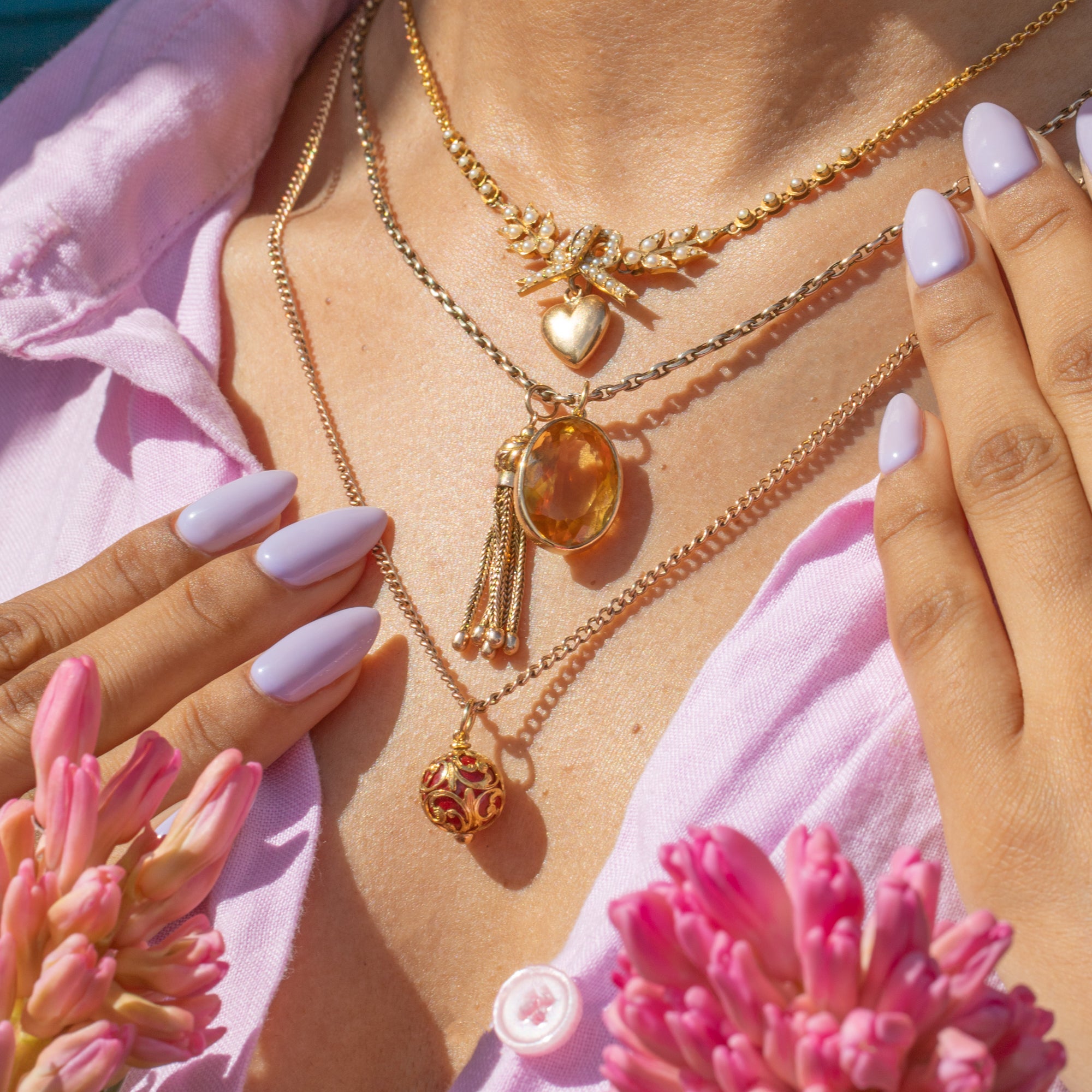 A wonderful size, this Art Deco Citrine pendant is complete with a jump ring that allows her to hang prettily from your favourite Gold chain. Nestled within a honey-hued 18ct Gold bezel, this antique pendant is simply divine, you will fall in love!