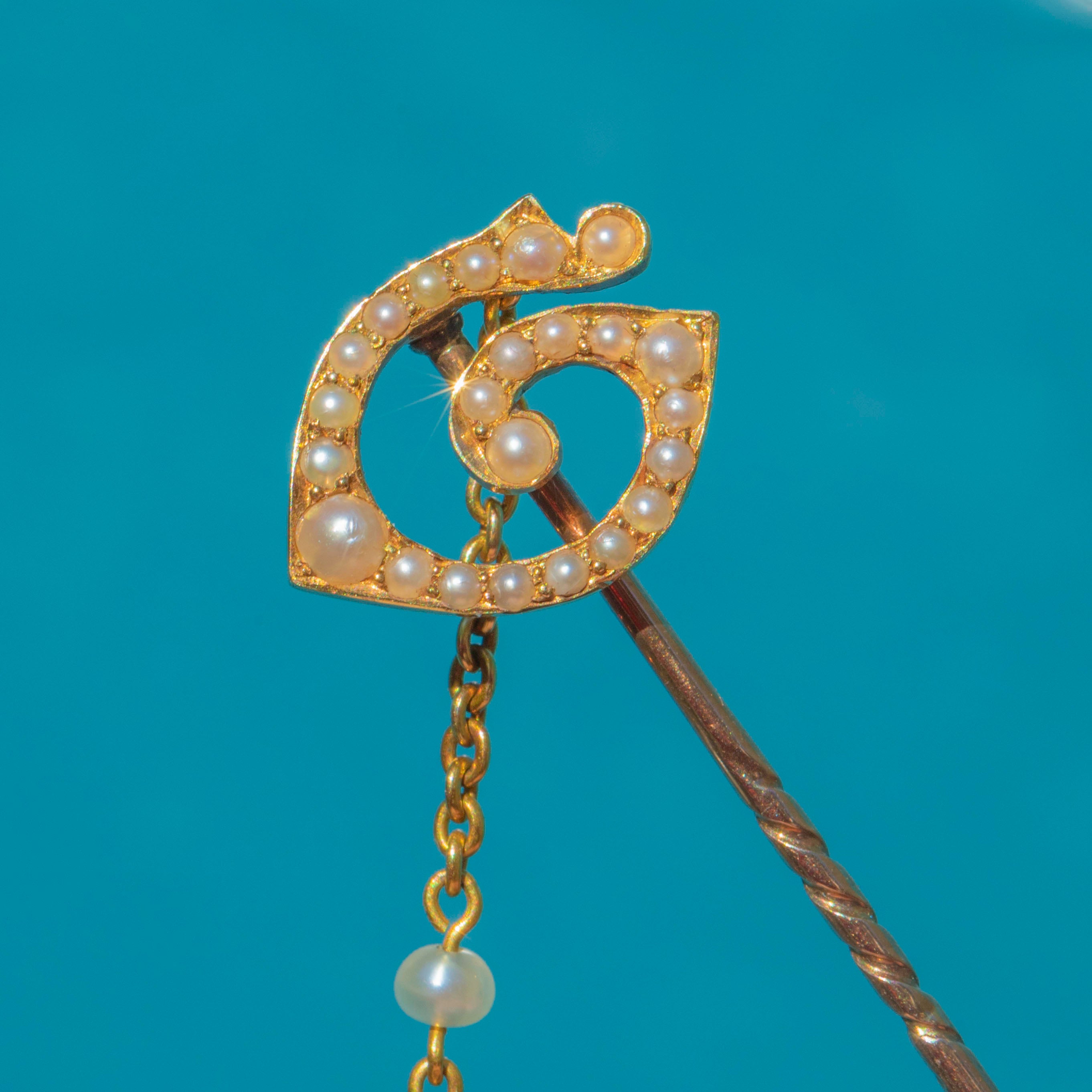 Antique 18ct Gold Egyptian Revival Turquoise Pearl Stick Pins Set in Original Antique Box