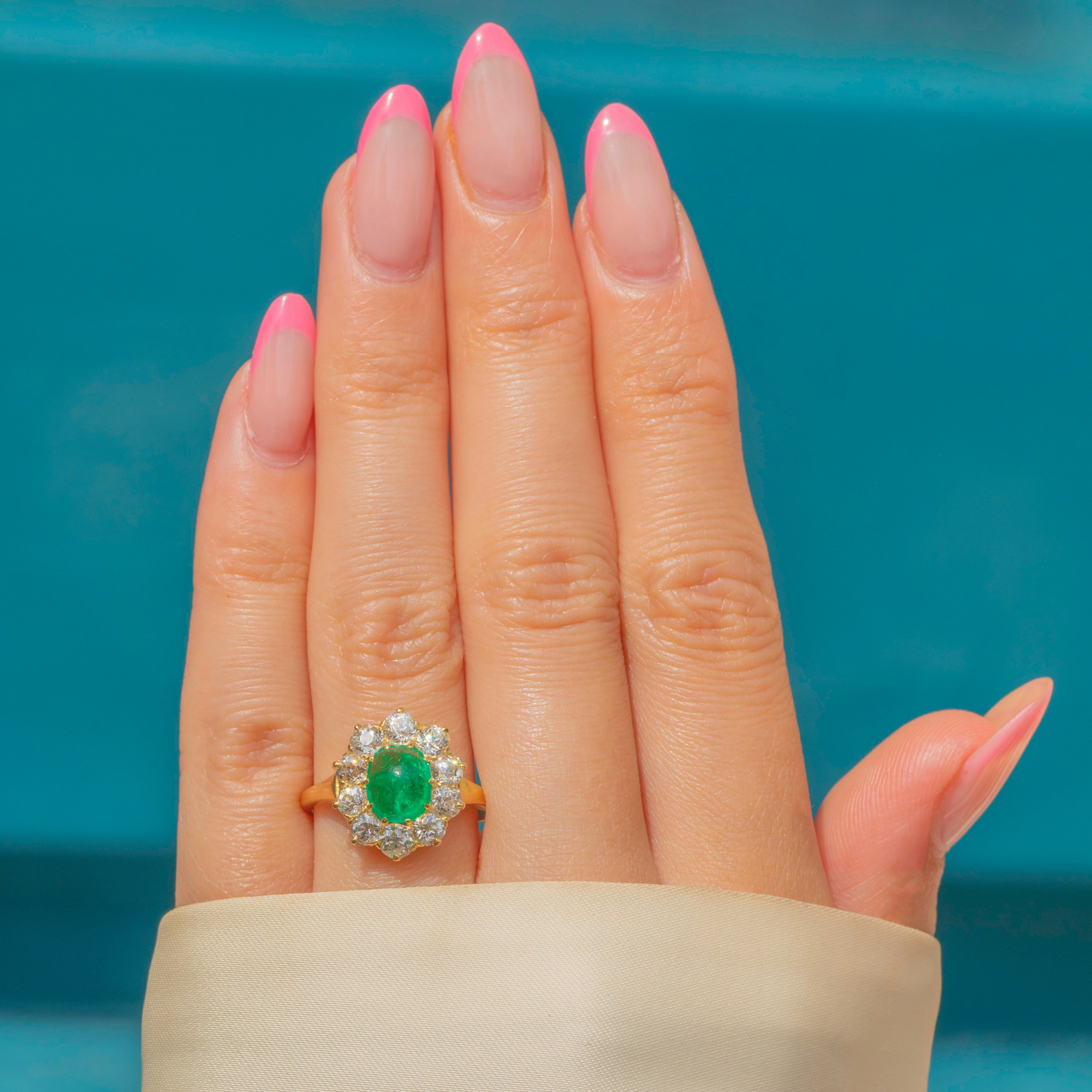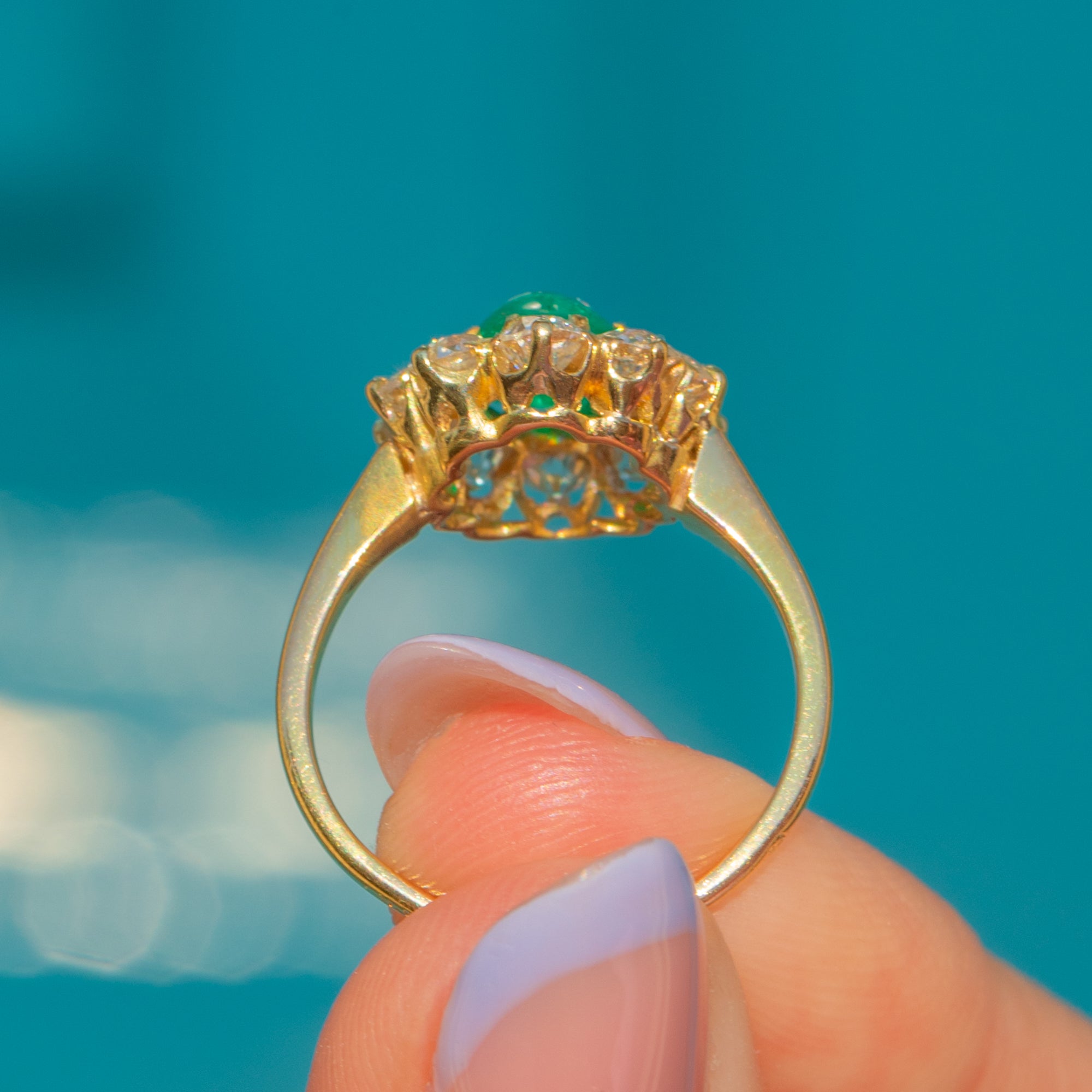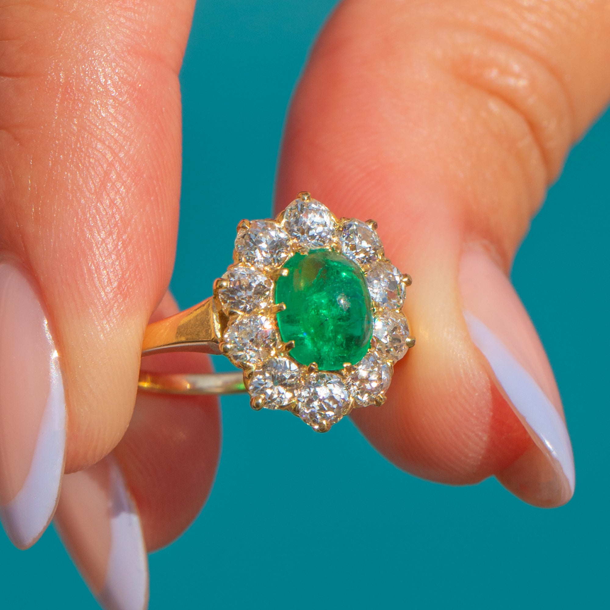 Antique 18ct Gold Emerald Cabochon Diamond Cluster Ring 0.90ct Emerald Item added