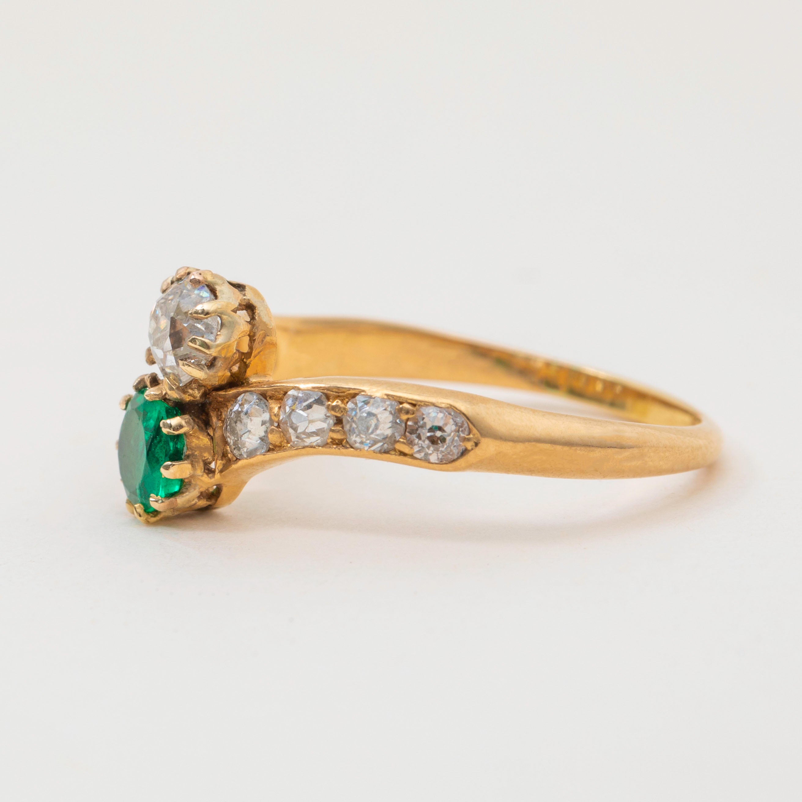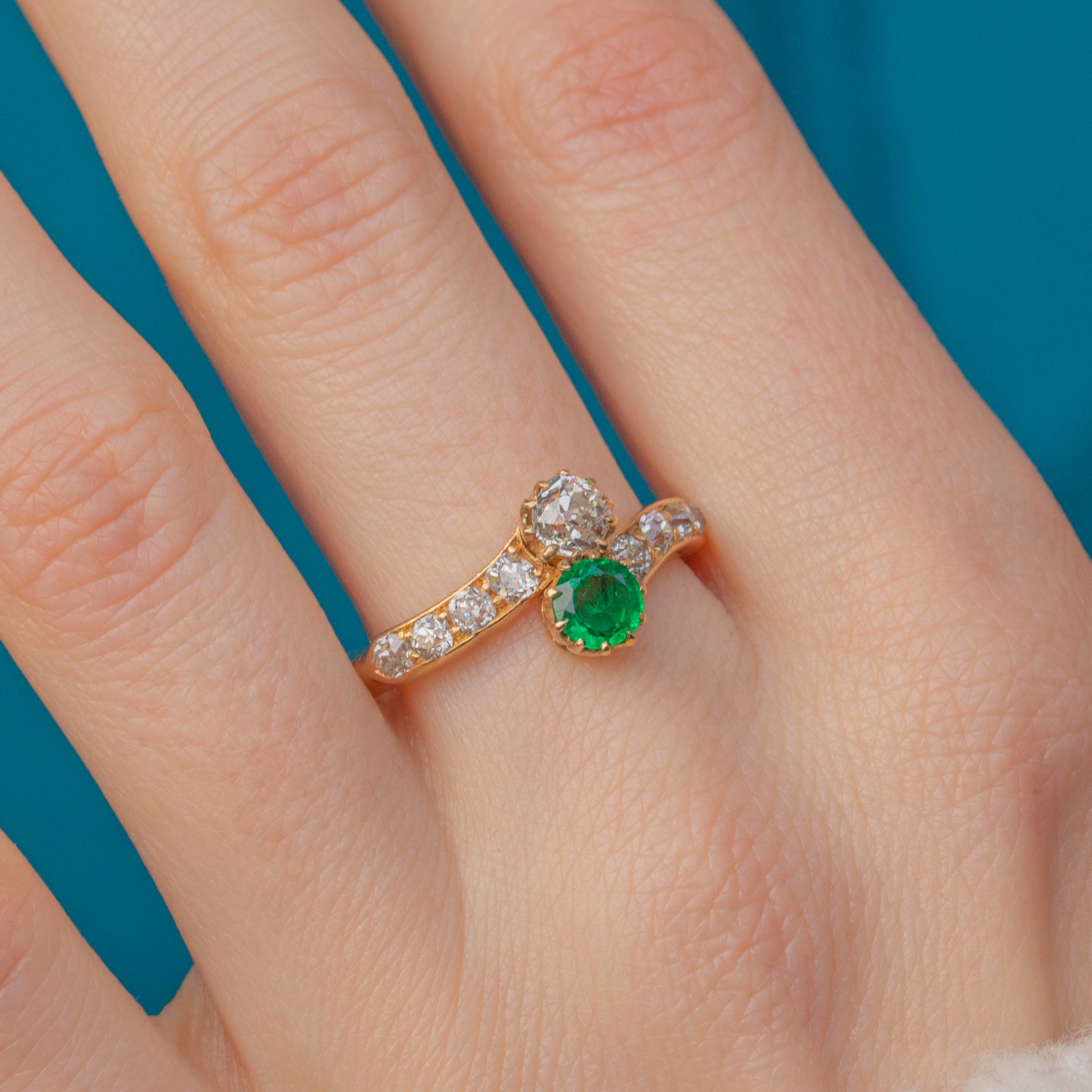 Antique 18ct Gold Emerald Diamond Toi et Moi Ring, 0.70ct Diamonds Item added