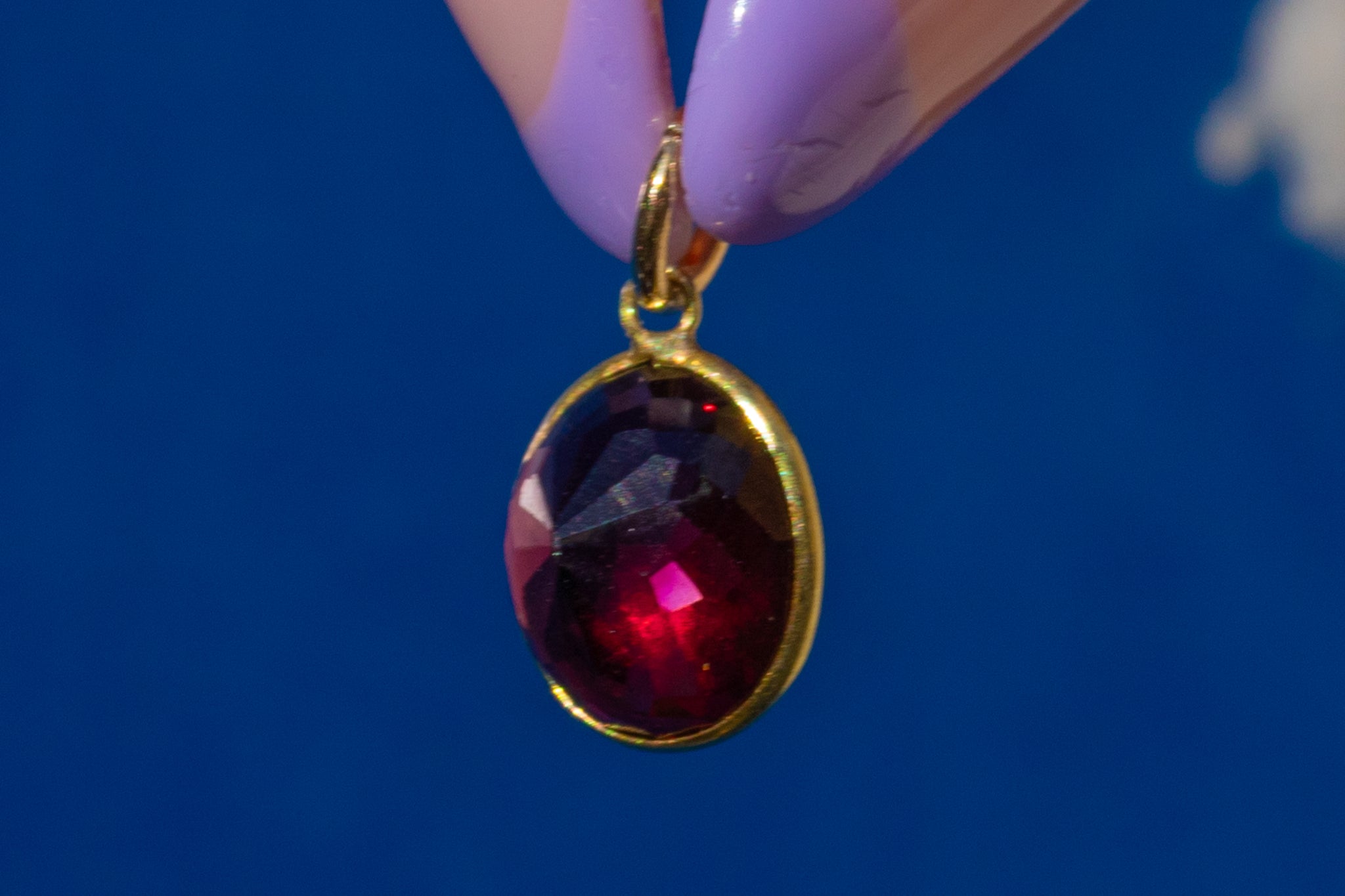 Add an instant pop of colour to your attire with this antique 18ct Gold Garnet charm, flaunting a pool of plum hues dancing between her hand-cut facets!