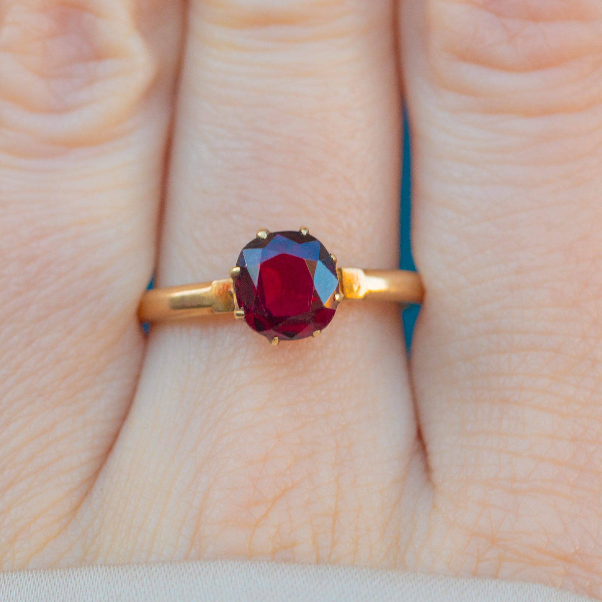 Antique 18ct Gold Garnet Solitaire Ring, 1.62ct