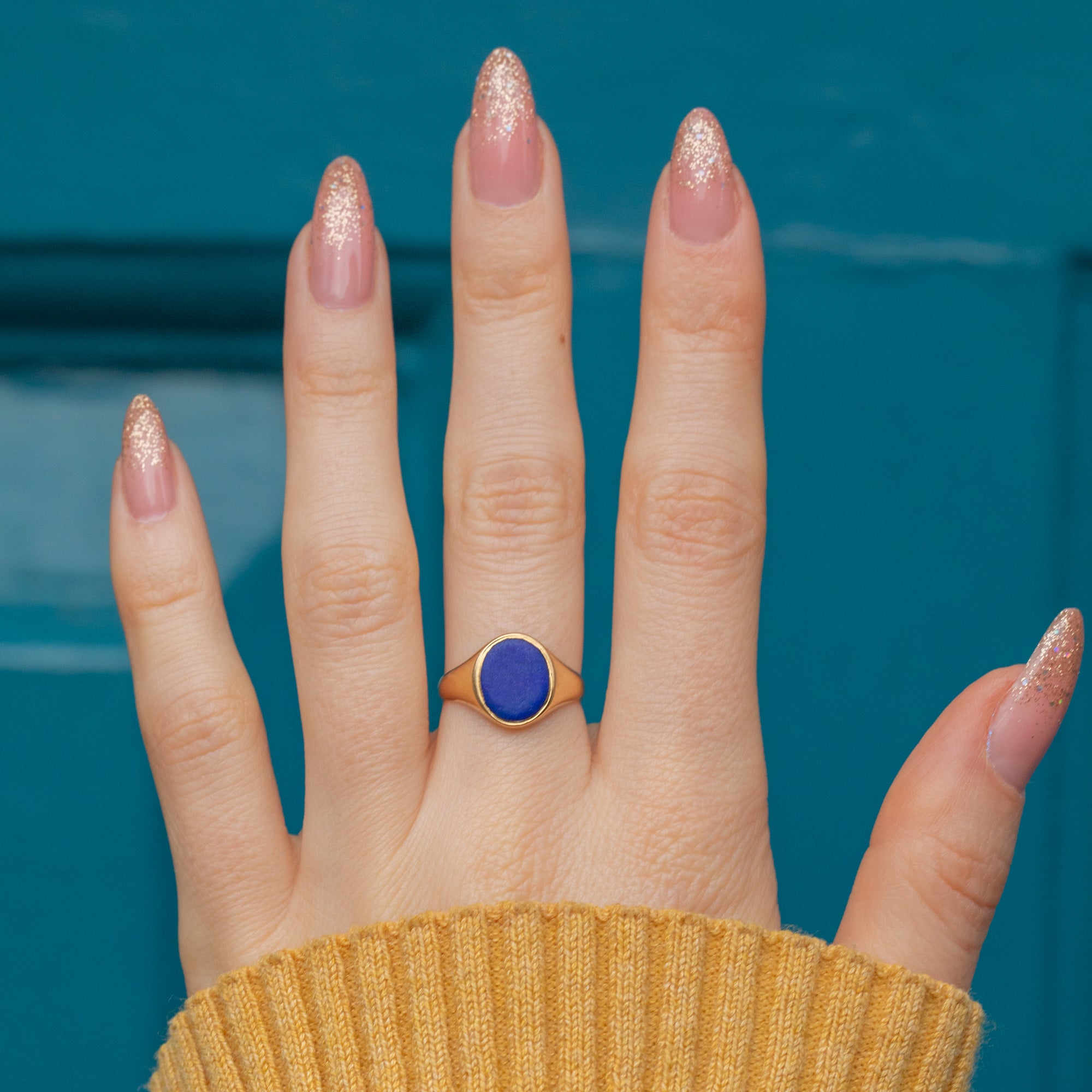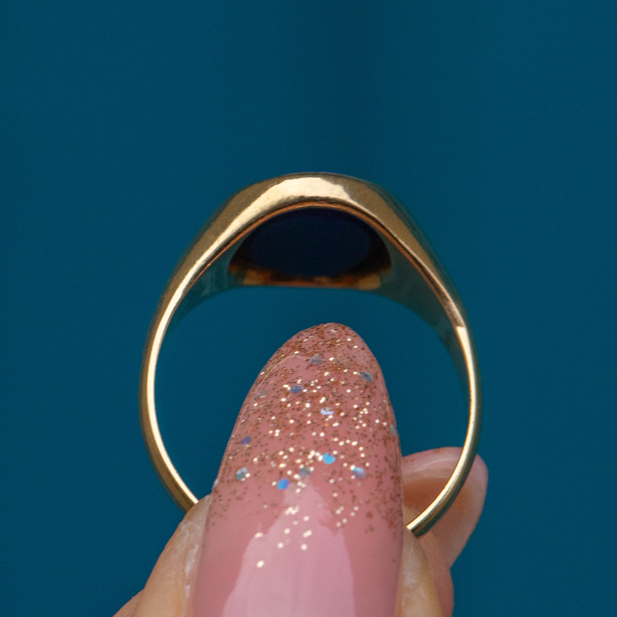 With deep cerulean hues as if you are looking into a winter night sky, this Art Deco signet ring features a bold Lapis Lazuli in her centre, complimented effortlessly by the warmth of her saturated 18ct Gold.